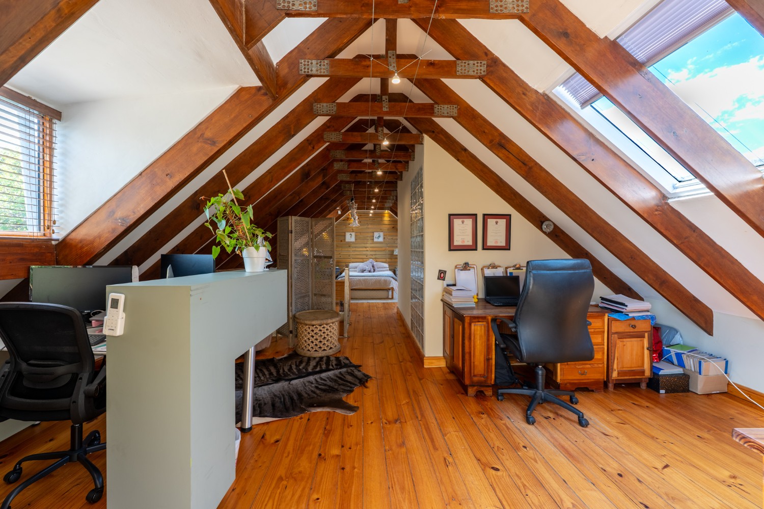 Upstairs, you’ll find two additional bedrooms, a shared bathroom, and a balcony with spectacular views.