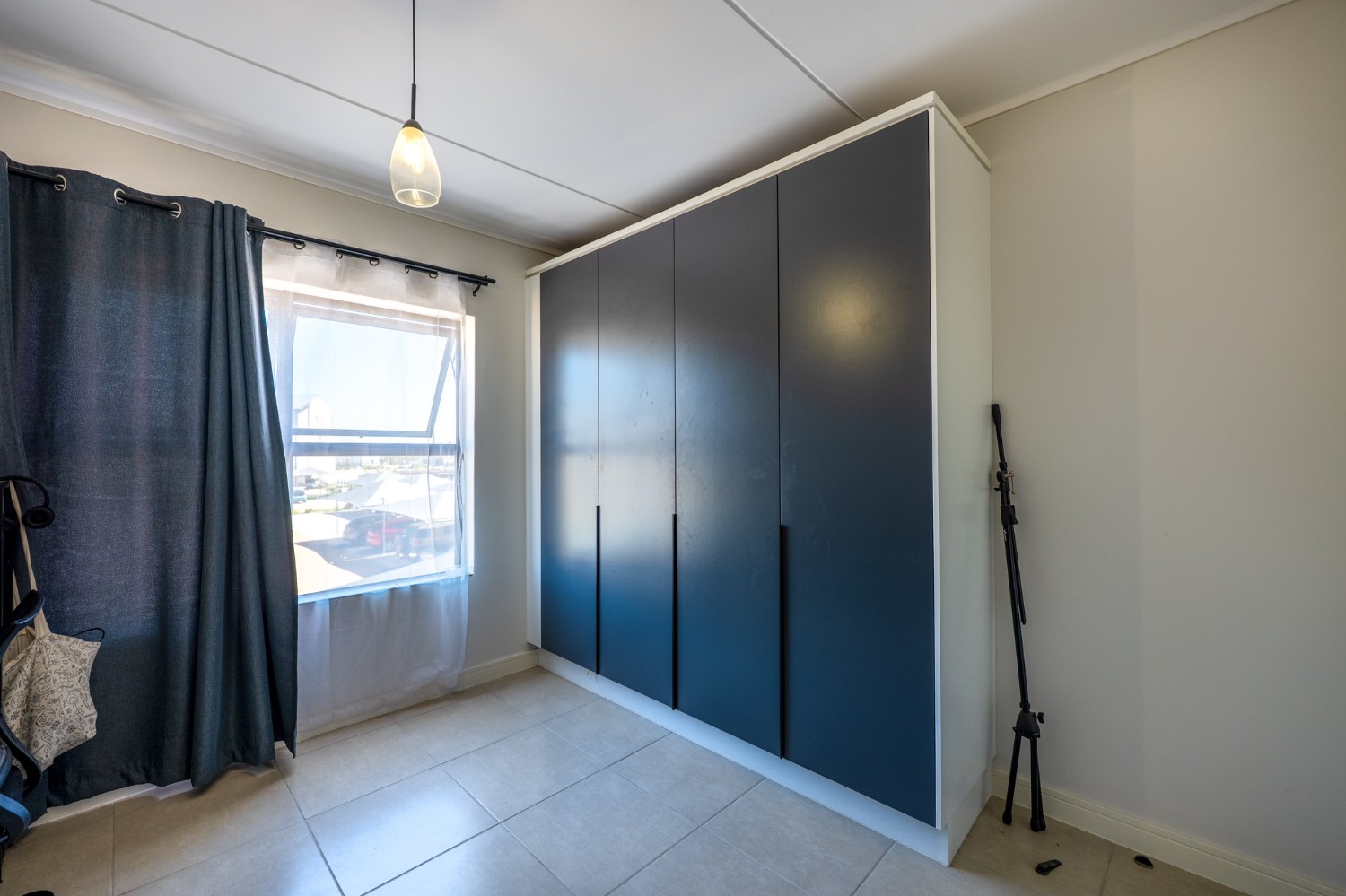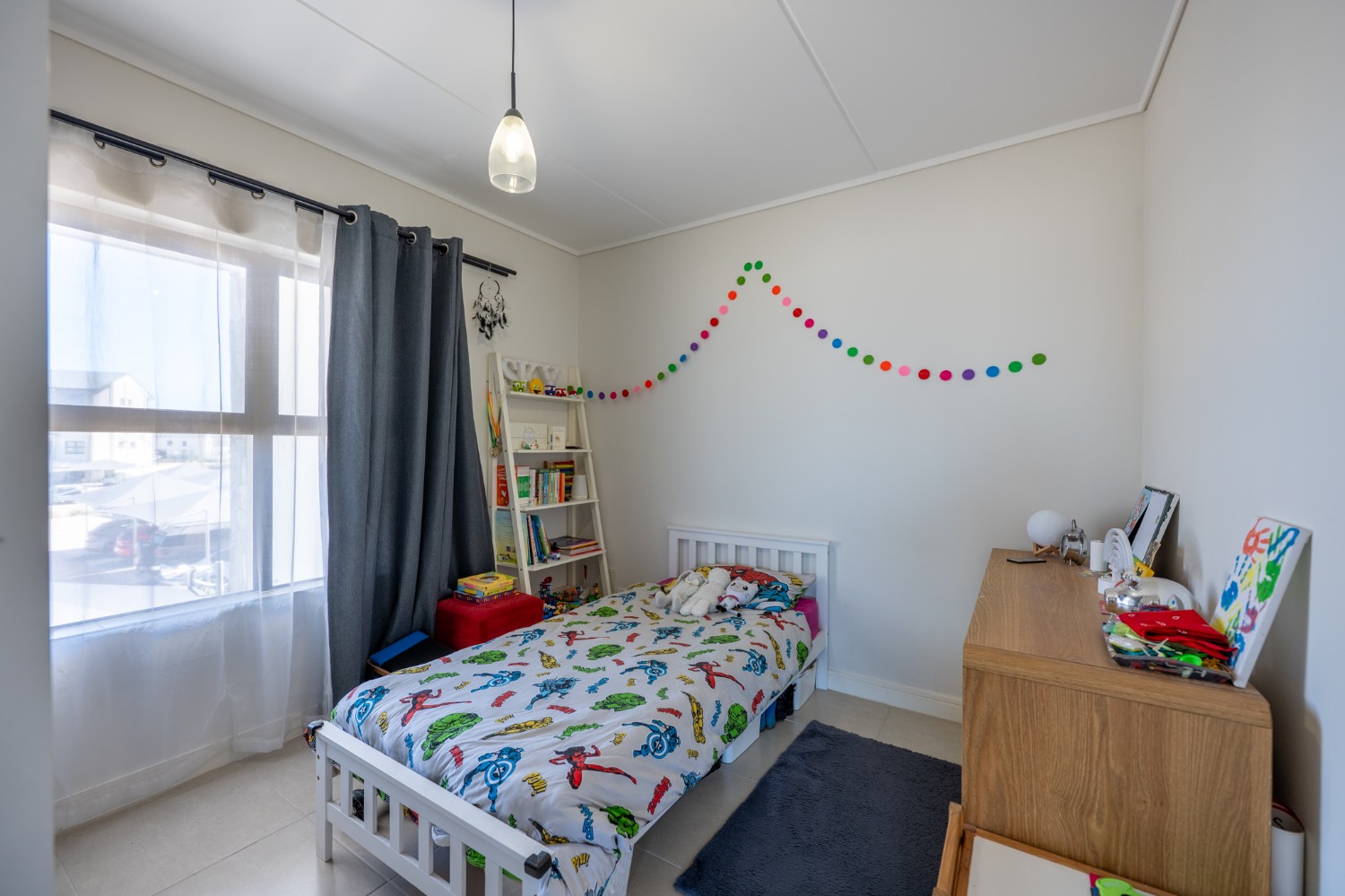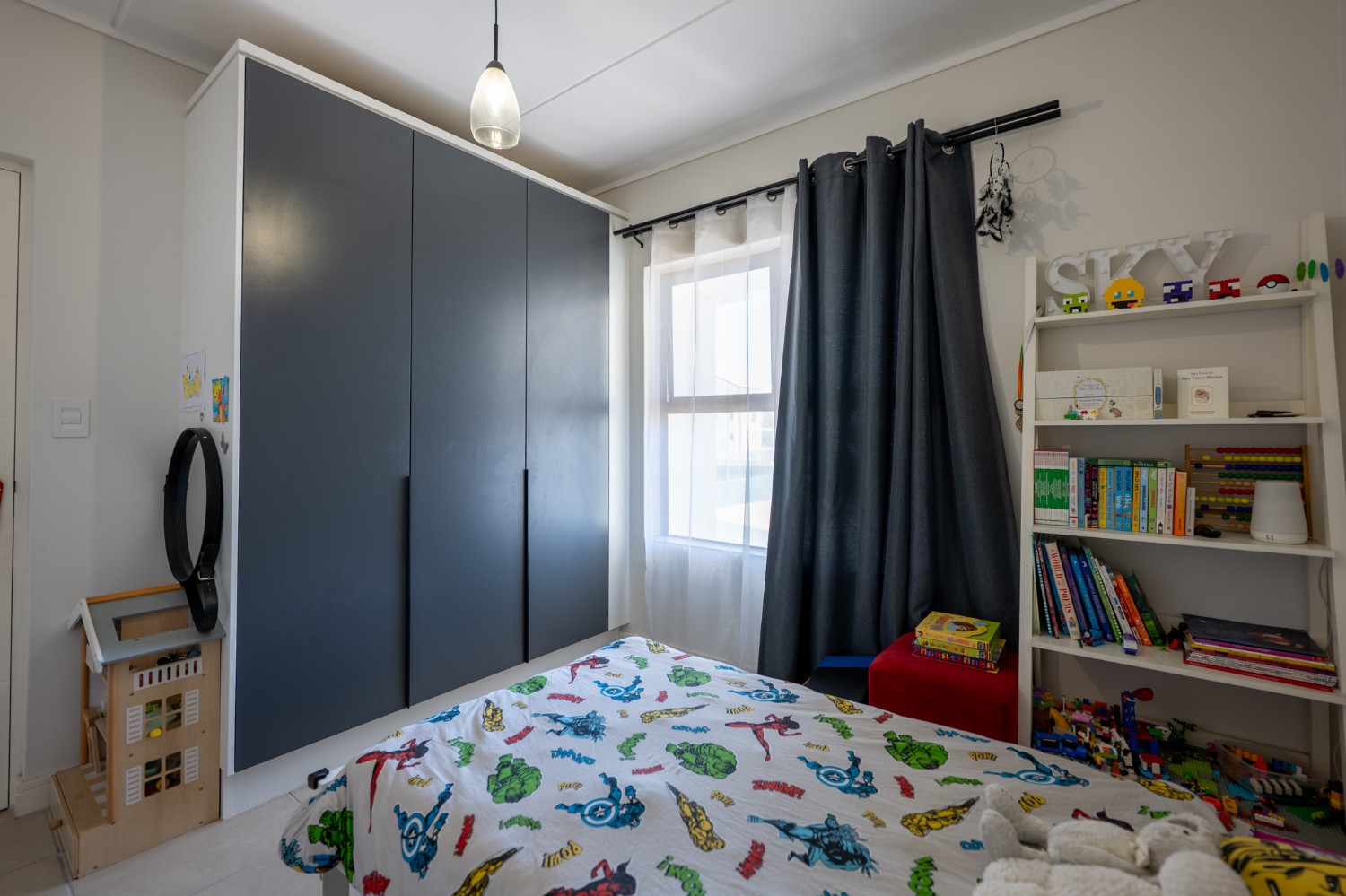 All three bedrooms are tiled, featuring curtain rails, ample cupboard space, and immaculate finishes. The main bedroom boasts an en-suite with a luxurious double-volume shower, while the family bathroom offers both a large modern shower and a bath.