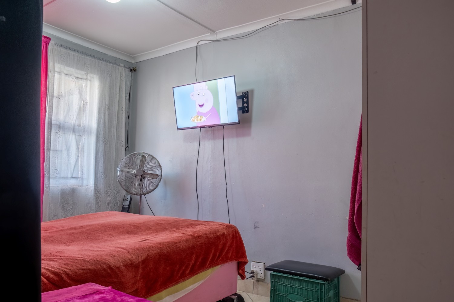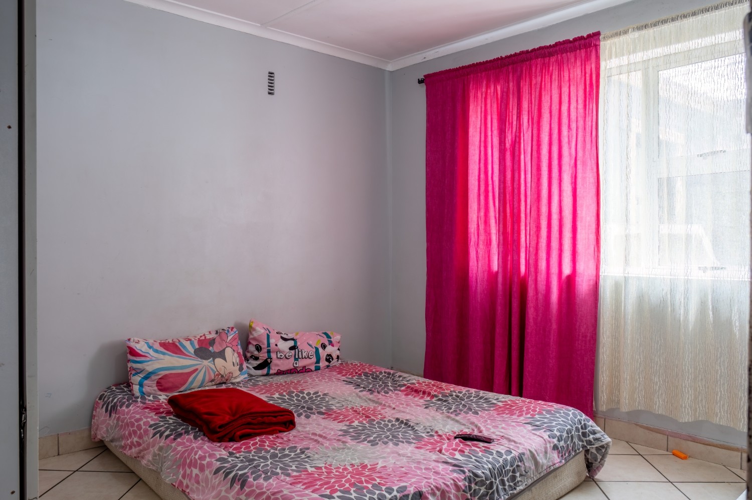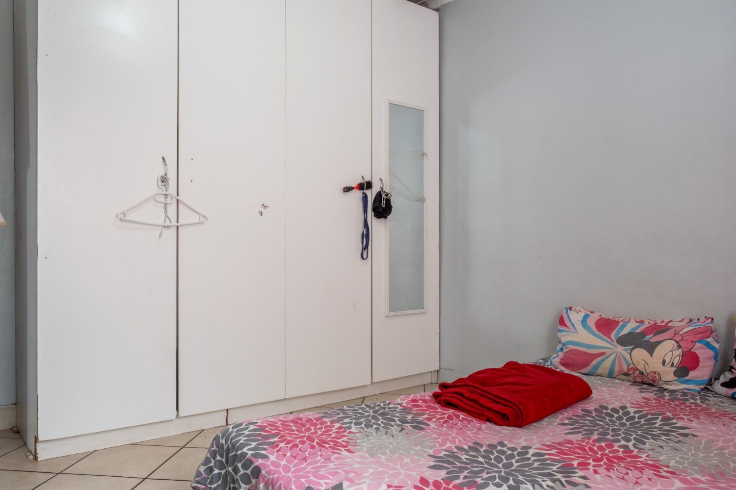 The home features three bedrooms, all fitted with built-in cupboards, and they share a family bathroom.