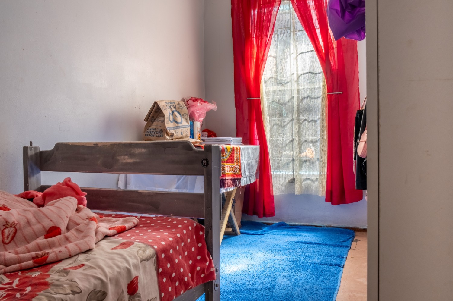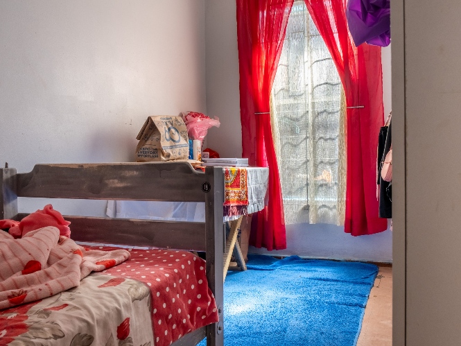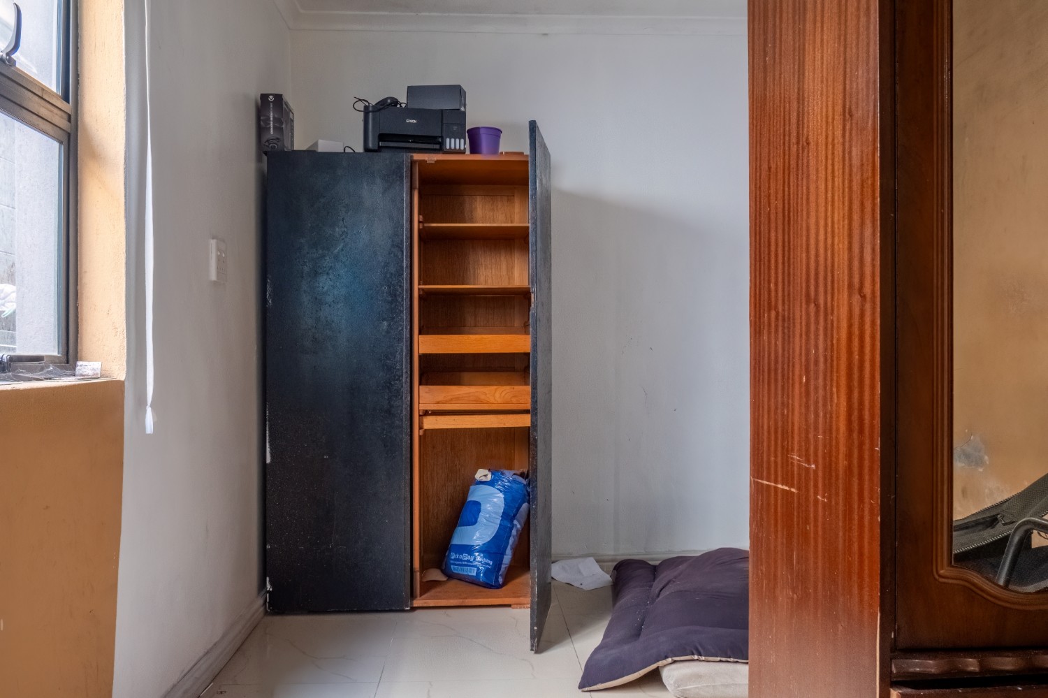 The home features three bedrooms, all fitted with built-in cupboards, and they share a family bathroom.