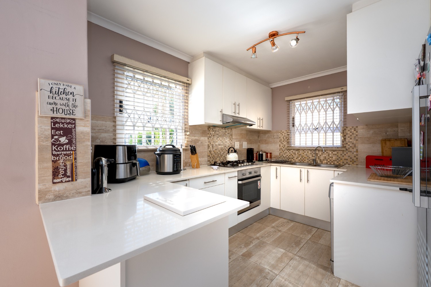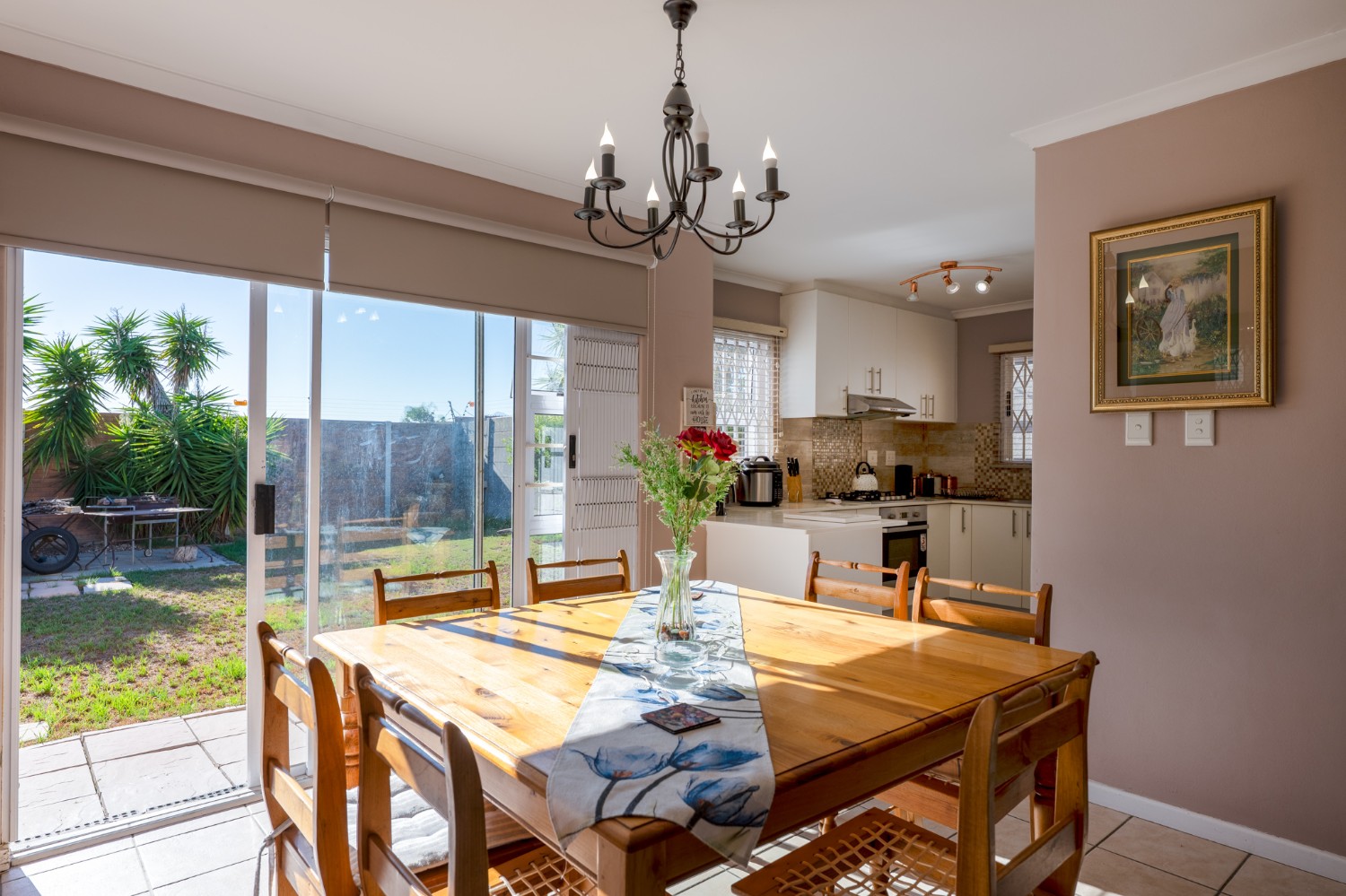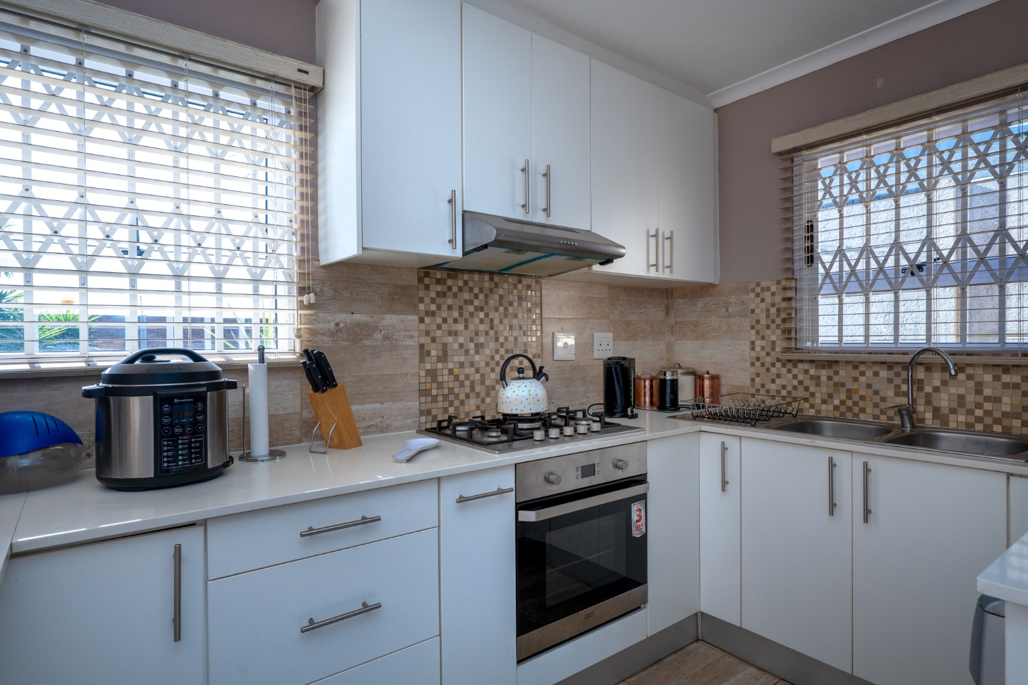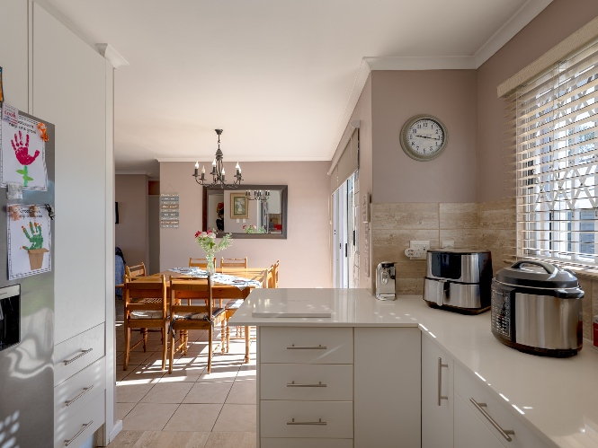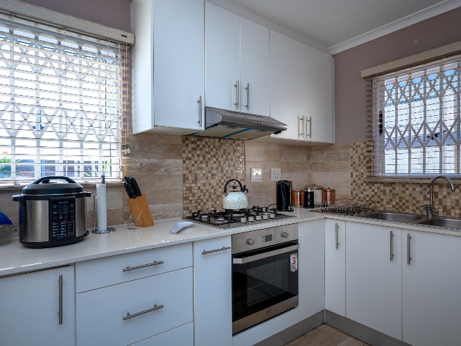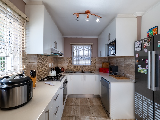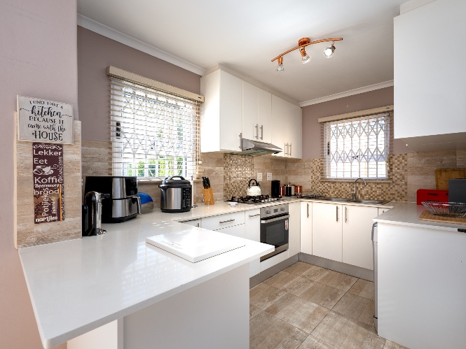 Outside, the property continues to impress with a lush, green garden ideal for children, pets, and simply unwinding. A versatile garden shed adds extra value, offering the perfect option for storing additional items. The home is completed by an automated garage fitted with one plumbing point and direct access to the property, ensuring both security and convenience. In addition, the property is equipped with a 5kW inverter system, ensuring uninterrupted power to most of the home (excluding the oven and geyser). Added features to the property include retractable security gates on all windows and the sliding door for enhanced peace of mind. New blinds have been installed throughout, and all bedrooms are fitted with laminated flooring.