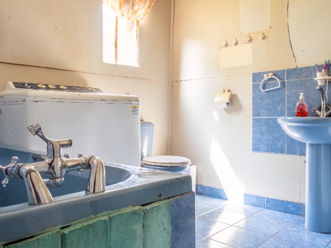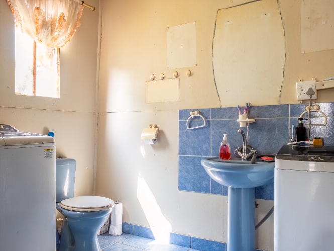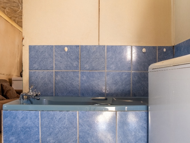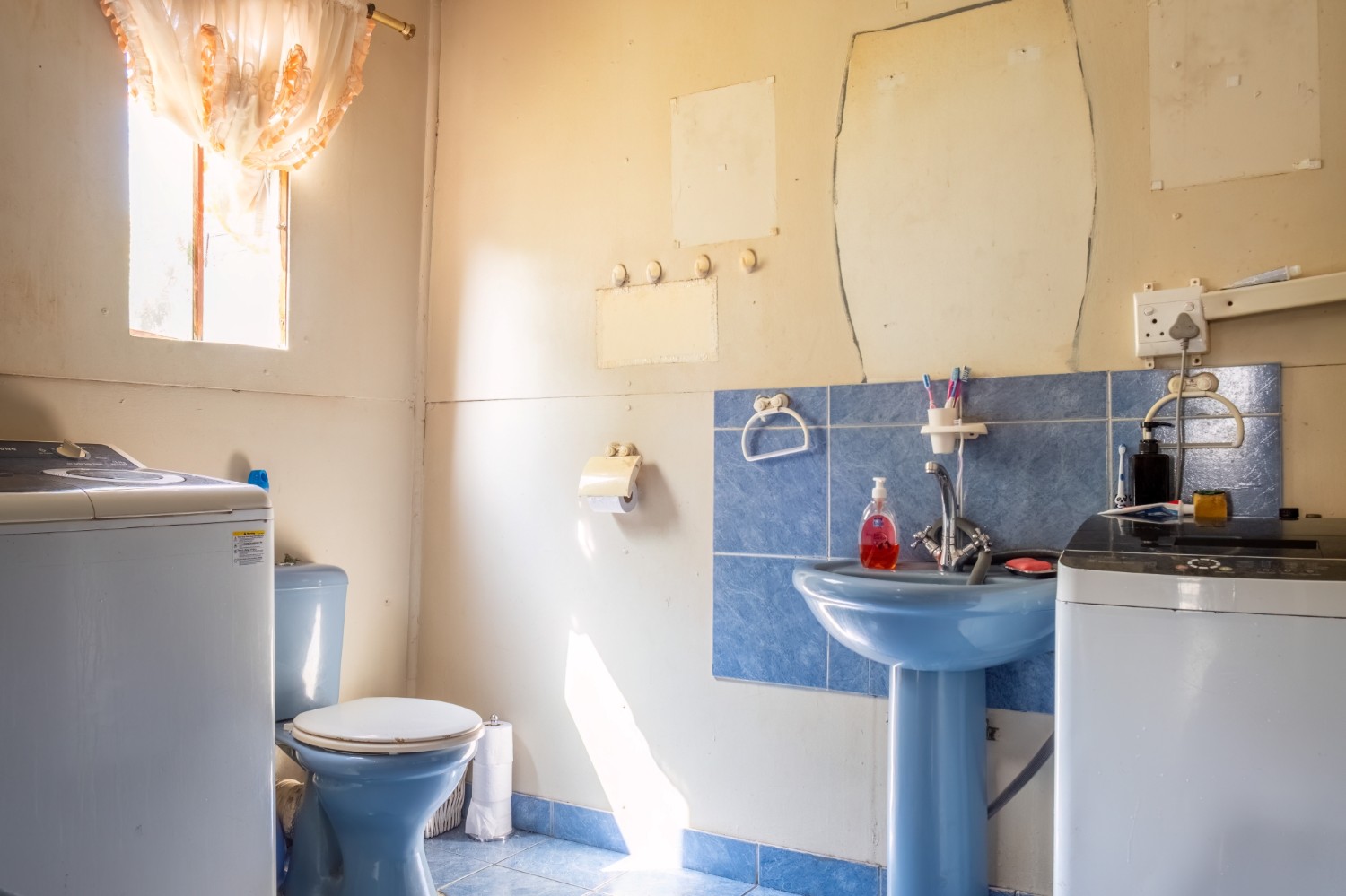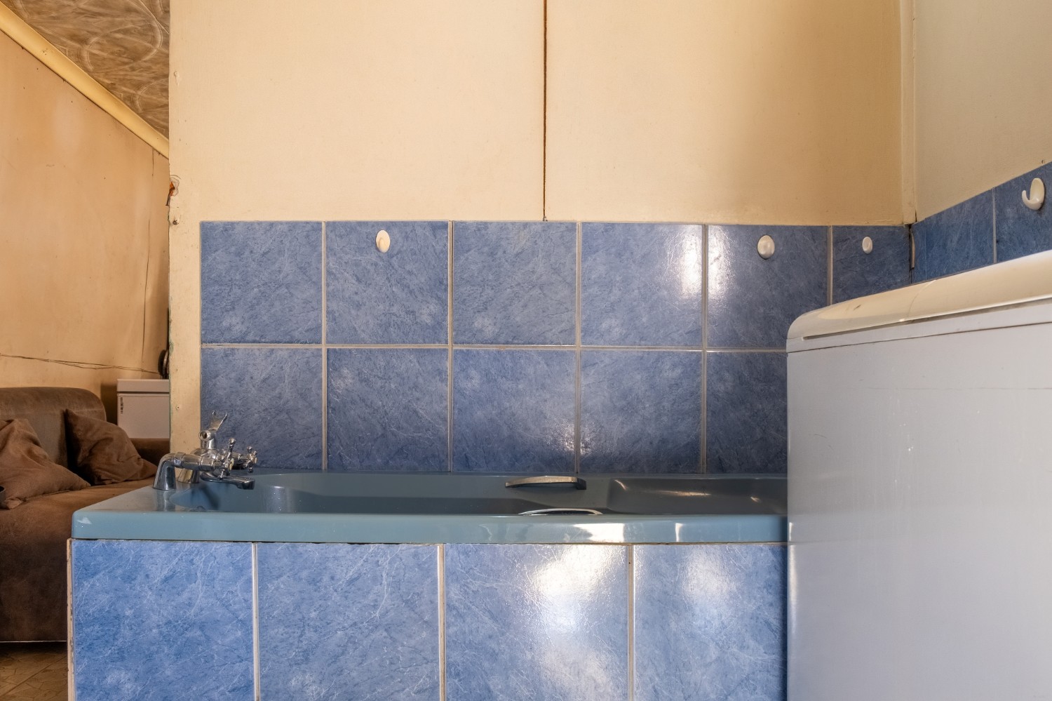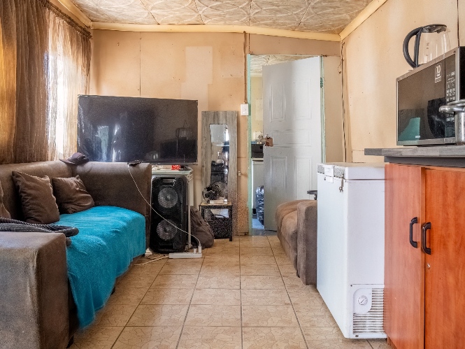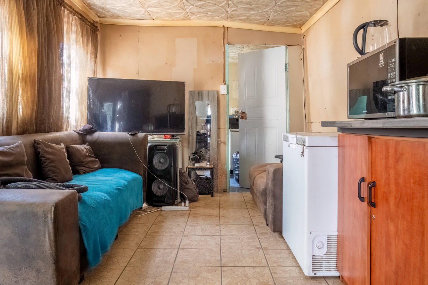 This fully enclosed property presents an excellent opportunity for comfortable living with added versatility. The main house features a practical kitchenette and a cosy lounge, both finished with easy-to-maintain tiled flooring. It offers two generously sized bedrooms and a bathroom fitted with a bathtub, basin, and toilet.