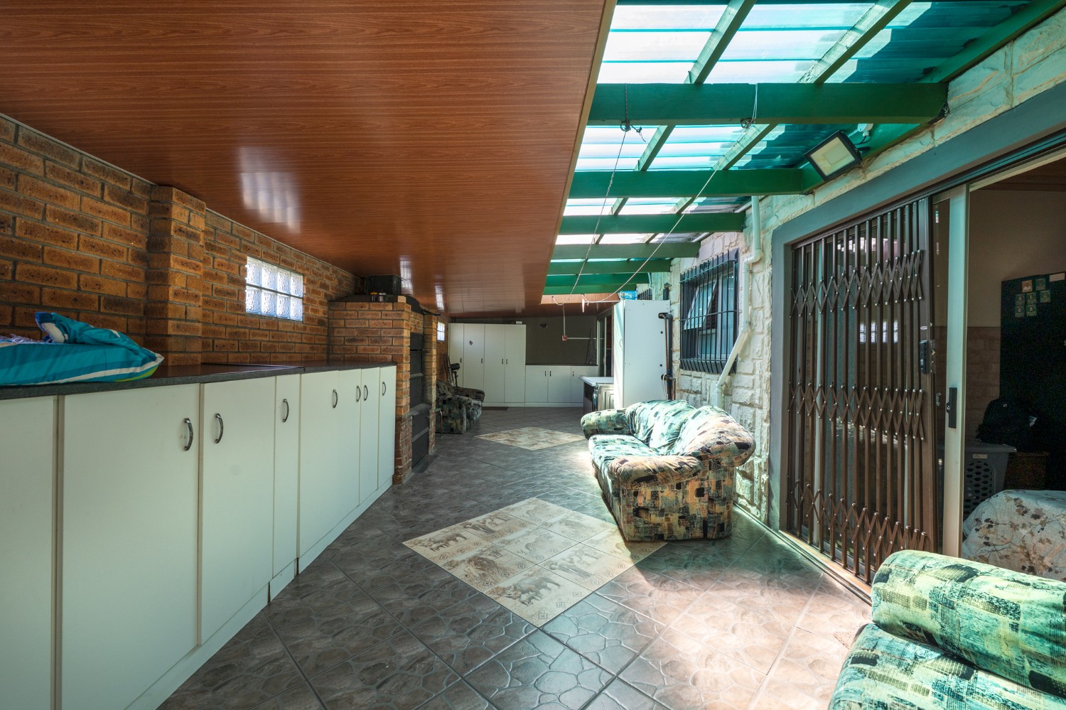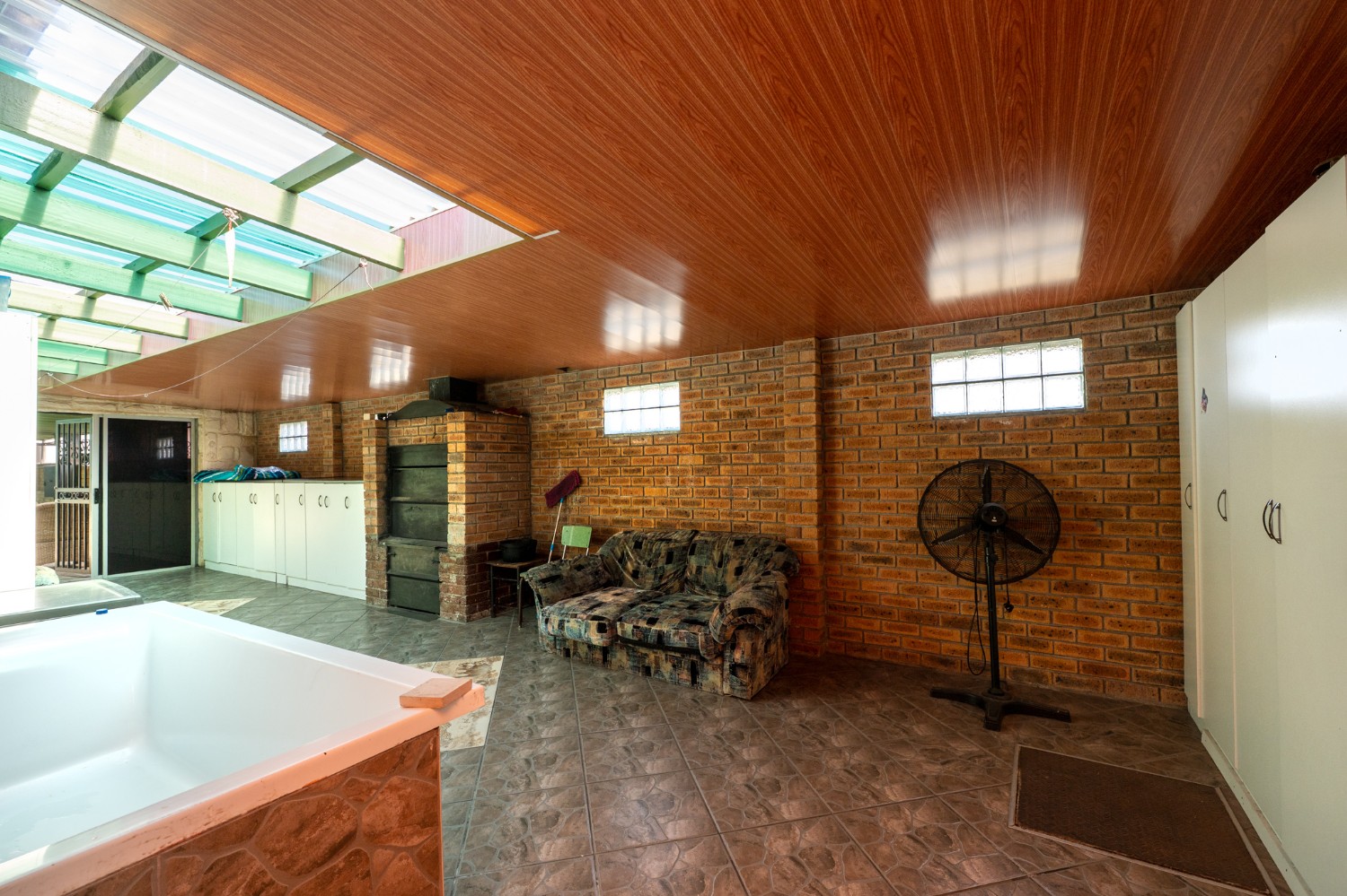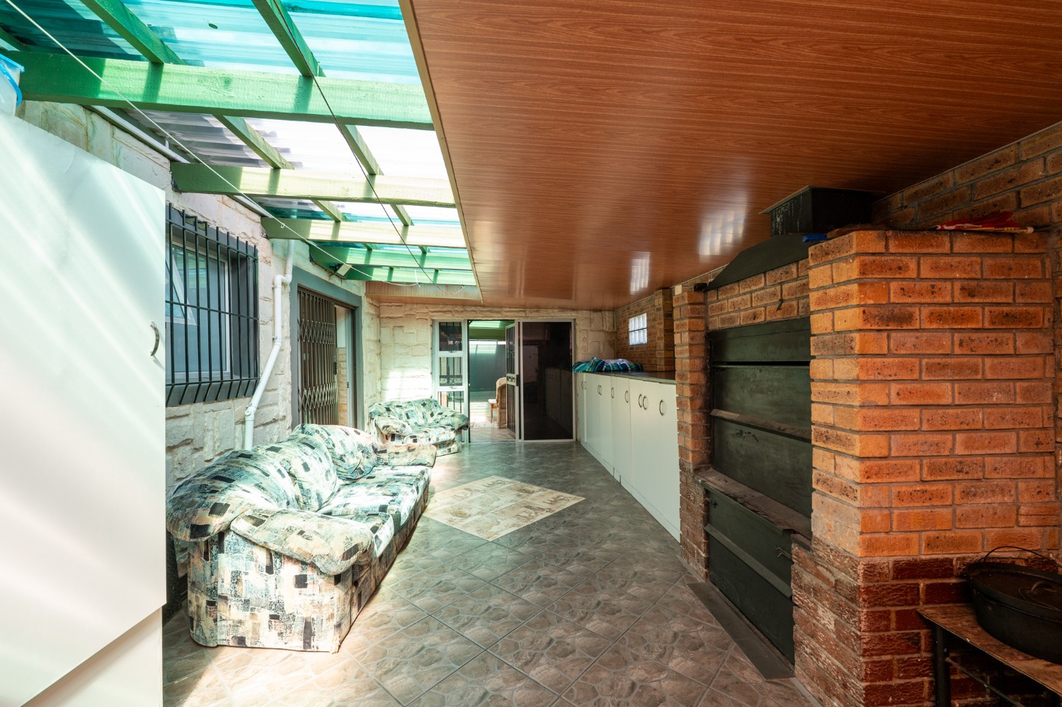 One of the standout features of this property is the large undercover entertainment area, complete with a built-in braai and plenty of space to host friends and family. The property is fully enclosed, providing peace of mind and privacy, and includes 2 garages for secure parking as well as additional storage space.