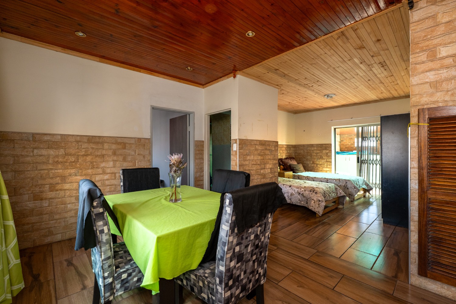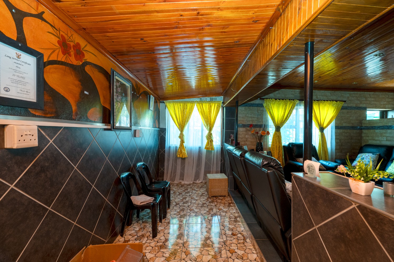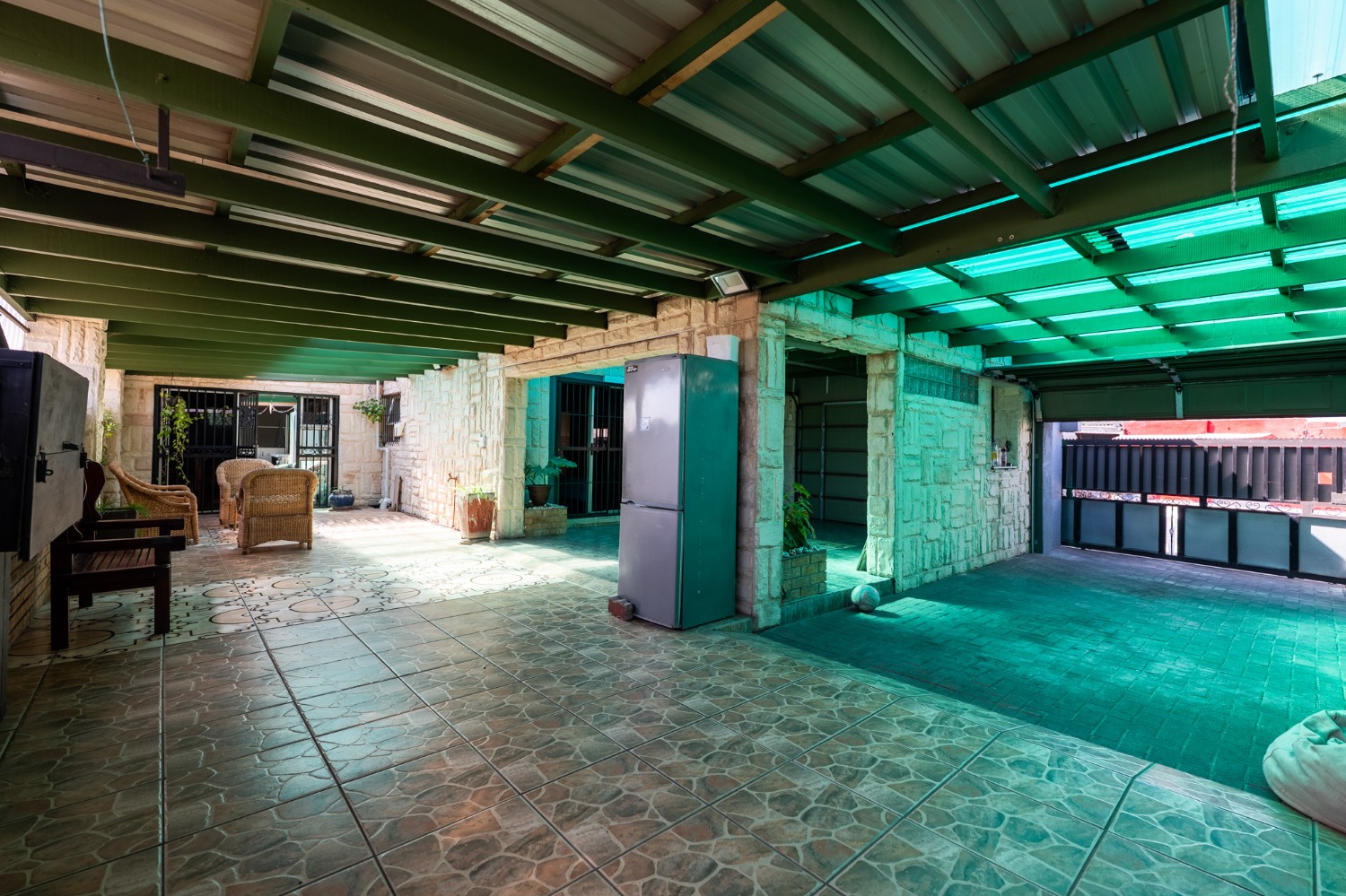 One of the standout features of this property is the large undercover entertainment area, complete with a built-in braai and plenty of space to host friends and family. The property is fully enclosed, providing peace of mind and privacy, and includes 2 garages for secure parking as well as additional storage space.