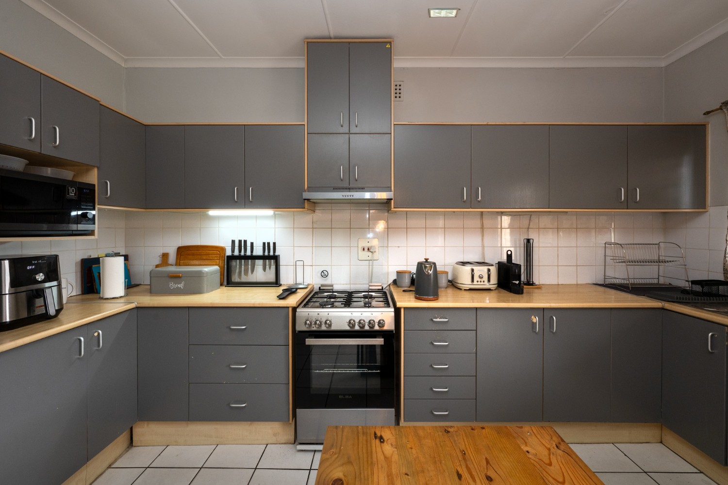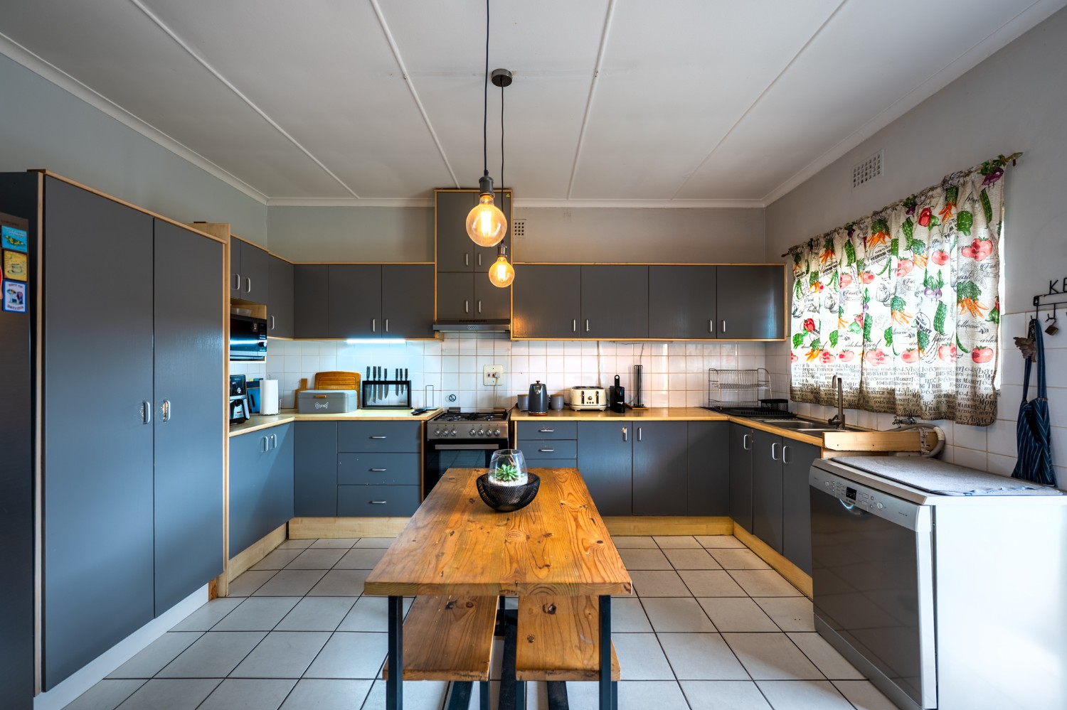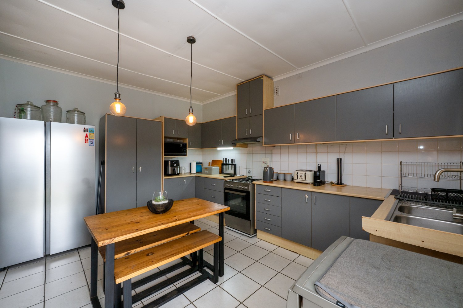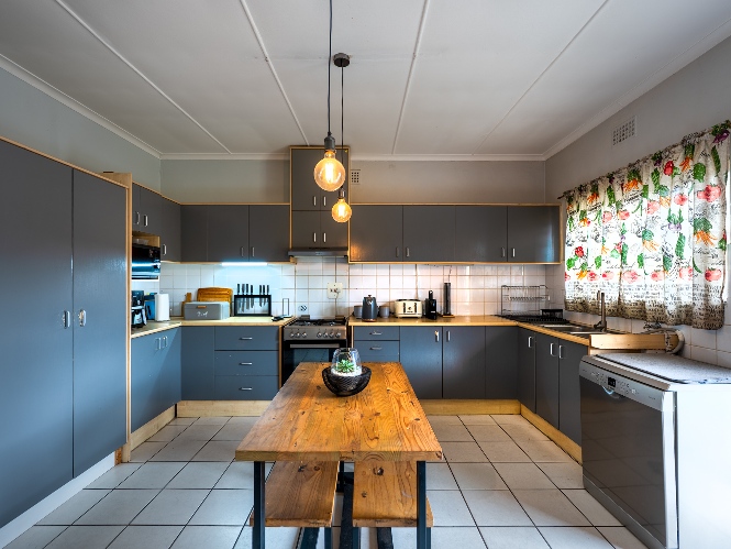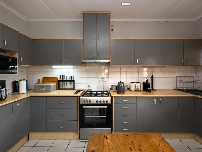 Step inside through the entrance hall to the well-sized open-plan lounge and kitchen, creating a seamless flow, ideal for modern living. The kitchen is thoughtfully designed with ample cabinetry, a gas stove and under-counter oven, a plumbing point, and space for a double-door fridge, perfect for those who love to cook and entertain.