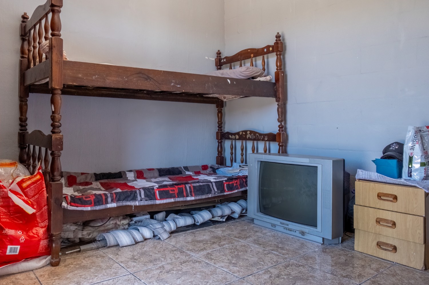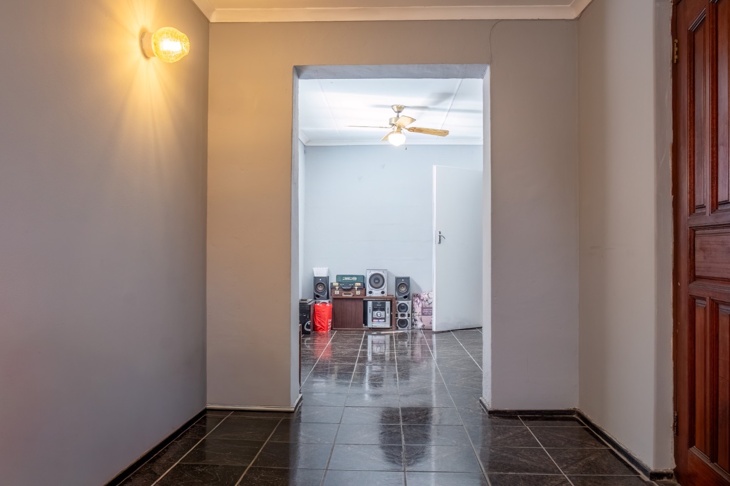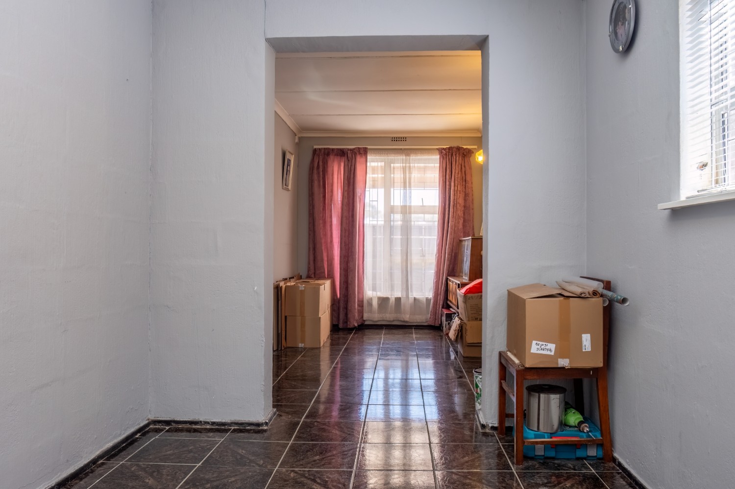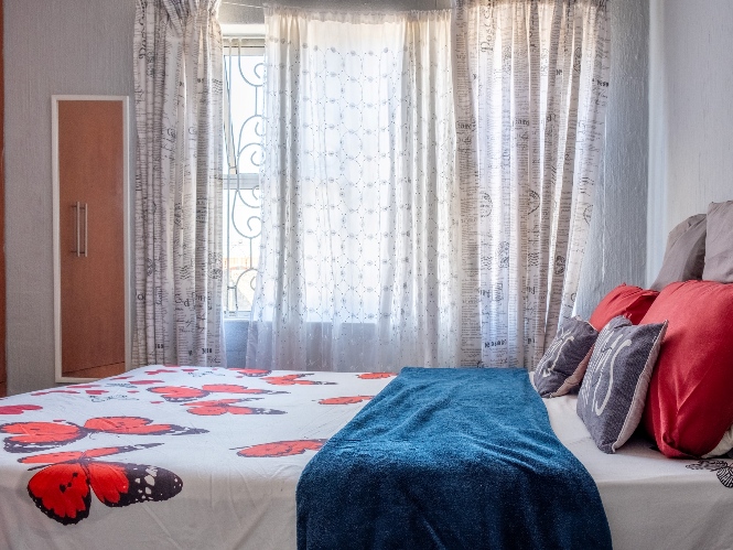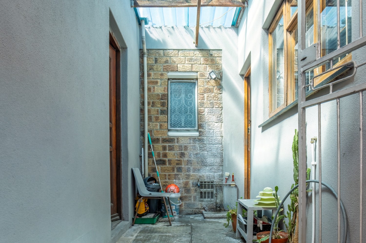 The home features three spacious bedrooms, with the main bedroom fitted with built-in cupboards. A family bathroom services the home.