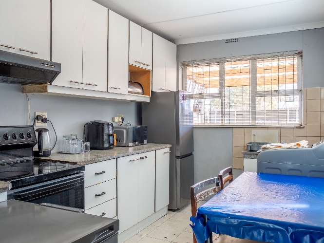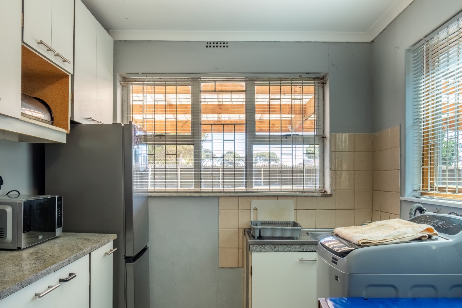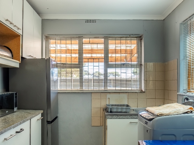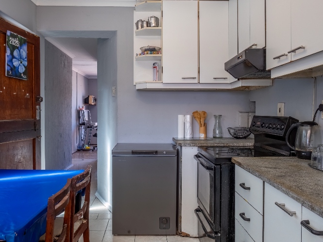 The separate kitchen offers built-in cupboards, providing practical storage and functionality.