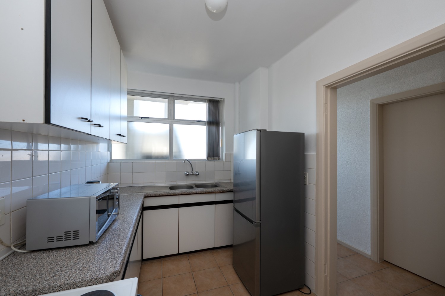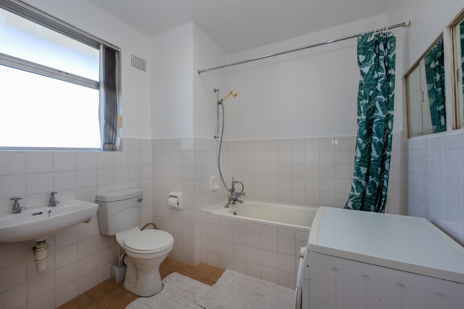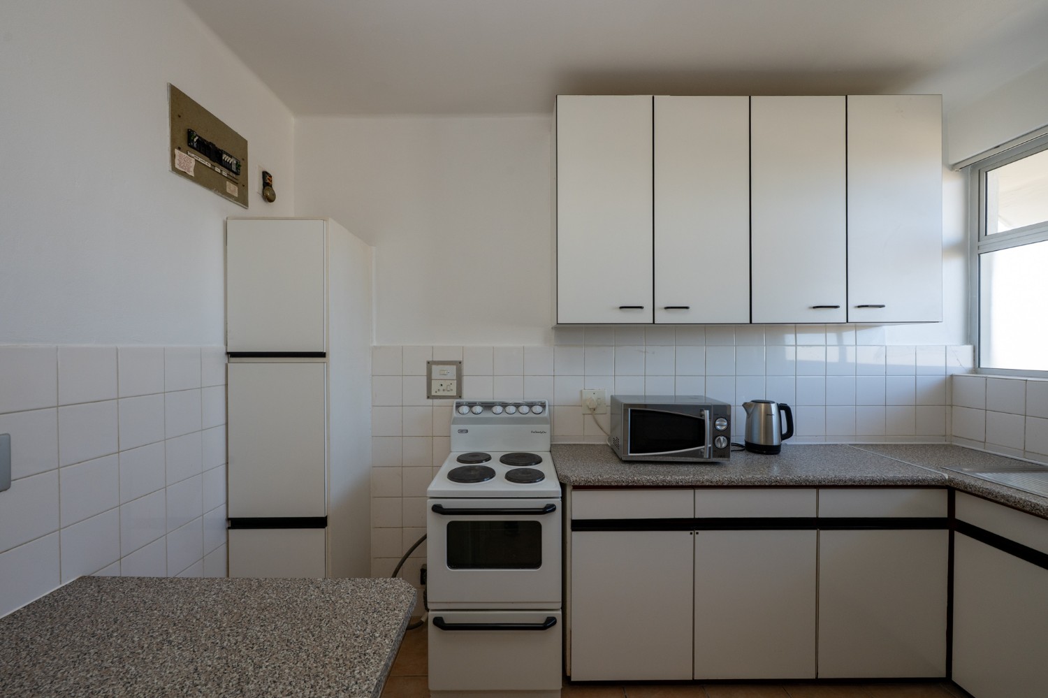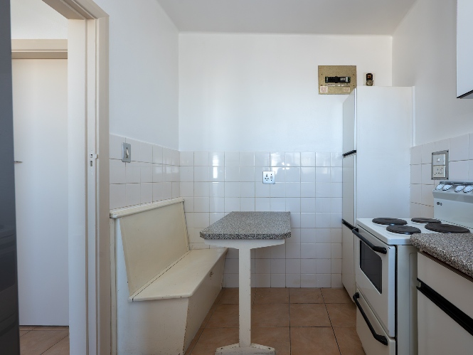 The apartment is exceptionally well-kept. The open-plan layout maximises space and natural light, while the kitchen and bathroom, complete with a shower over bath, basin, and toilet, are practical and functional.