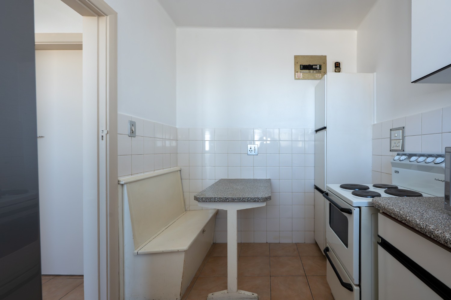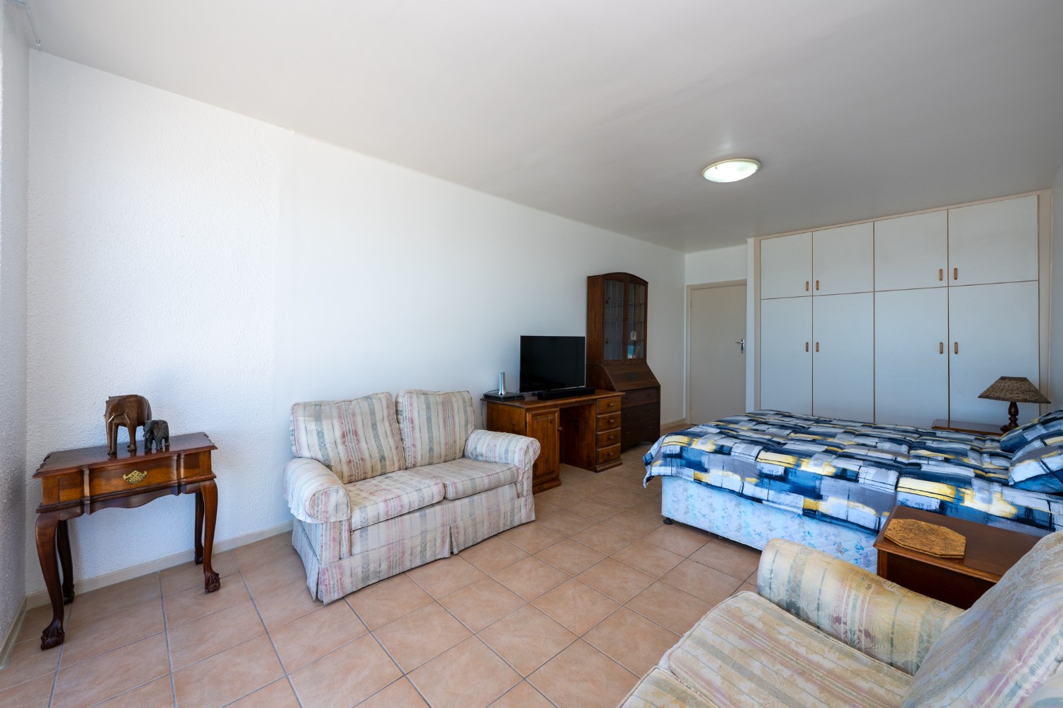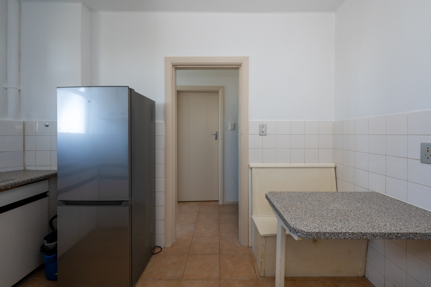 The apartment is exceptionally well-kept. The open-plan layout maximises space and natural light, while the kitchen and bathroom, complete with a shower over bath, basin, and toilet, are practical and functional.