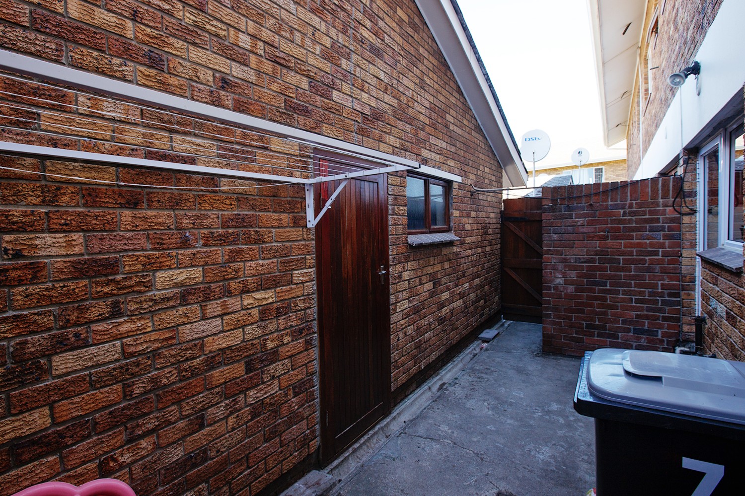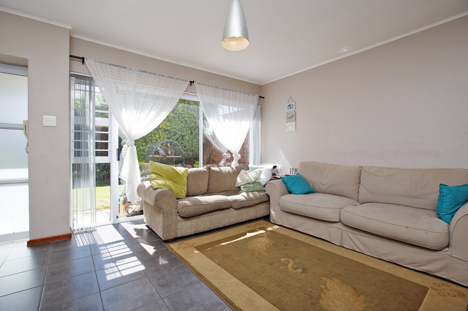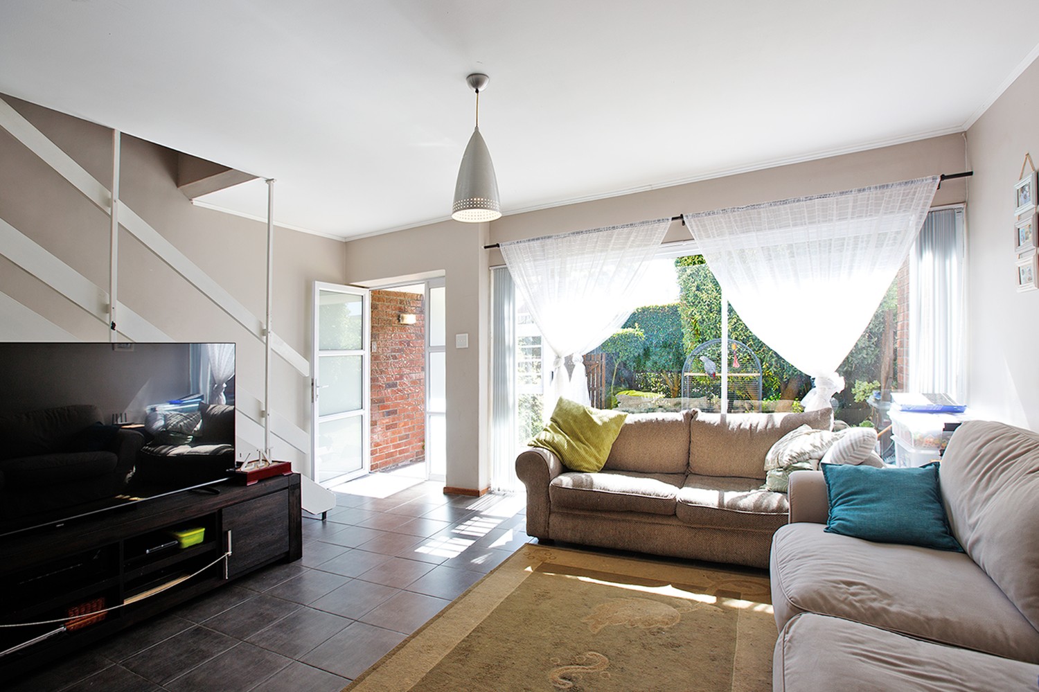 controlled access, CCTV and an electric fence.This lovely 2-bedroom townhouse consists of an open-plan lounge and dining room with sliding patio doors onto the garden, a kitchen with electric oven hob and extractor with outside laundry area.