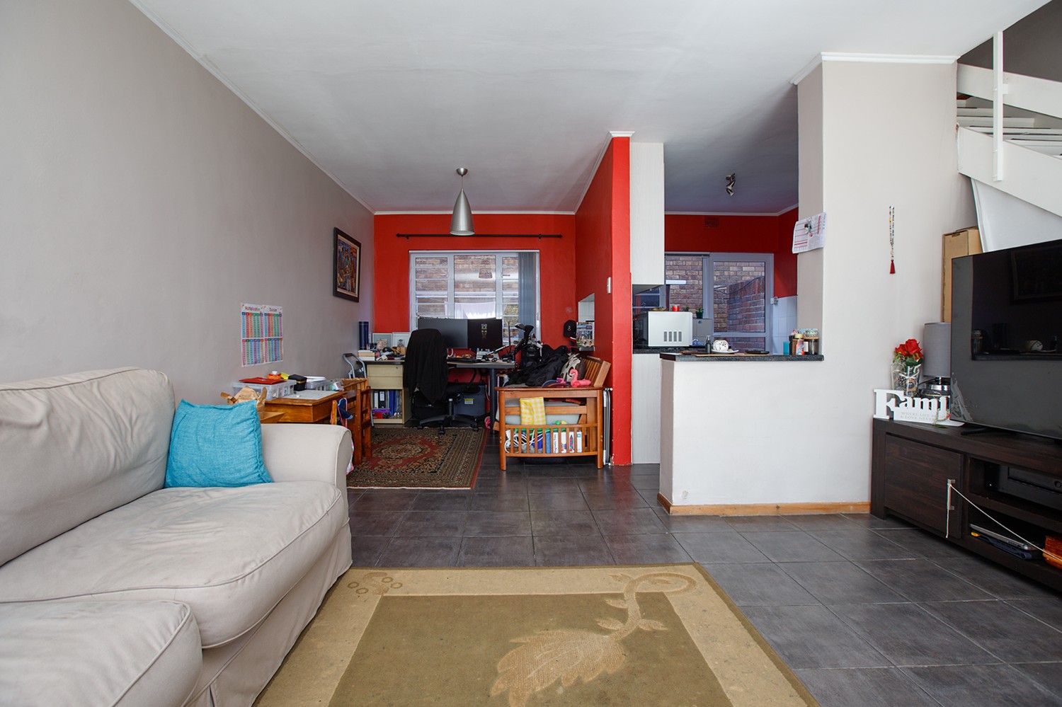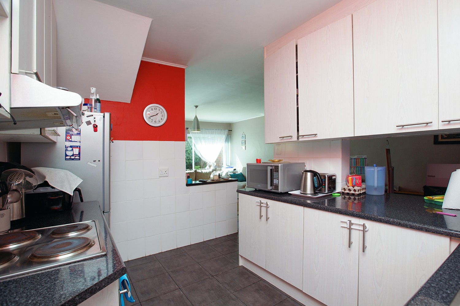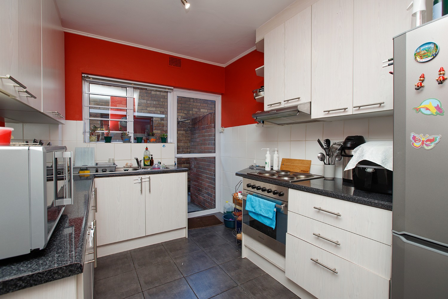 controlled access, CCTV and an electric fence.This lovely 2-bedroom townhouse consists of an open-plan lounge and dining room with sliding patio doors onto the garden, a kitchen with electric oven hob and extractor with outside laundry area.