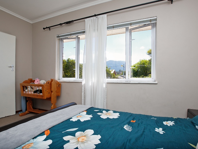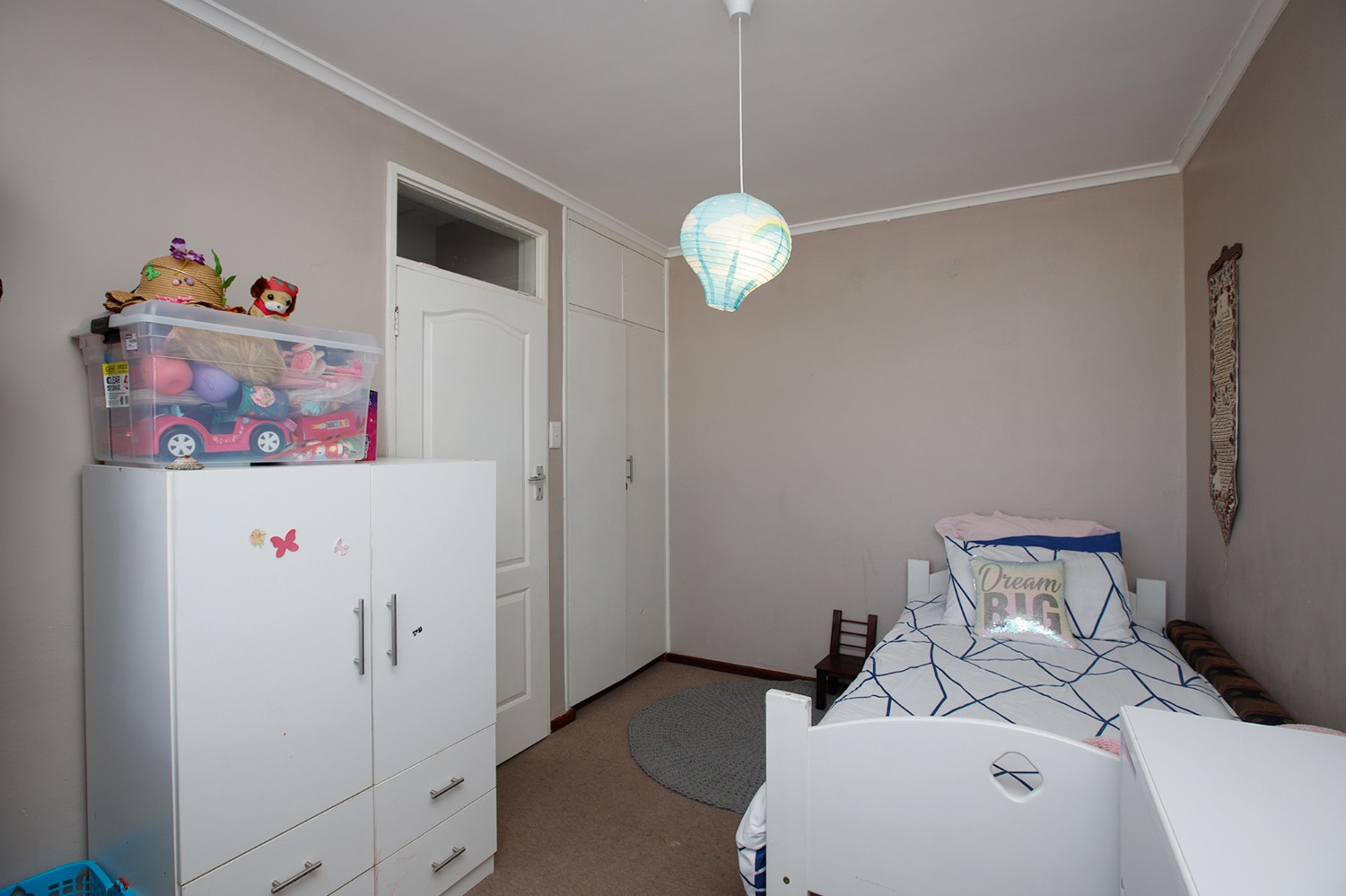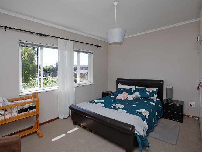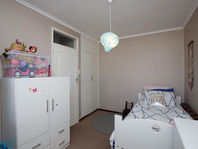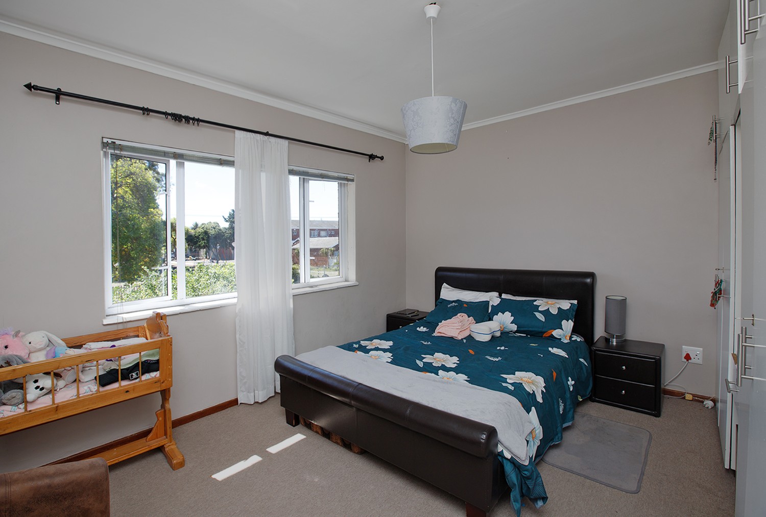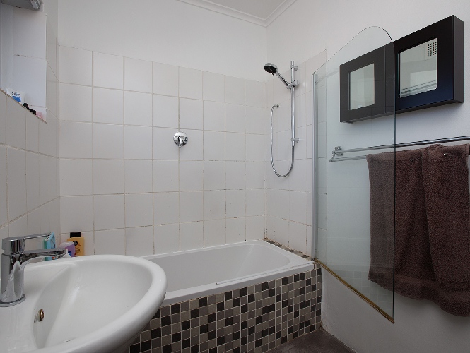 Two bedrooms both with built-in cupboards and a bathroom.