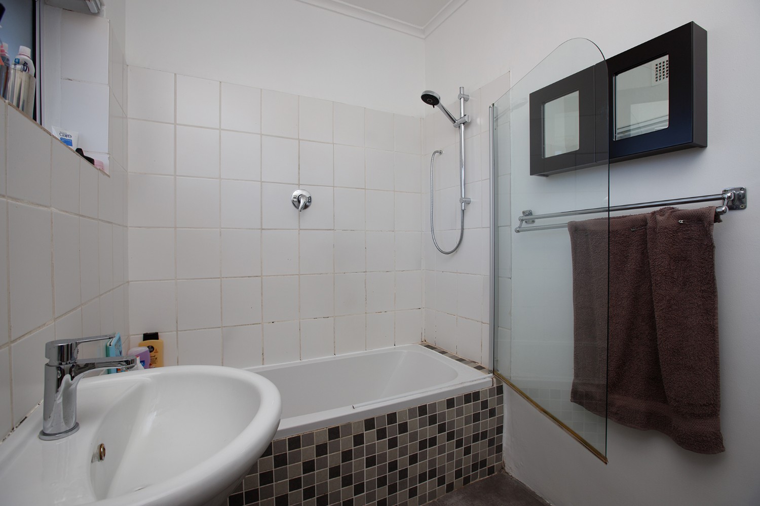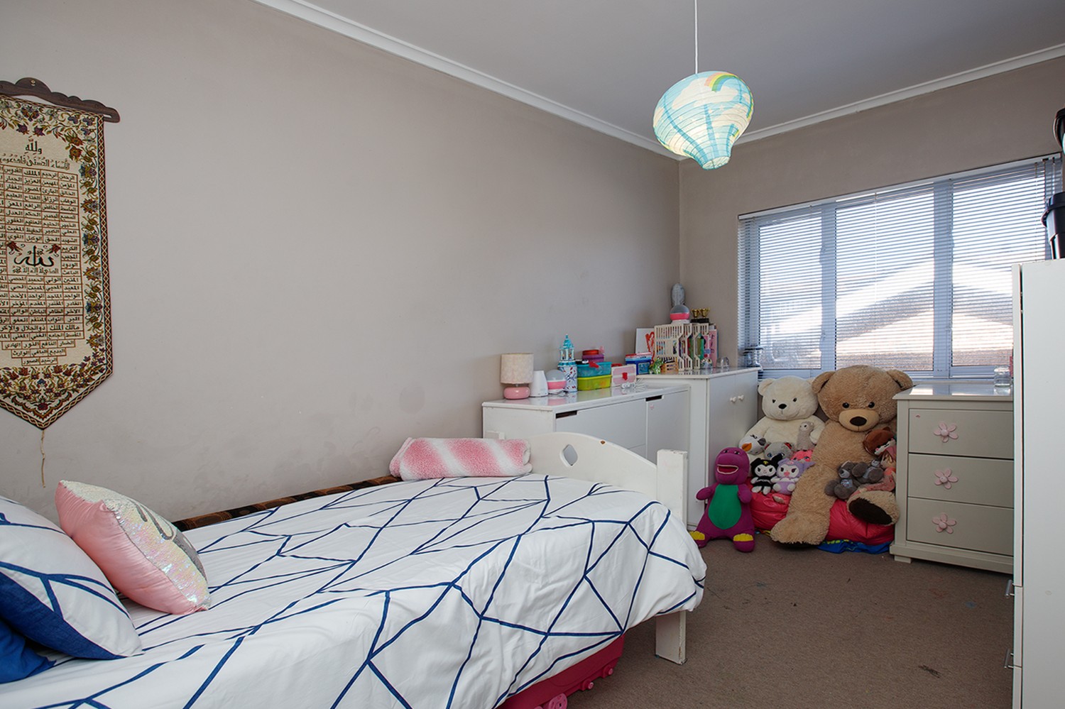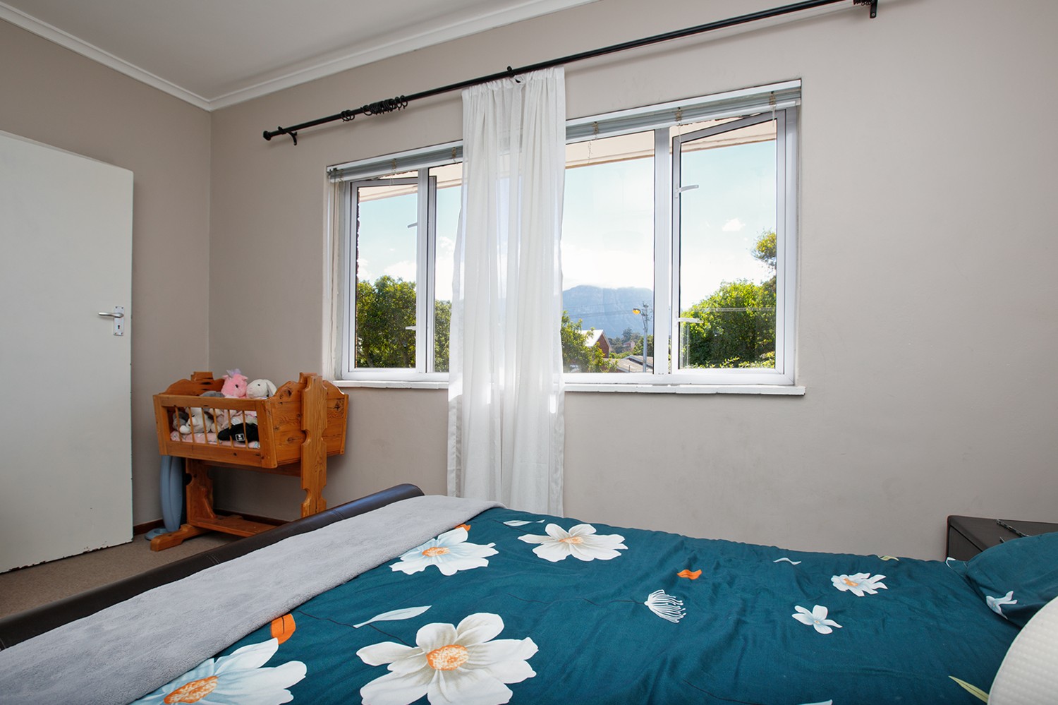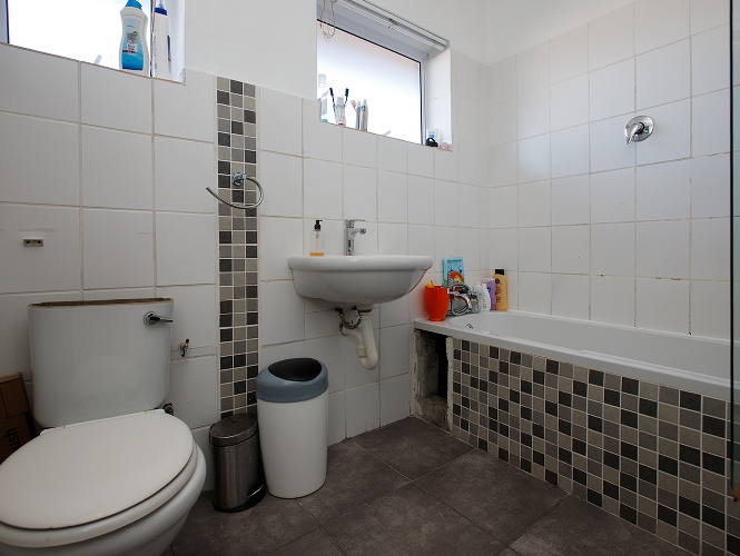 Two bedrooms both with built-in cupboards and a bathroom.