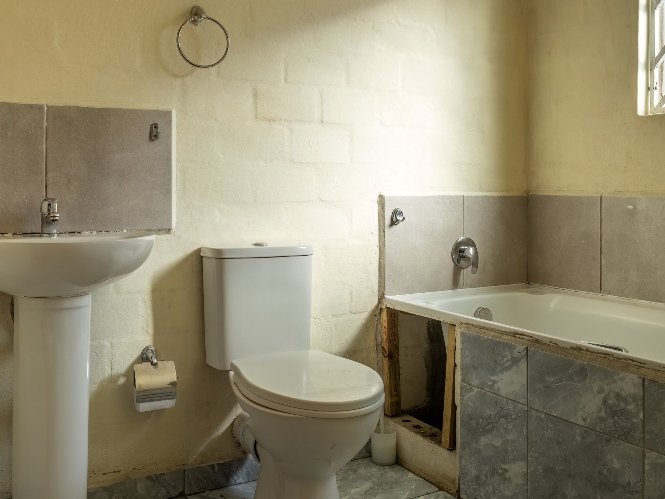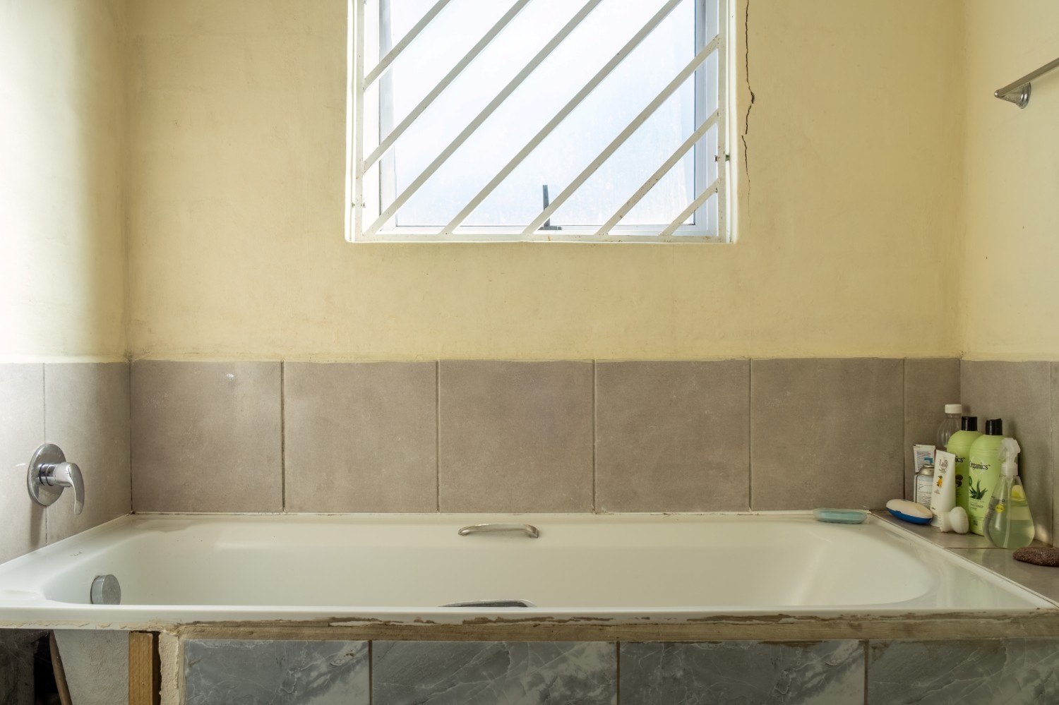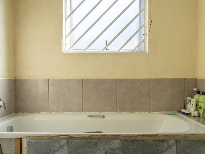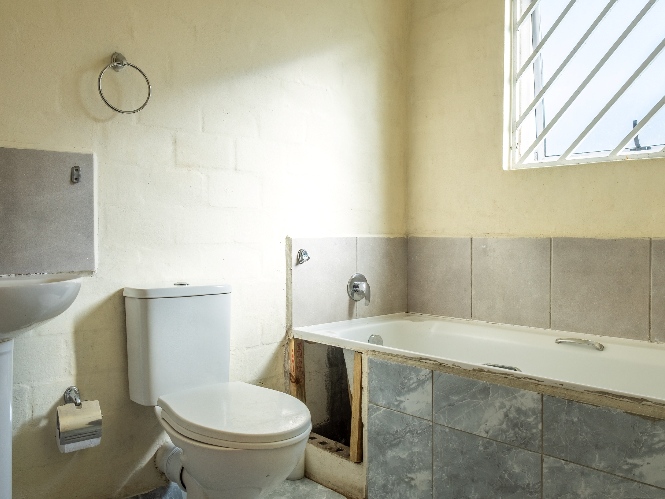 Both bedrooms are well-sized with large windows for ample natural light and are serviced by a neat bathroom with a bathtub, basin and toilet.
