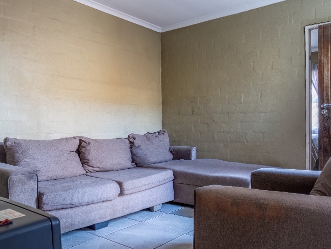 The property features a welcoming lounge with tiled flooring that flows into a functional kitchen, creating a cosy and practical living space.