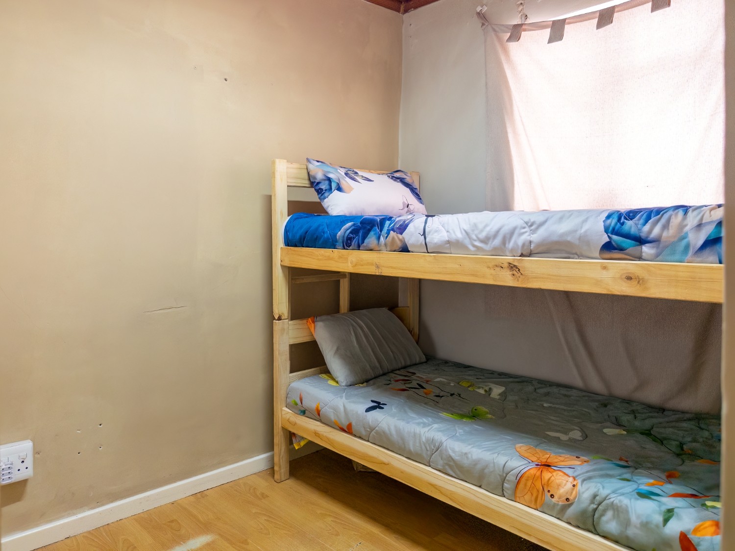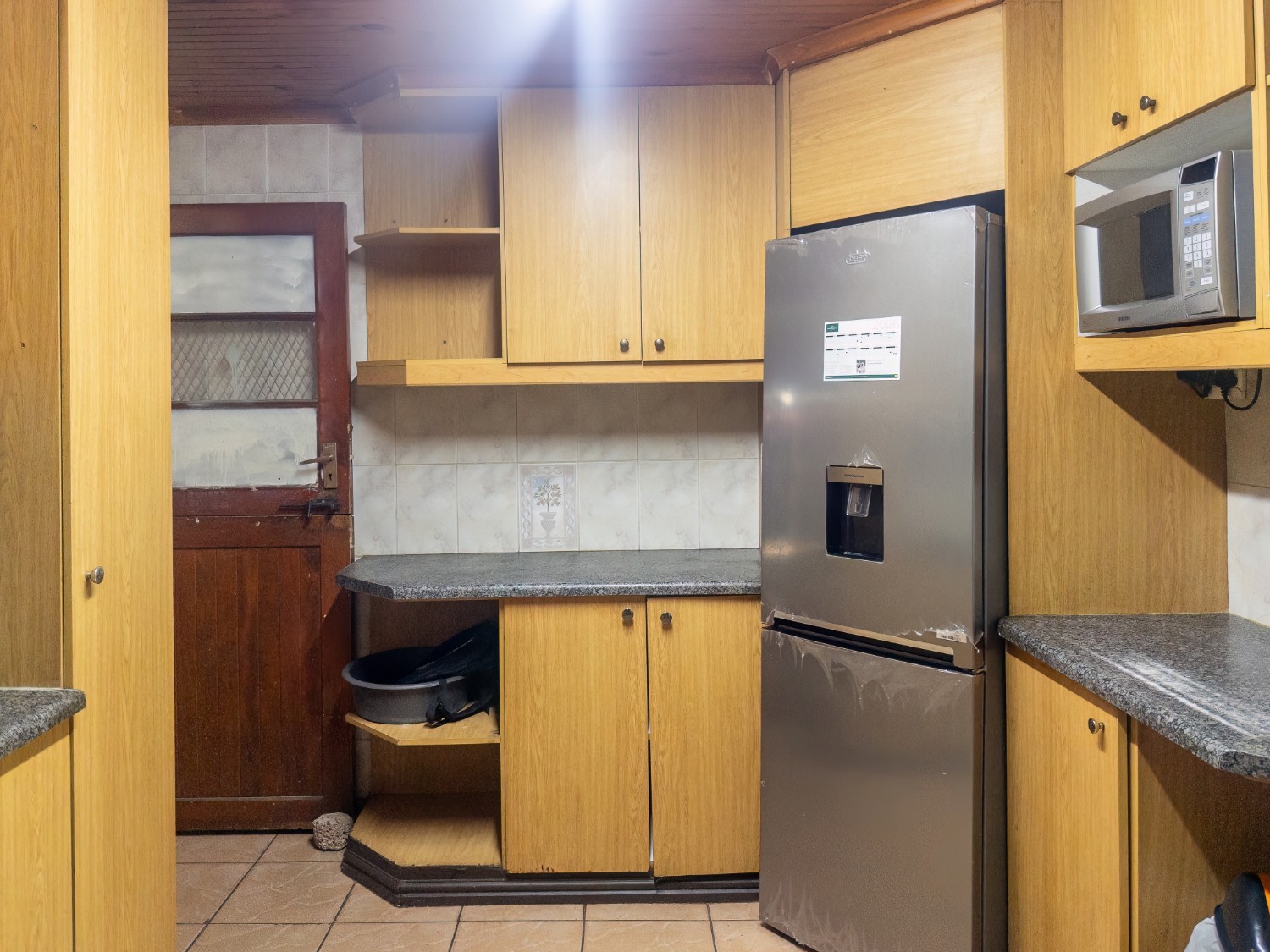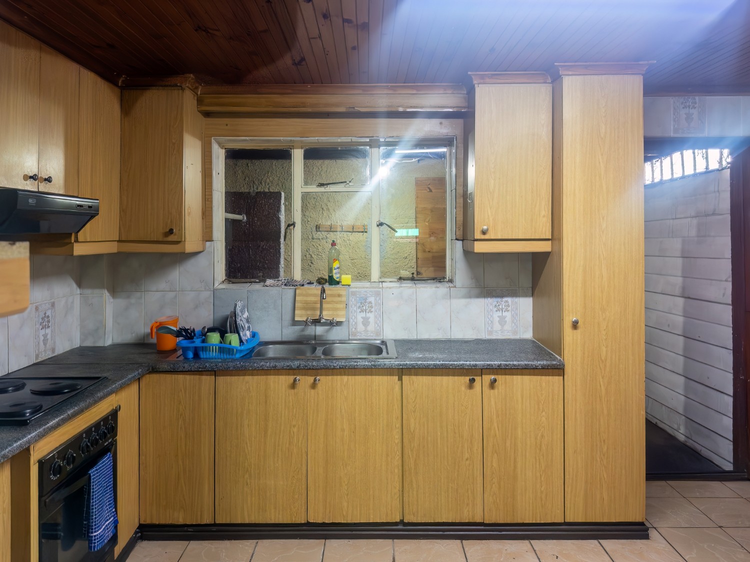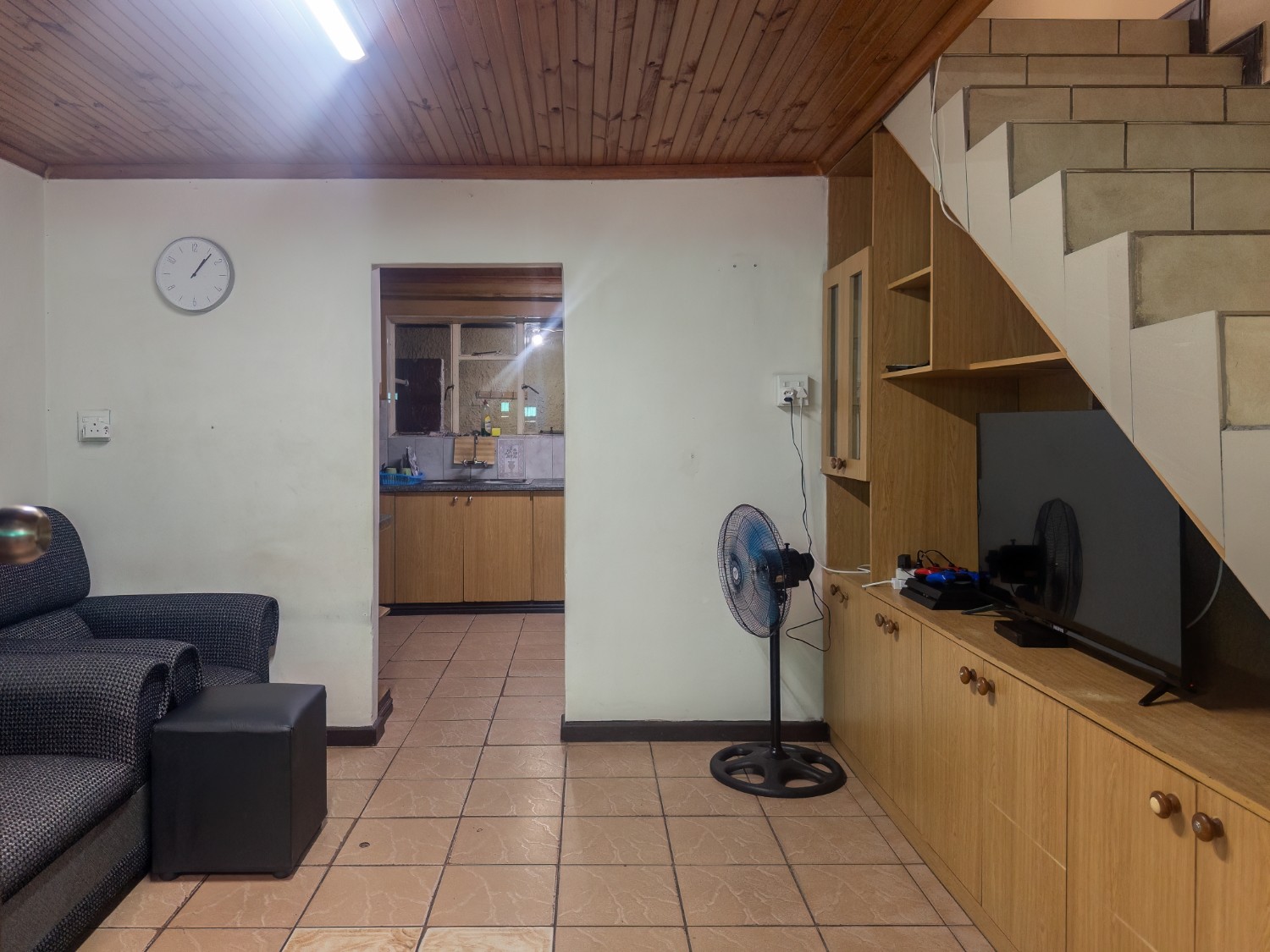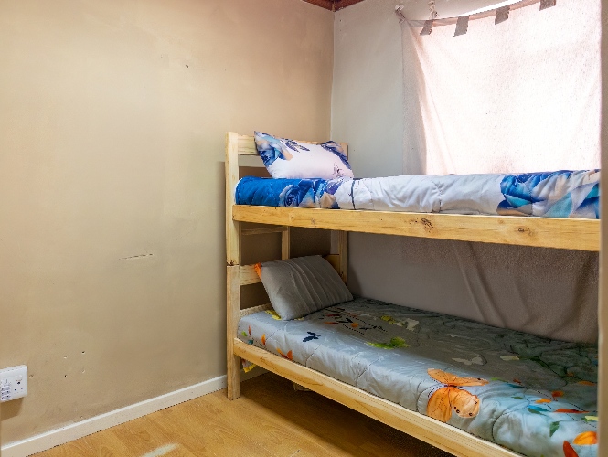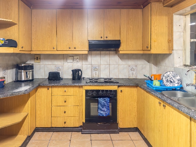 As you arrive, you are welcomed into an open-plan lounge and kitchen area, creating a comfortable and inviting living space. The kitchen offers built-in cupboards with ample storage, making it both practical and convenient for everyday use.