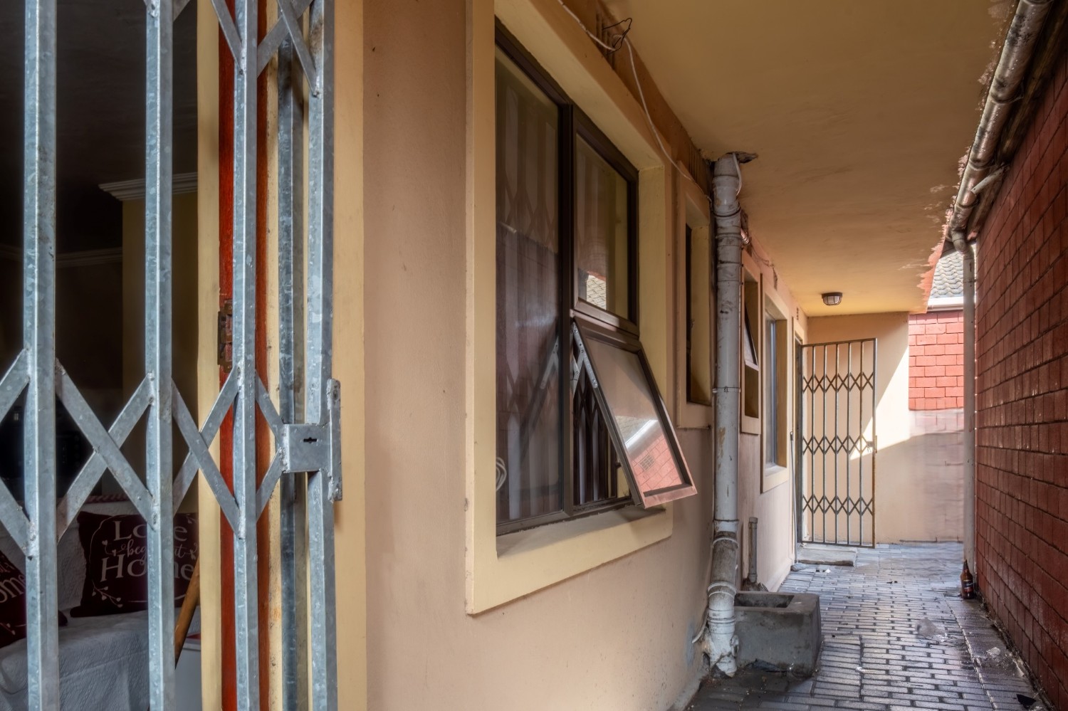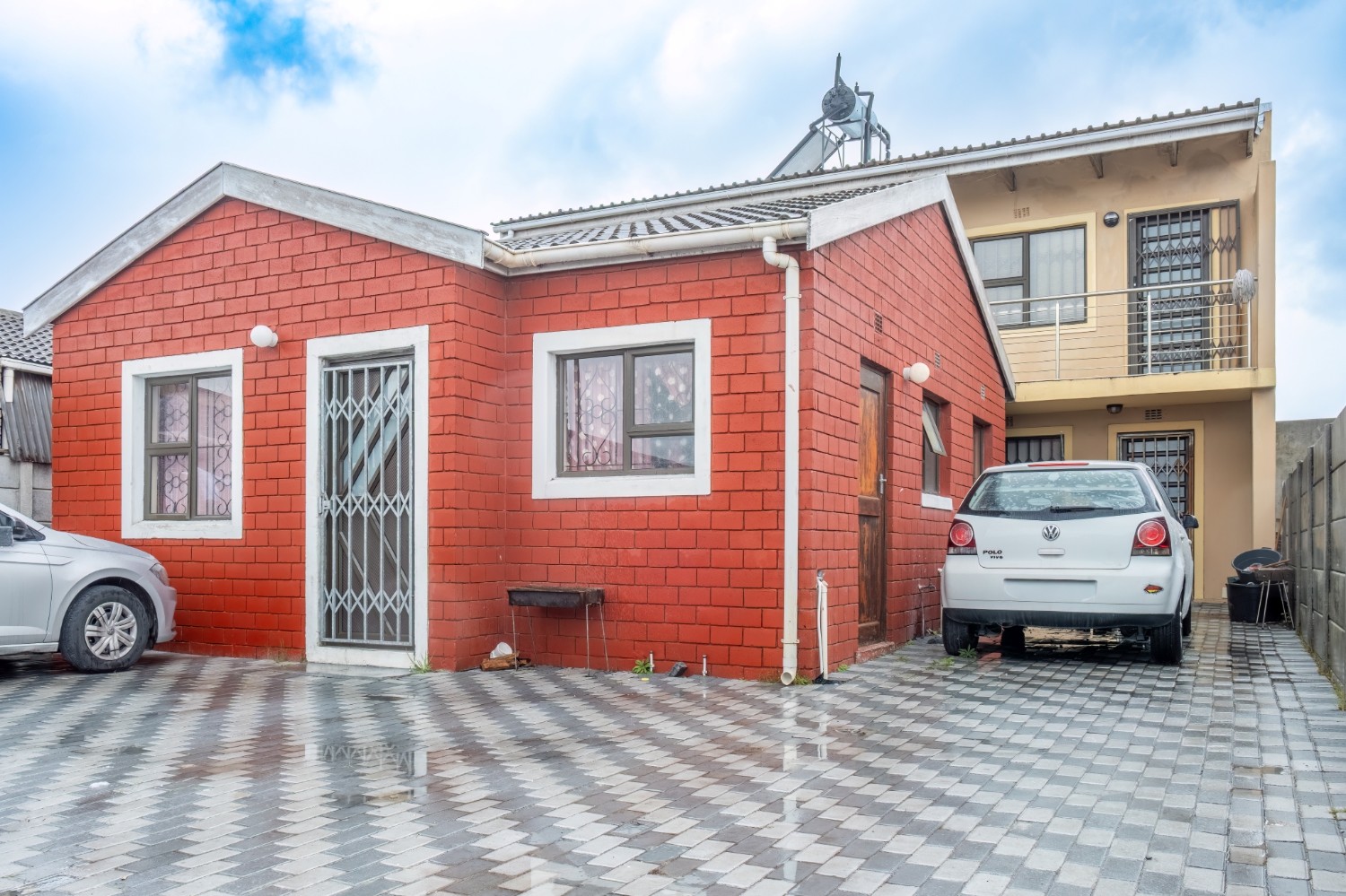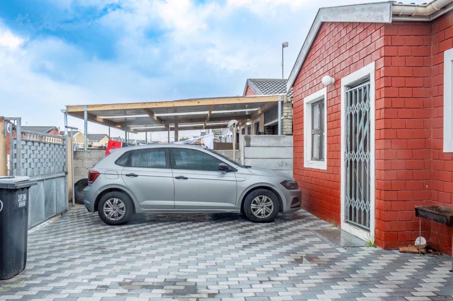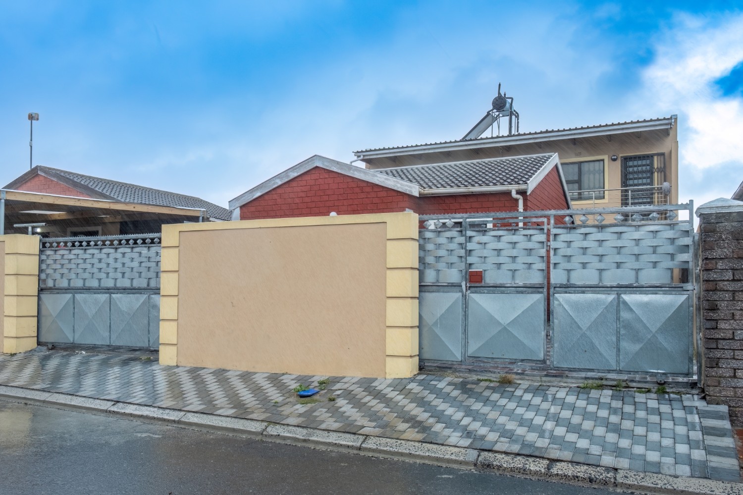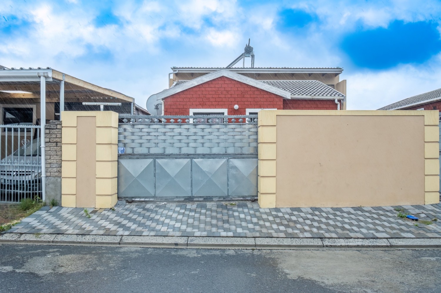 The property offers secure parking for up to three vehicles behind a gated entrance, ensuring peace of mind.