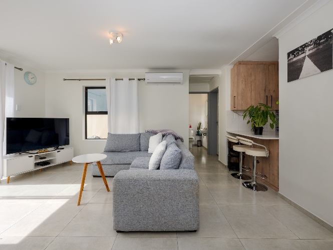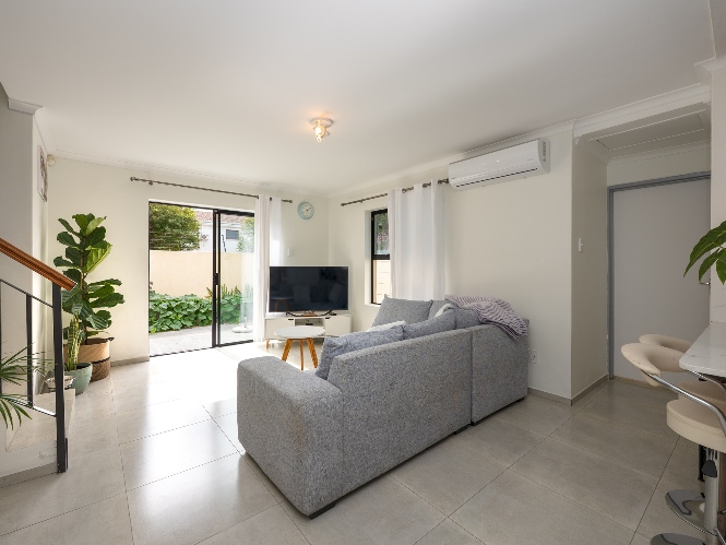 The light-filled lounge area creates a welcoming space to relax or entertain, flowing seamlessly into your own private garden, perfect for enjoying a morning coffee or a bit of outdoor living.