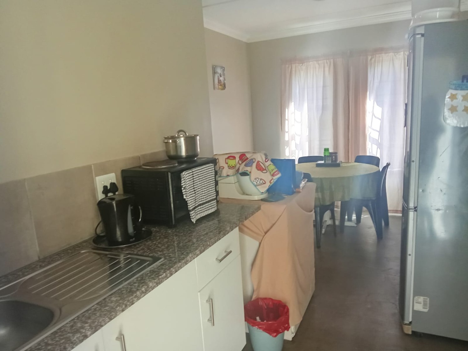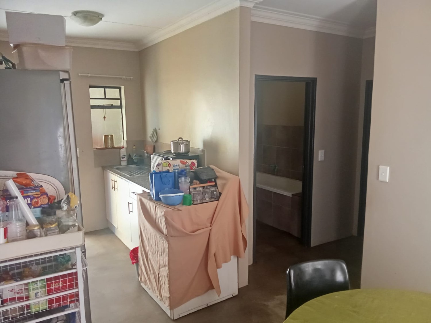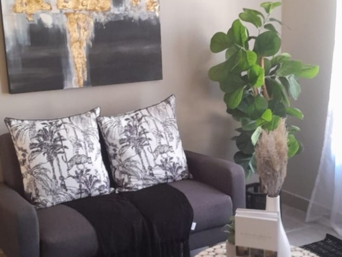 The home welcomes you with a charming lounge featuring neat tiled flooring, creating a bright and low-maintenance living space perfect for relaxing or entertaining. The kitchen is fitted with built-in cupboards and includes one plumbing point, providing practicality for everyday use.