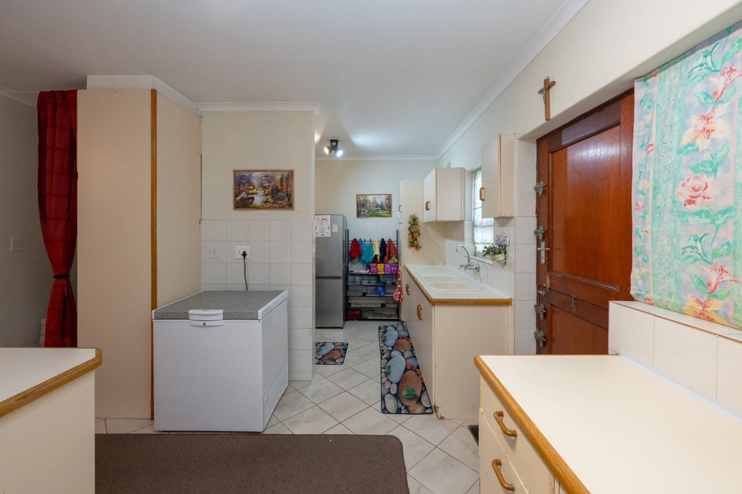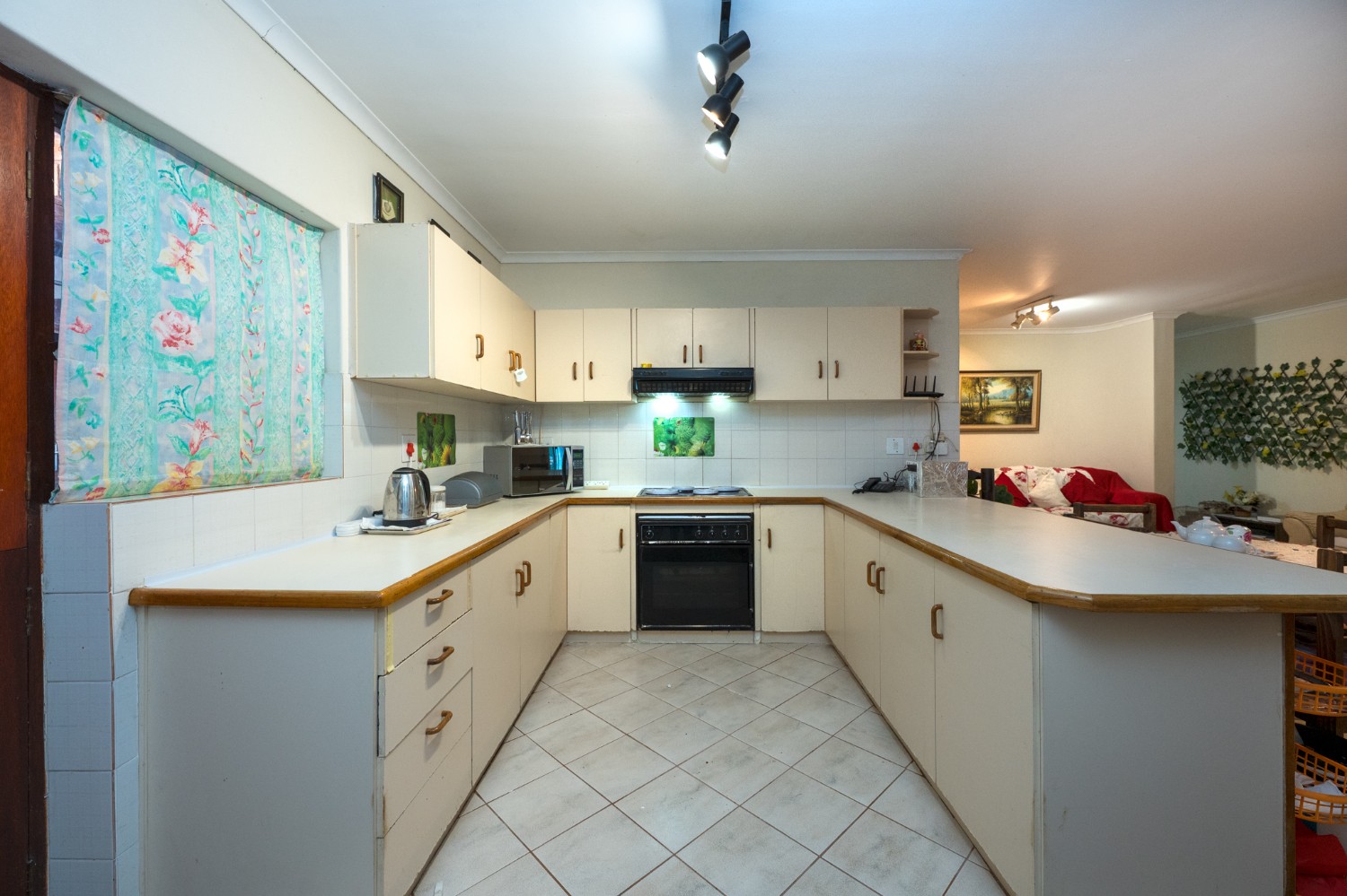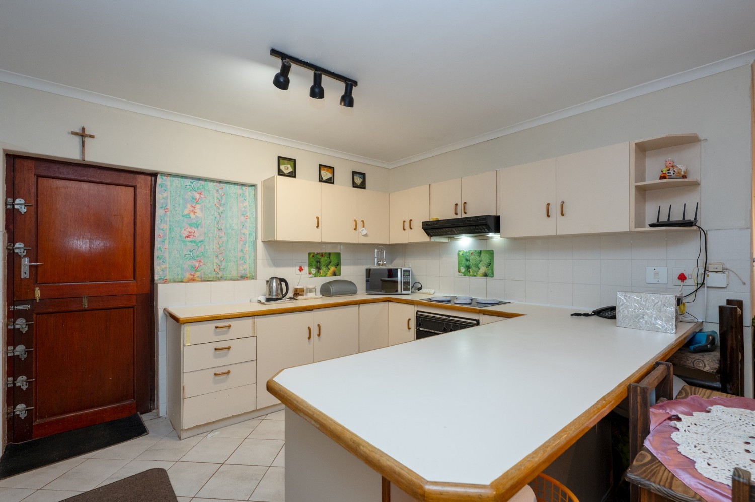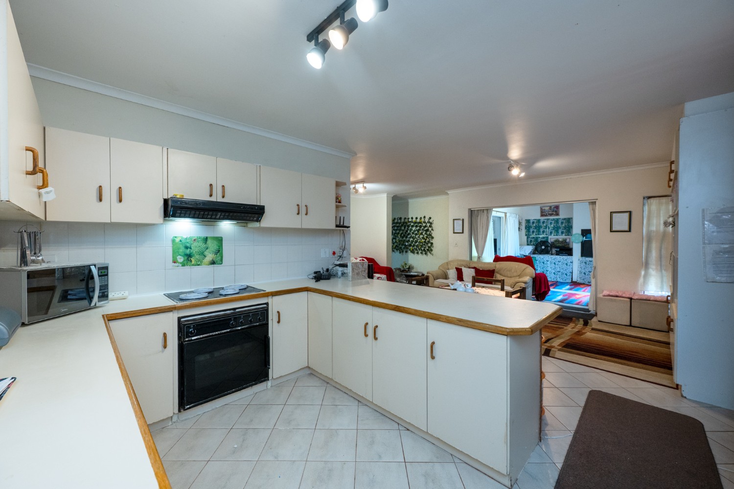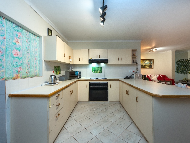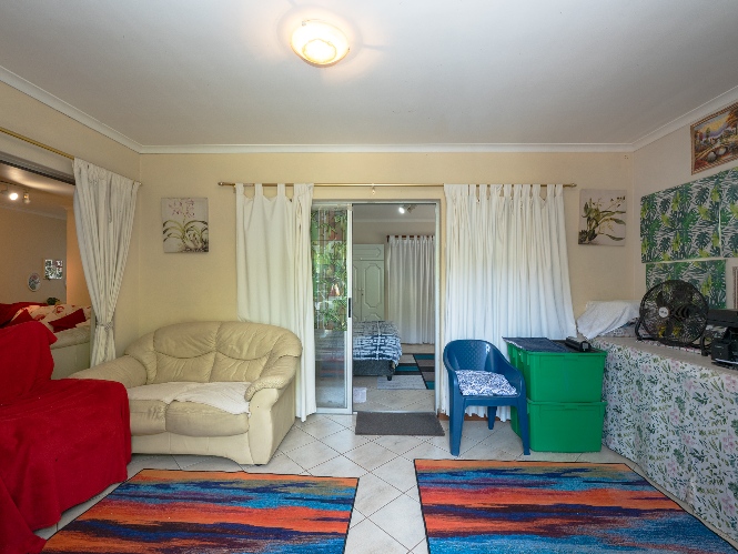 The home features a generously proportioned lounge and dining area that flows seamlessly to the dedicated entertainment room. Here, you will find a built-in braai perfect for hosting friends and family all year round. Just off the entertainment space is an additional living area that offers excellent flexibility, ideal as a home office, playroom, or even a fifth bedroom. The kitchen is both functional and well-equipped, boasting ample cabinetry, an under-counter oven and hob and a breakfast countertop. In addition, there is a scullery and laundry nook with additional cupboard space, a double sink, a plumbing point and space for a fridge.