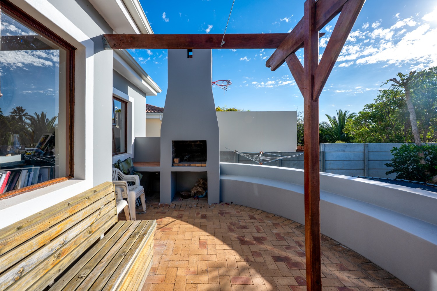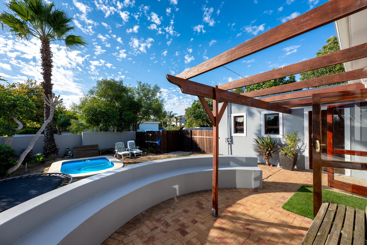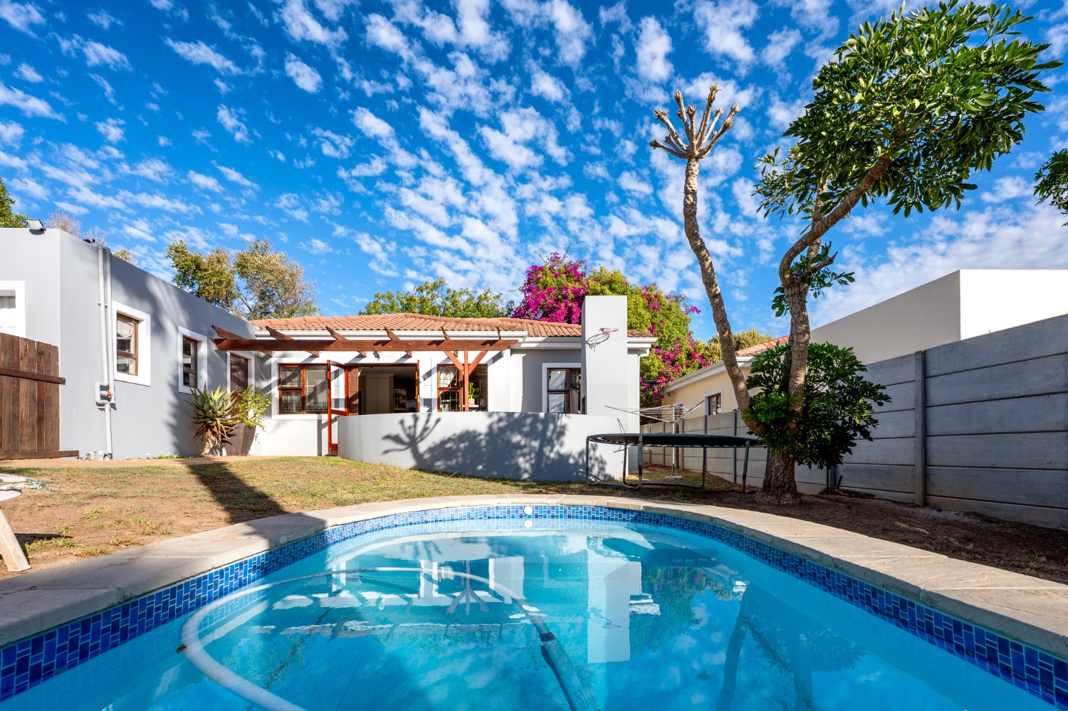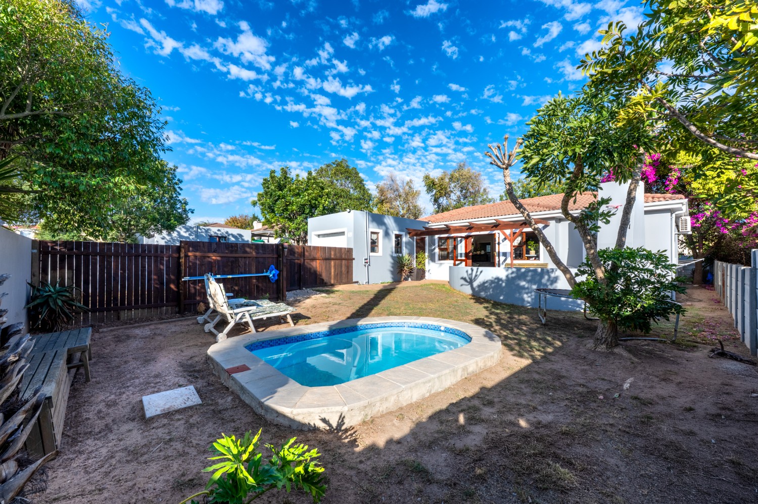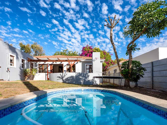 Outside, the property truly shines. The enclosed front garden boasts a gorgeous swimming pool and a built-in braai, making it the perfect setting for entertaining guests and enjoying relaxed weekends. The fully enclosed backyard adds an extra layer of privacy and space for children or pets to play safely. Additional features include a garage and additional parking in front of the property. Situated within a secure estate, this home offers peace of mind along with a welcoming community atmosphere.