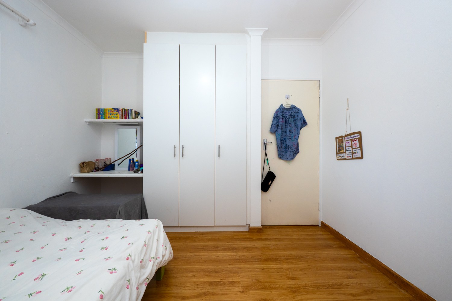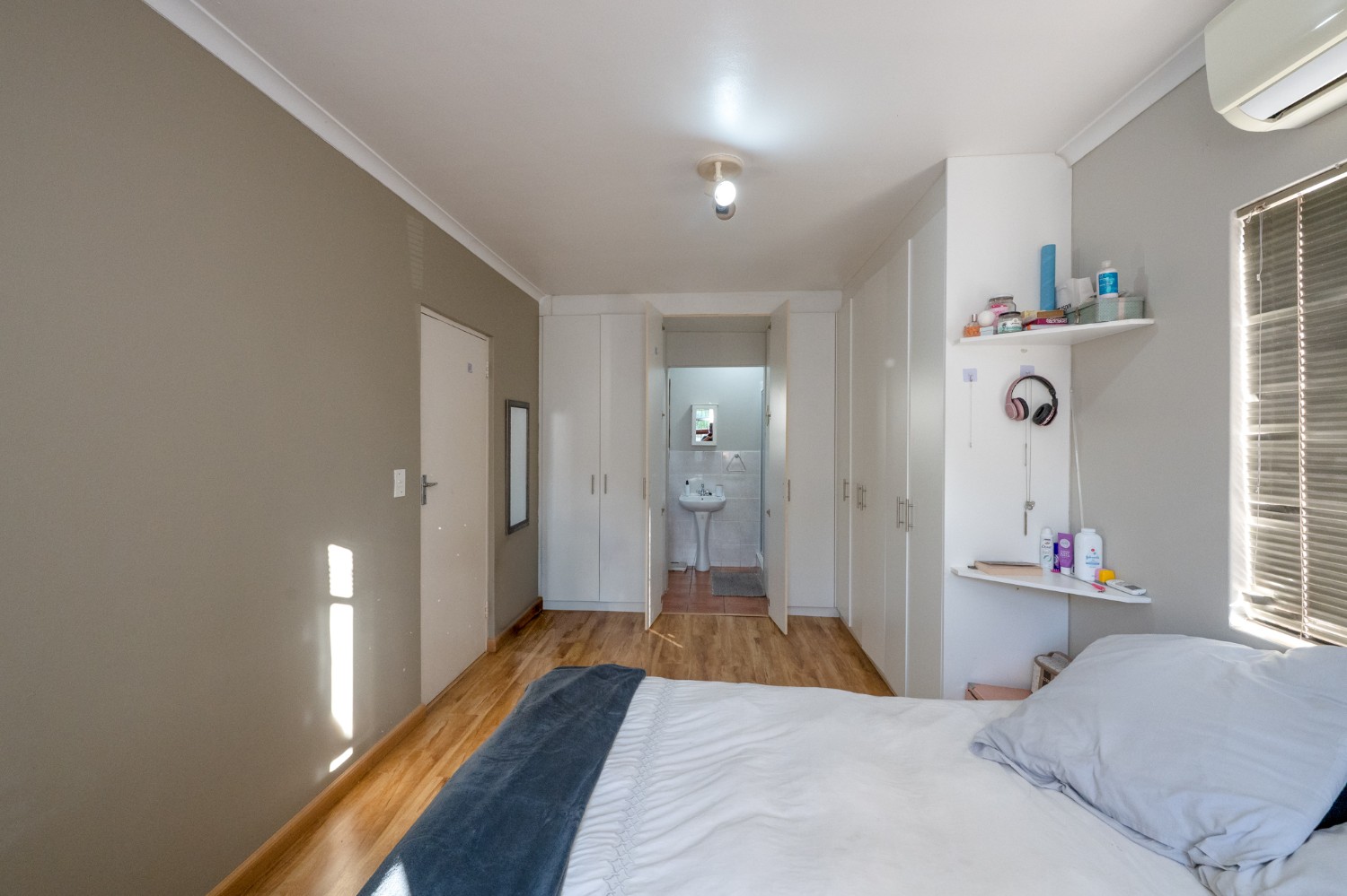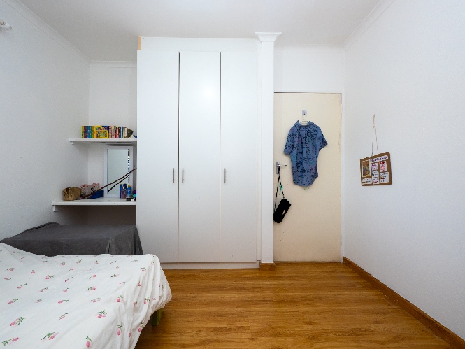 All three bedrooms are generously sized and fitted with built-in cupboards, offering ample storage. The main bedroom is a private retreat, complete with an en-suite bathroom fitted with a shower, basin, and toilet. The family bathroom is well-appointed, featuring a bathtub with a showerhead, basin, and toilet.