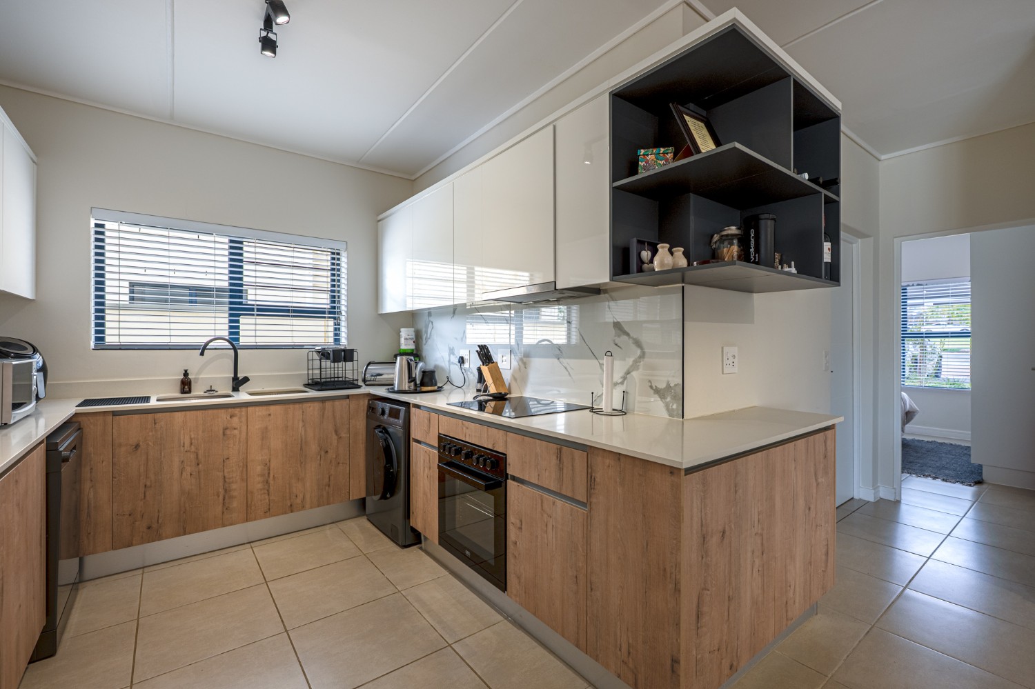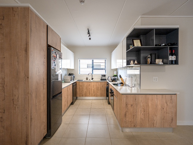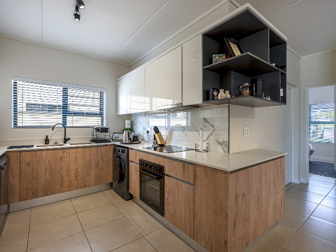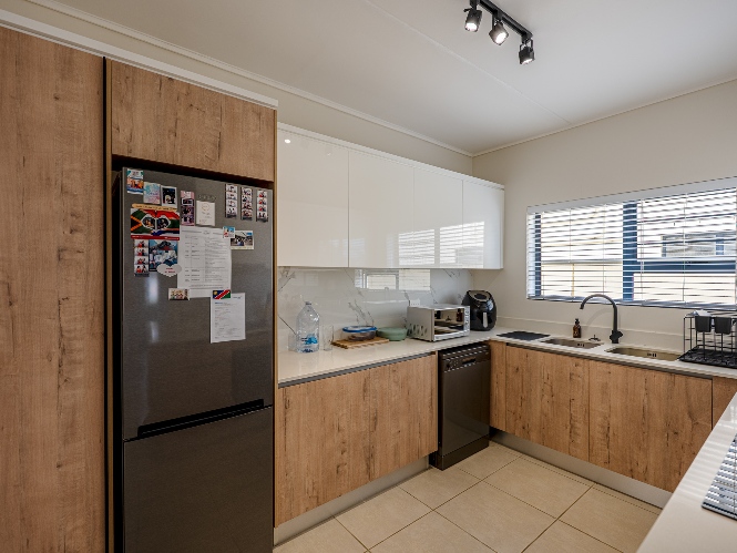 From the moment you enter, you are welcomed by a bright and spacious open-plan lounge and dining area, designed for both relaxed living and effortless entertaining. The tiled flooring enhances the clean, contemporary feel, while the sliding door invites natural light to pour in and opens onto a fully enclosed private backyard. The ultra-modern kitchen is a standout feature, boasting sleek light wood cabinetry, an under-counter oven and hob, and two plumbing points for added convenience. With ample space for your fridge and a layout designed for practicality, it’s a space that makes everyday living both easy and elegant.
