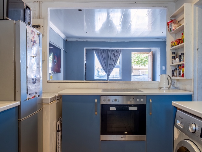Step inside to a well-sized lounge featuring tiled flooring and a cosy indoor braai space, perfect for relaxing evenings and entertaining year-round. The charming kitchen is fitted with built-in cupboards, a fitted stove and oven, one plumbing point, and provides ample space for a fridge, making it both functional and inviting.
