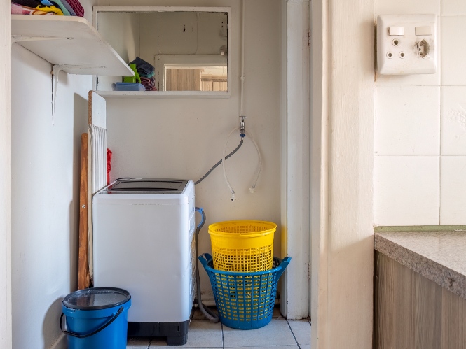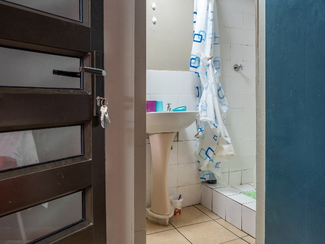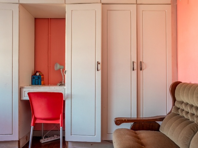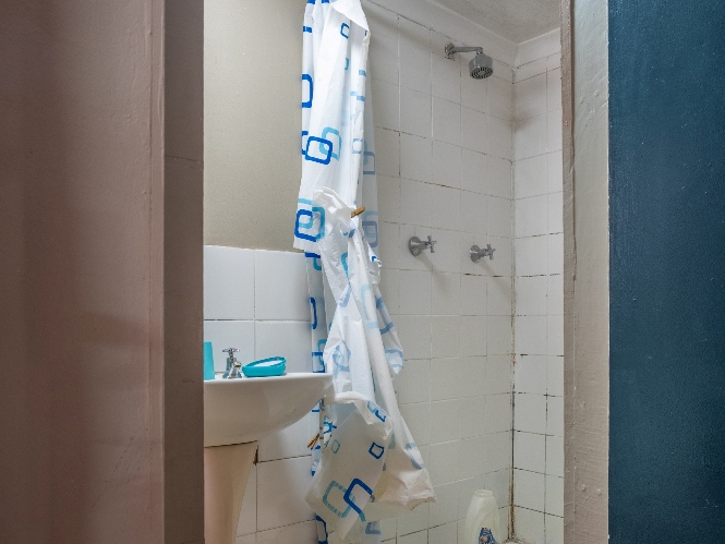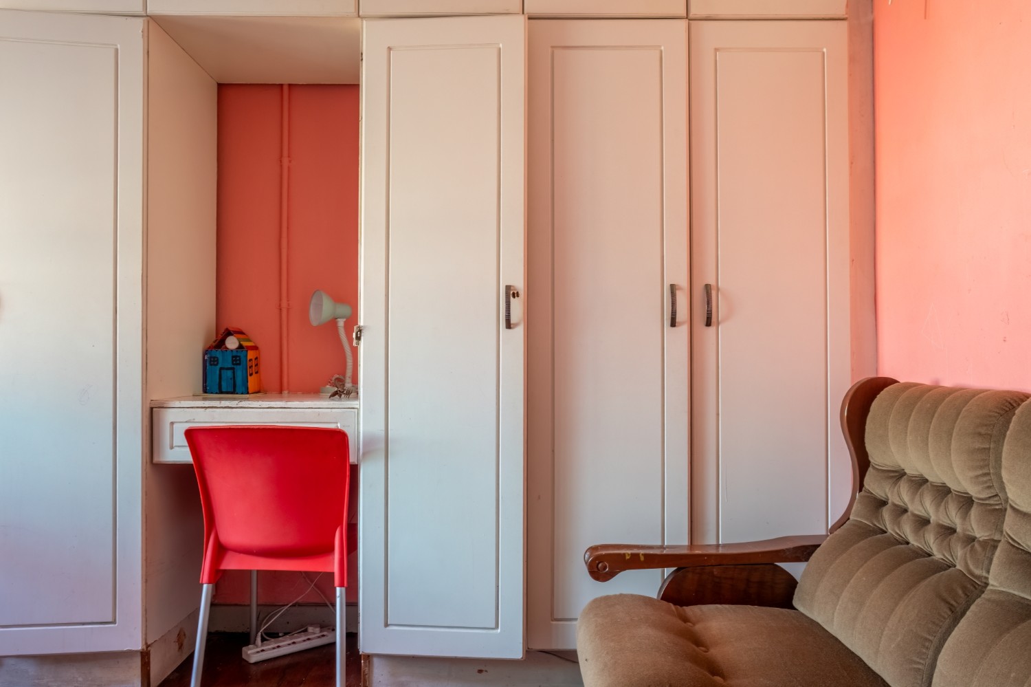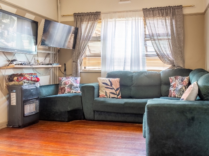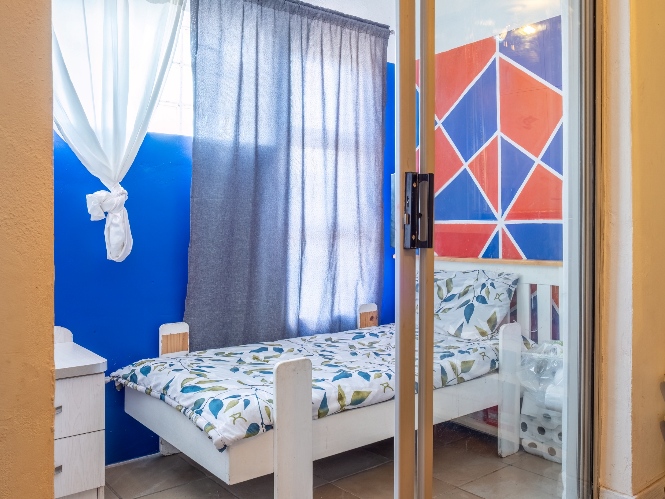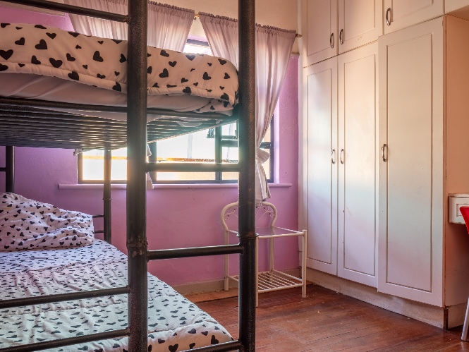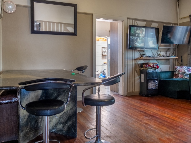 Upon arrival, you are welcomed into an open-plan lounge and dining area. The kitchen offers built-in cupboards, providing convenient storage space.