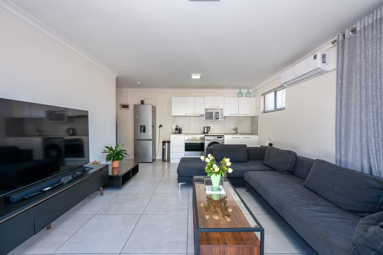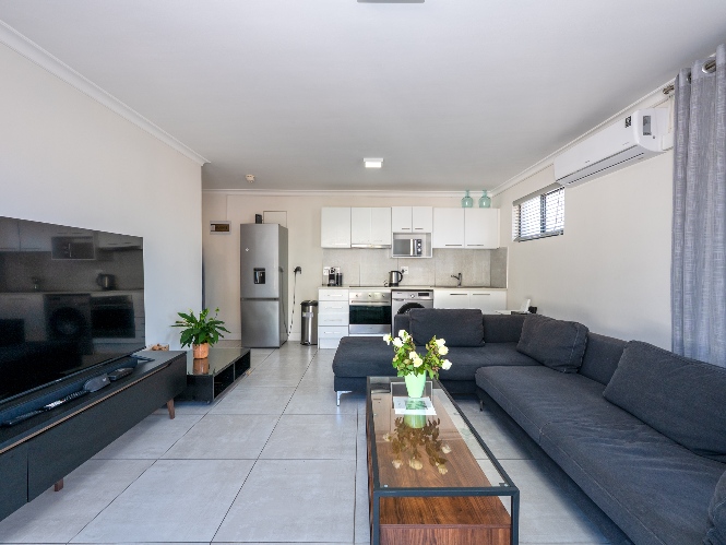 Featuring 2 bedrooms with built-in cupboards, the home is designed for easy living. A neat bathroom services the apartment, while air conditioning ensures year-round comfort.