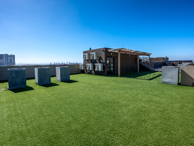 Residents can enjoy access to a rooftop communal pool area — perfect for relaxing and taking in the views — as well as a gym with essential equipment for your daily workouts.