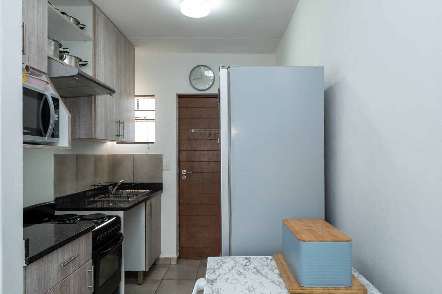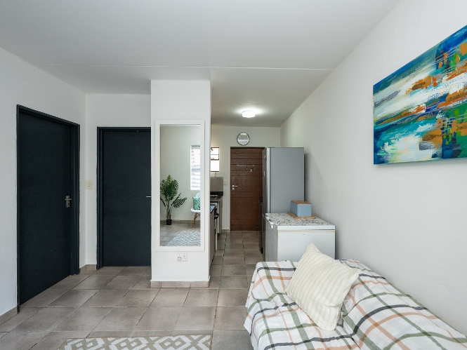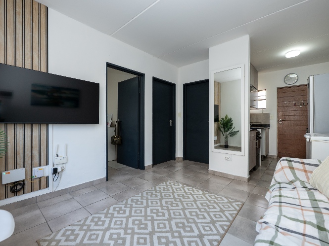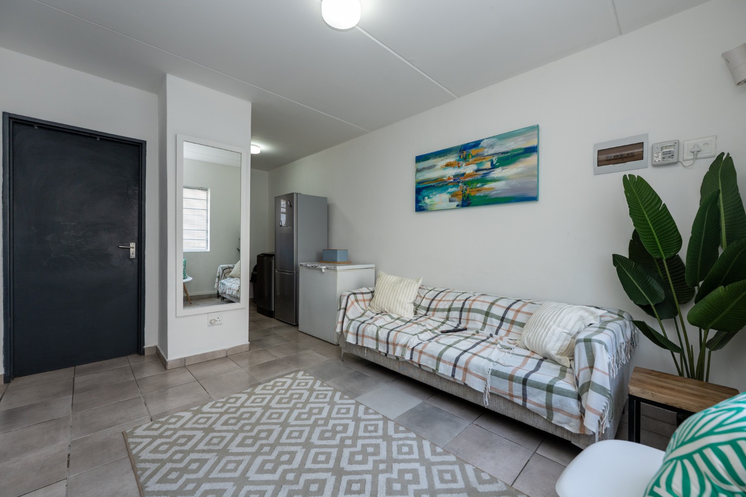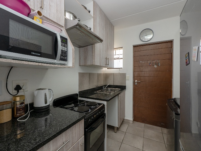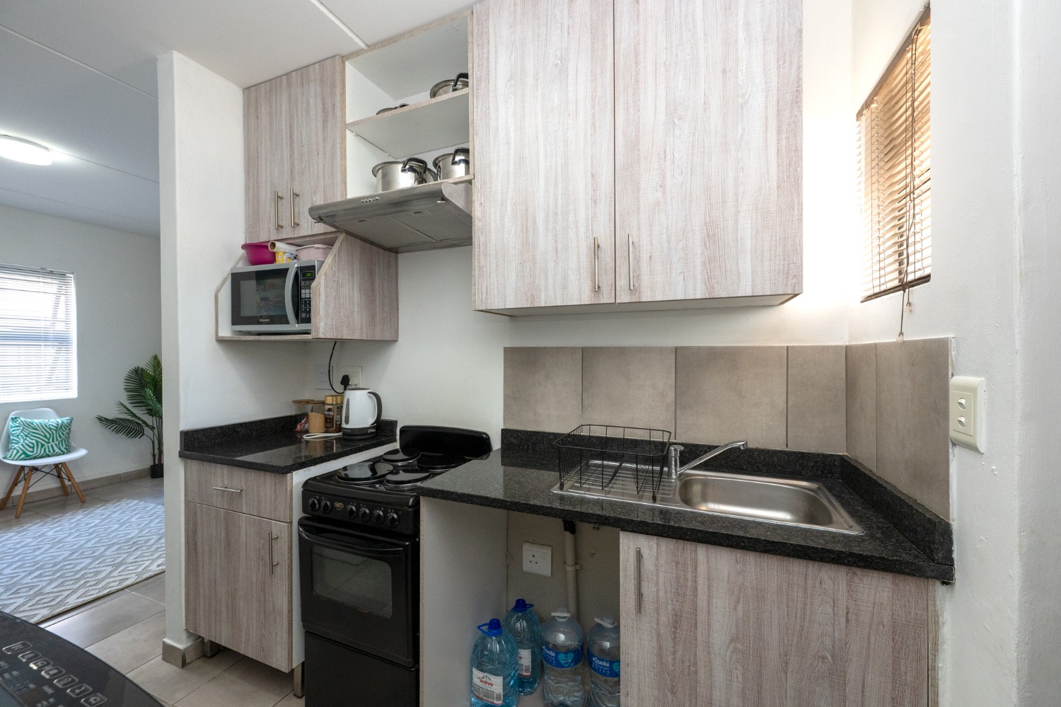 Step inside and be welcomed by a bright and airy lounge, beautifully finished with tiled flooring and filled with natural light that creates a relaxed and homely atmosphere. The charming kitchen is thoughtfully designed with built-in cupboards, granite countertops, a stove and oven, a plumbing point, and space for a fridge, making everyday living both practical and enjoyable.