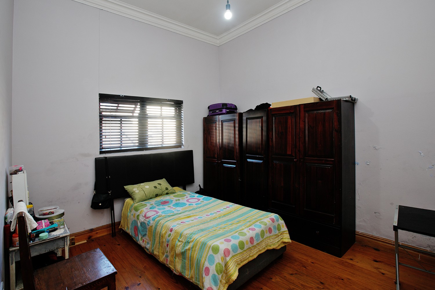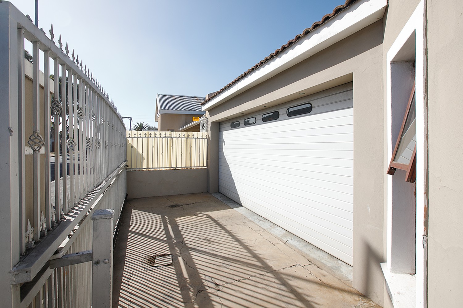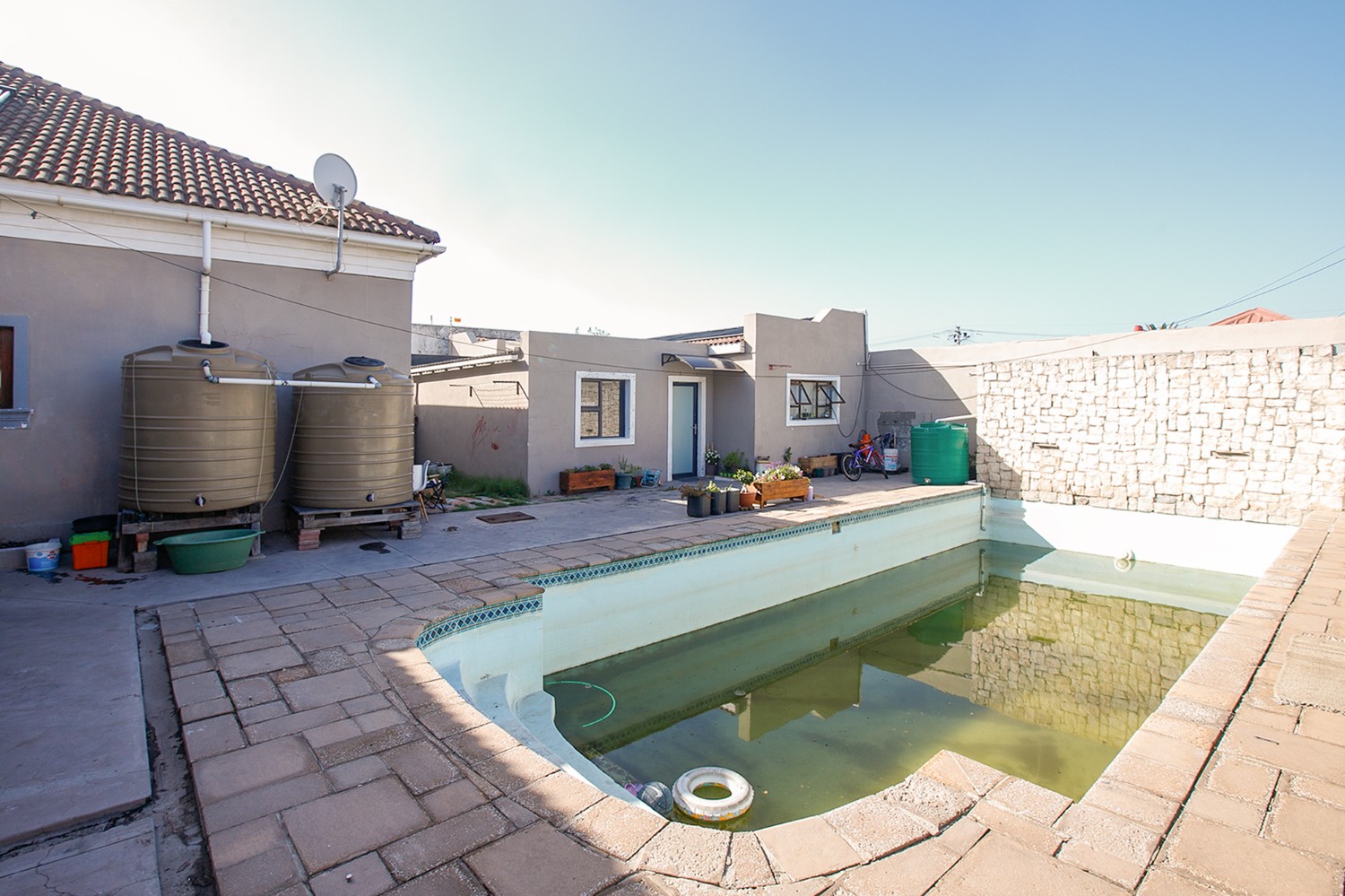 Step outside to a well-designed entertainment area, complete with a swimming pool and a covered braai space, perfect for hosting family and friends. A storage room is conveniently positioned behind the braai area, along with an additional outdoor toilet and shower.