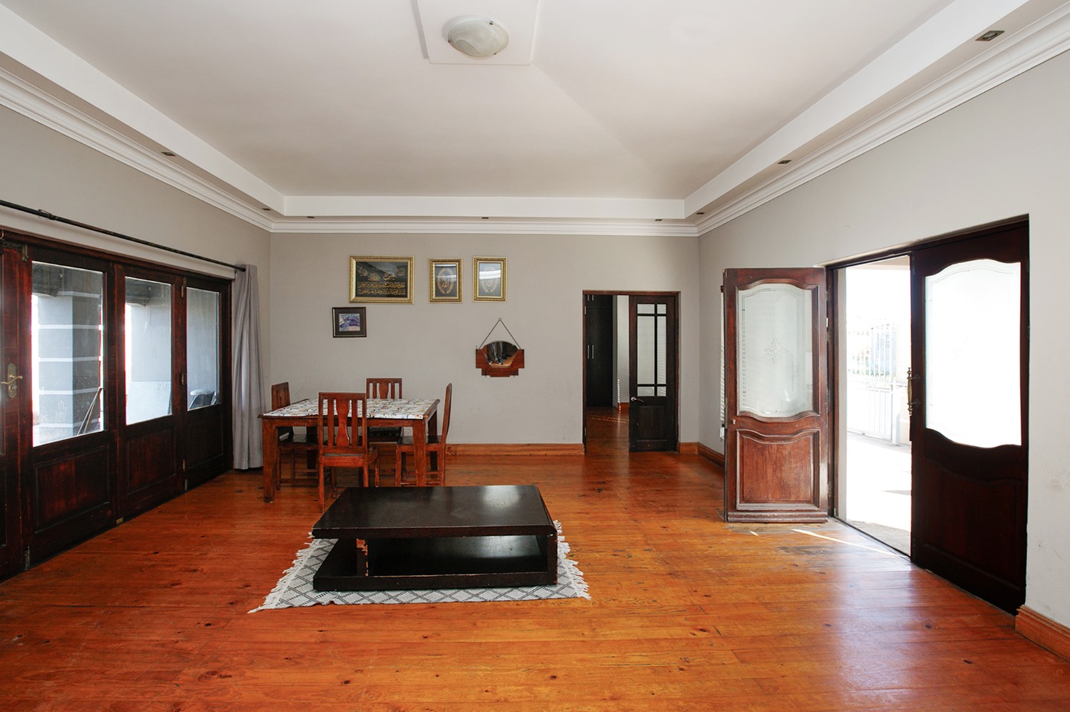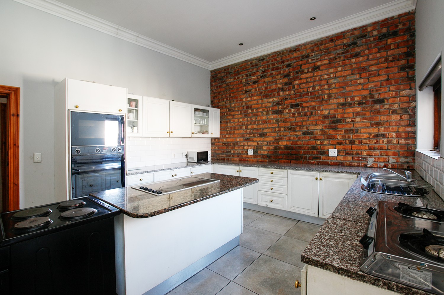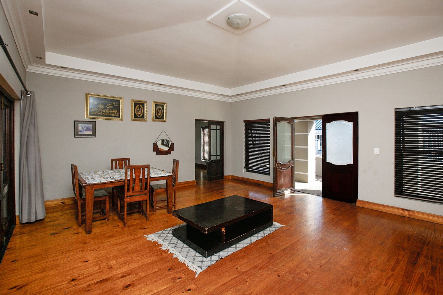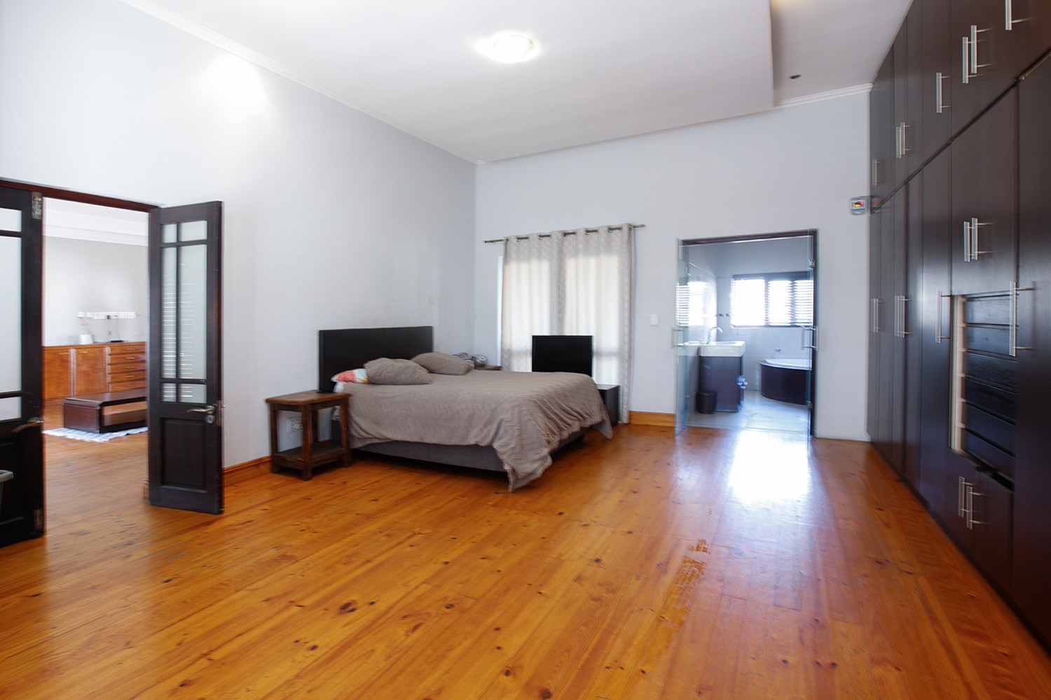 Welcomed by a double garage at the front, the home opens into a generously sized interior with five bedrooms in total. The main bedroom includes built-in cupboards and a private en-suite bathroom. A second bedroom, currently created with drywall, forms part of an extension to the very large lounge area, offering flexibility for use as a bedroom, office, or additional living space.