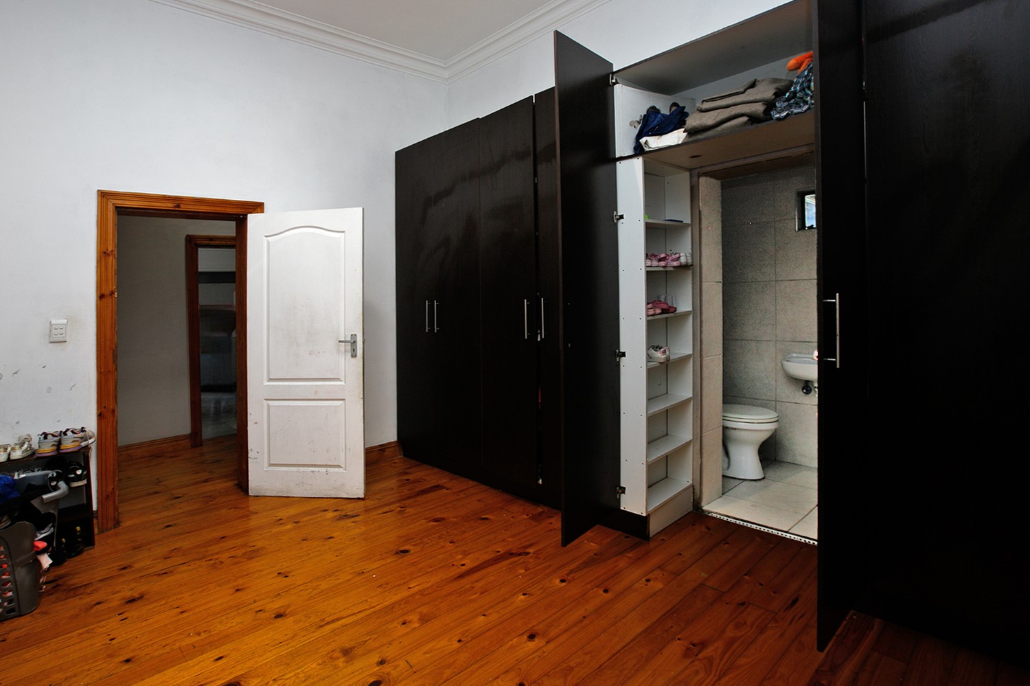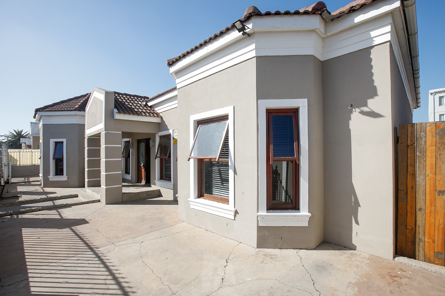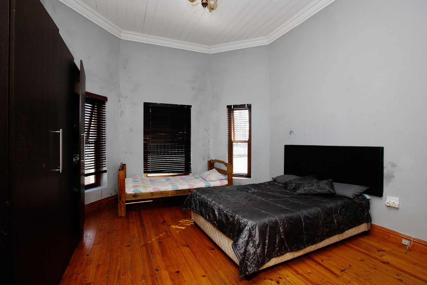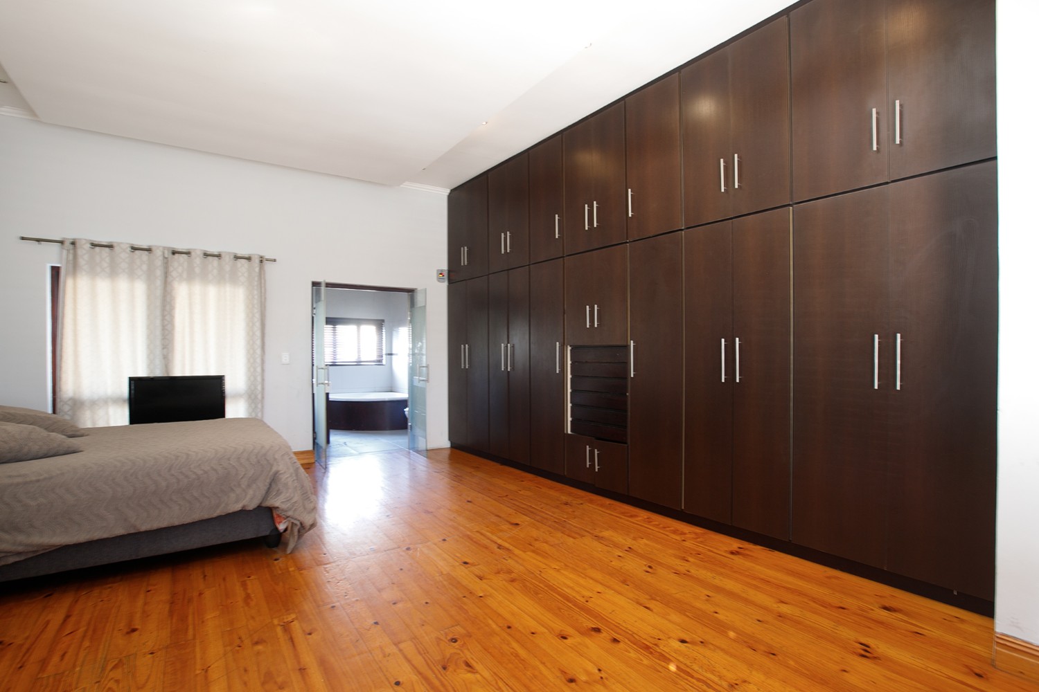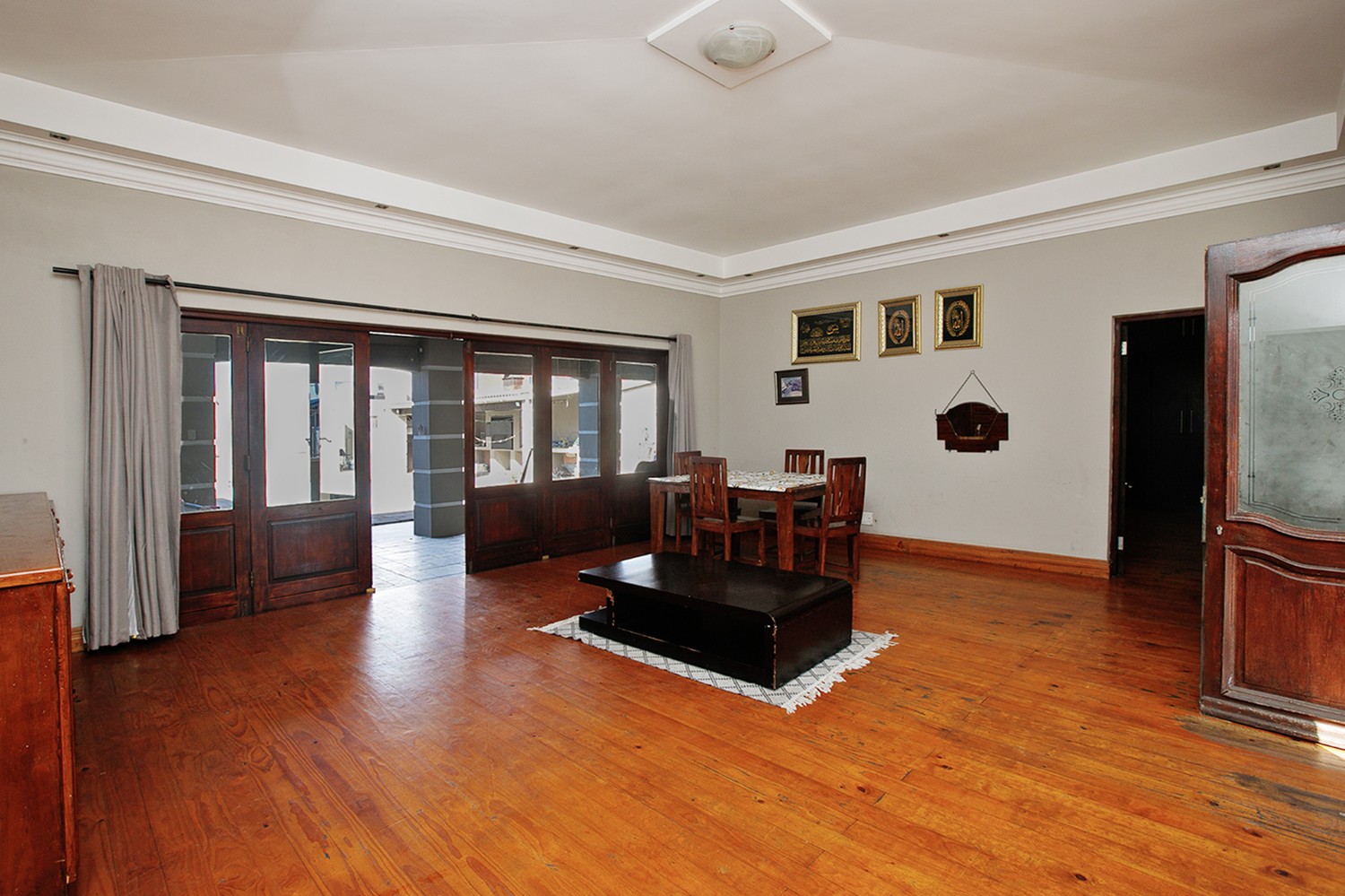 Welcomed by a double garage at the front, the home opens into a generously sized interior with five bedrooms in total. The main bedroom includes built-in cupboards and a private en-suite bathroom. A second bedroom, currently created with drywall, forms part of an extension to the very large lounge area, offering flexibility for use as a bedroom, office, or additional living space.
