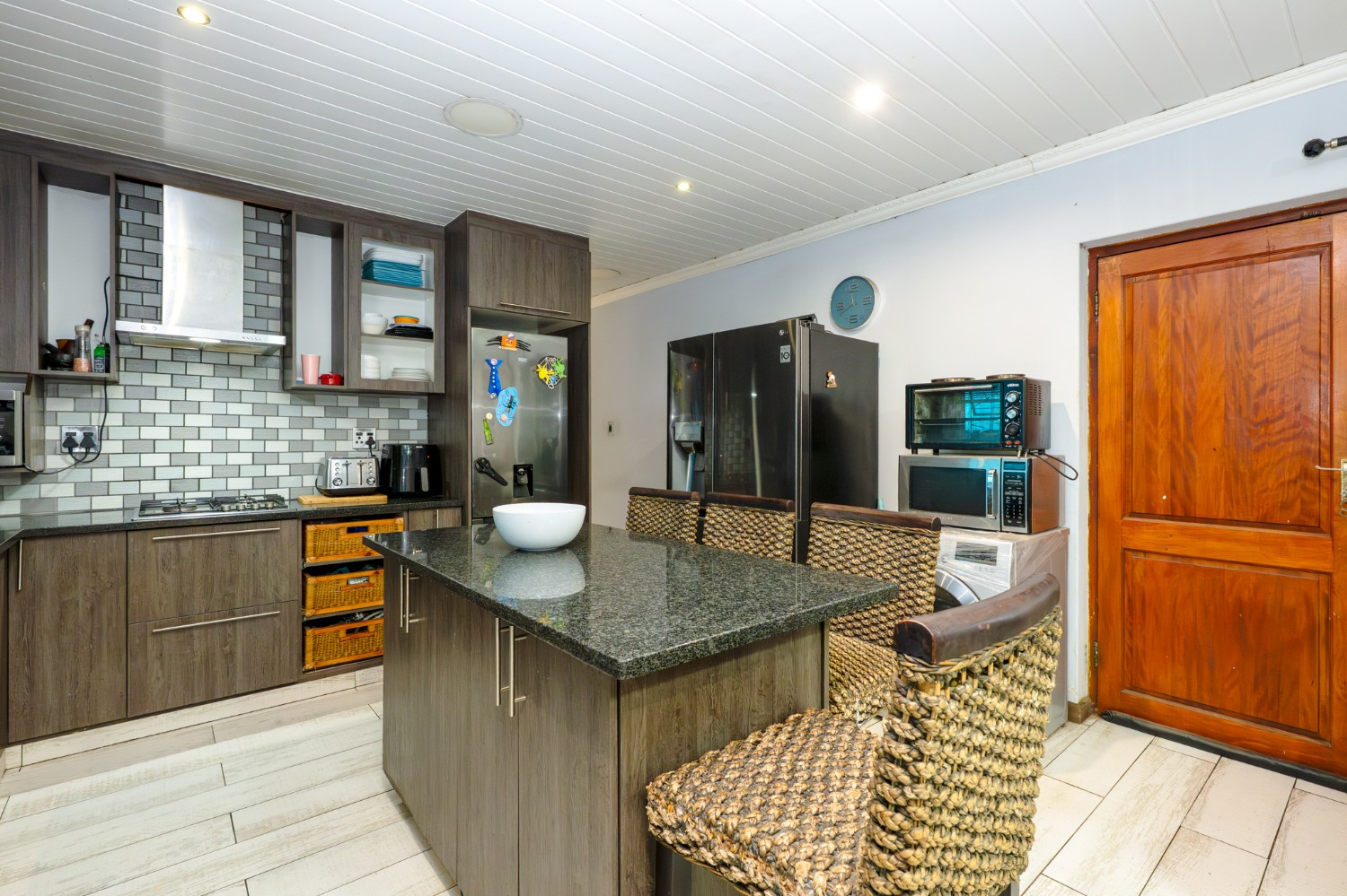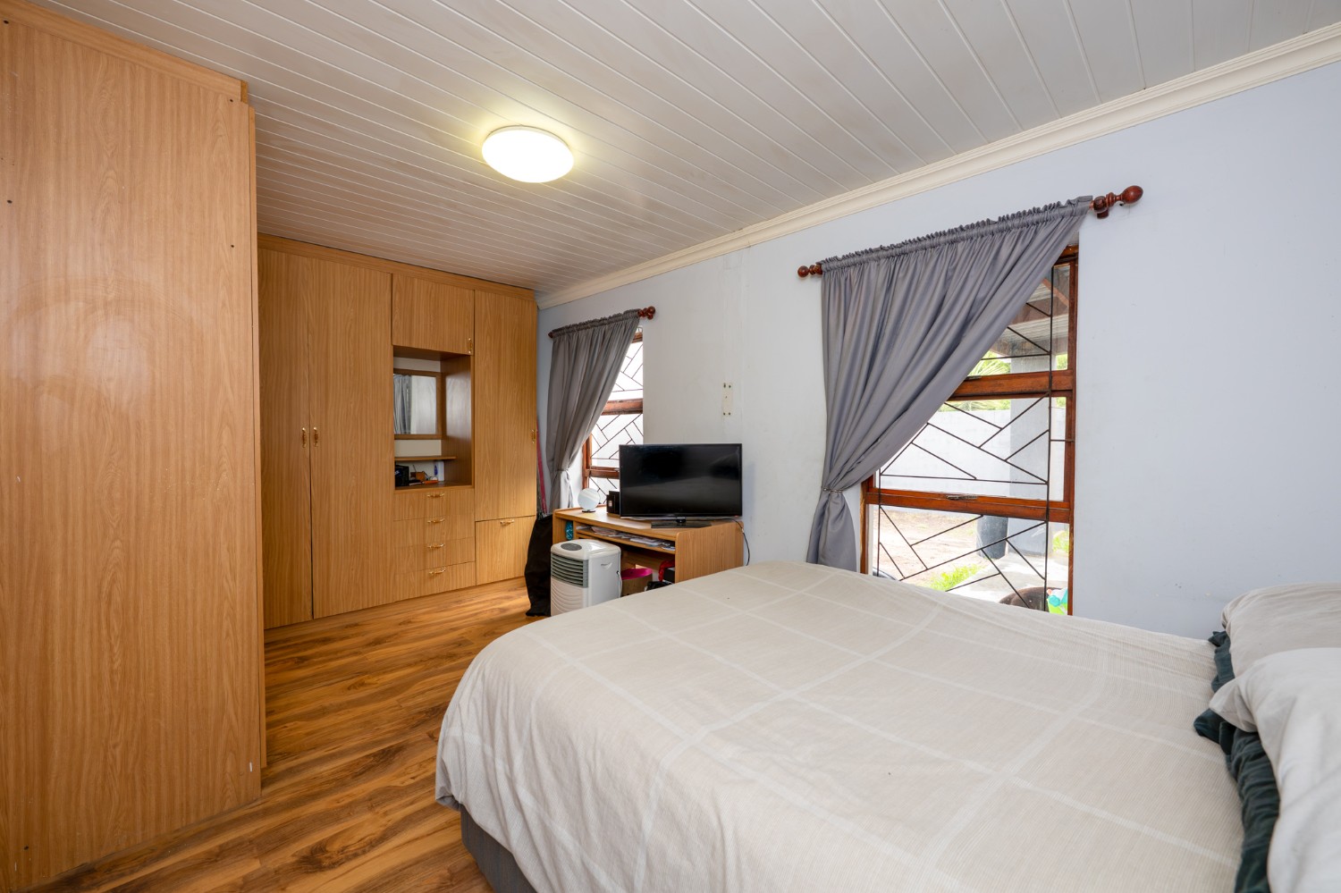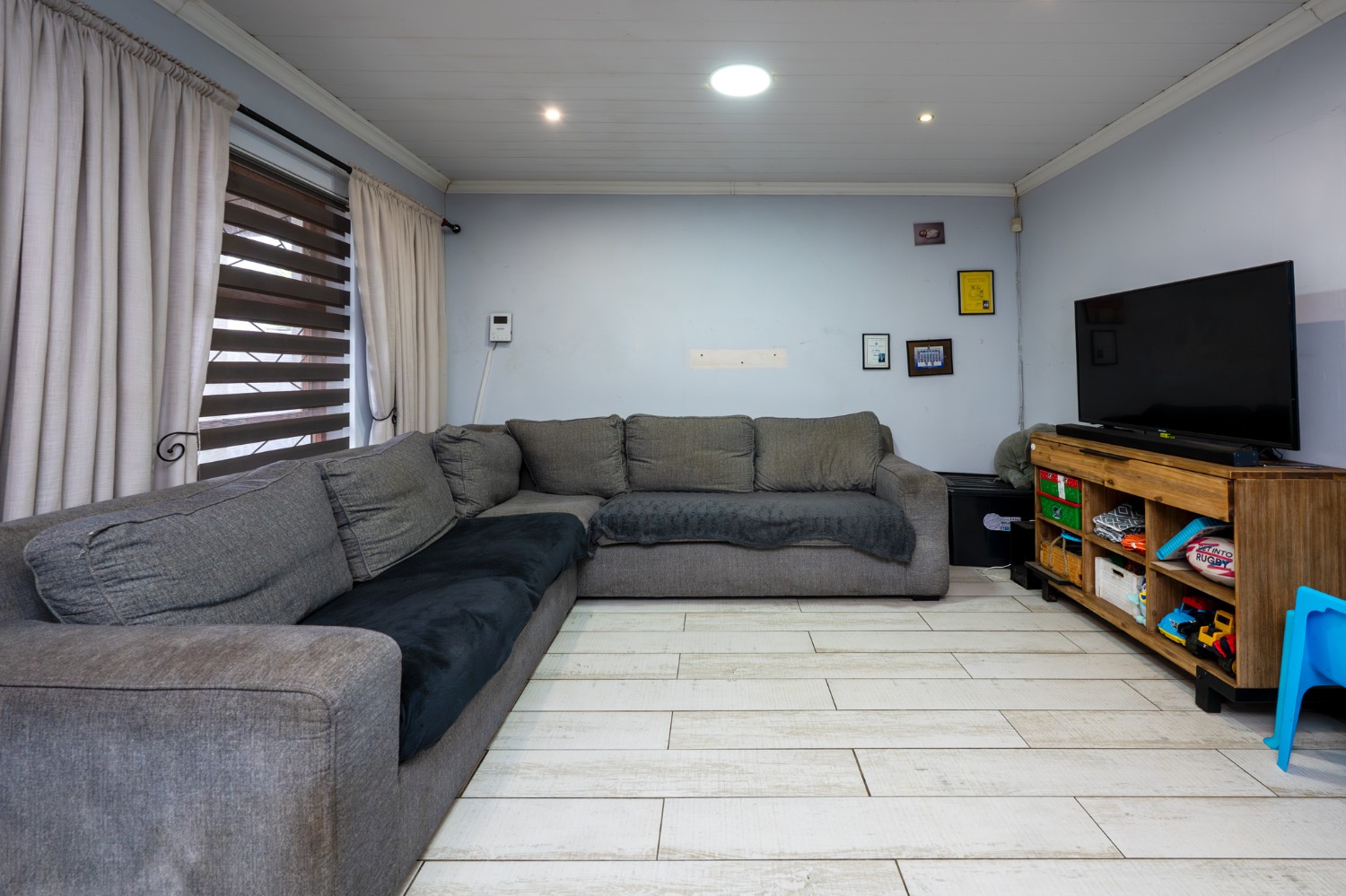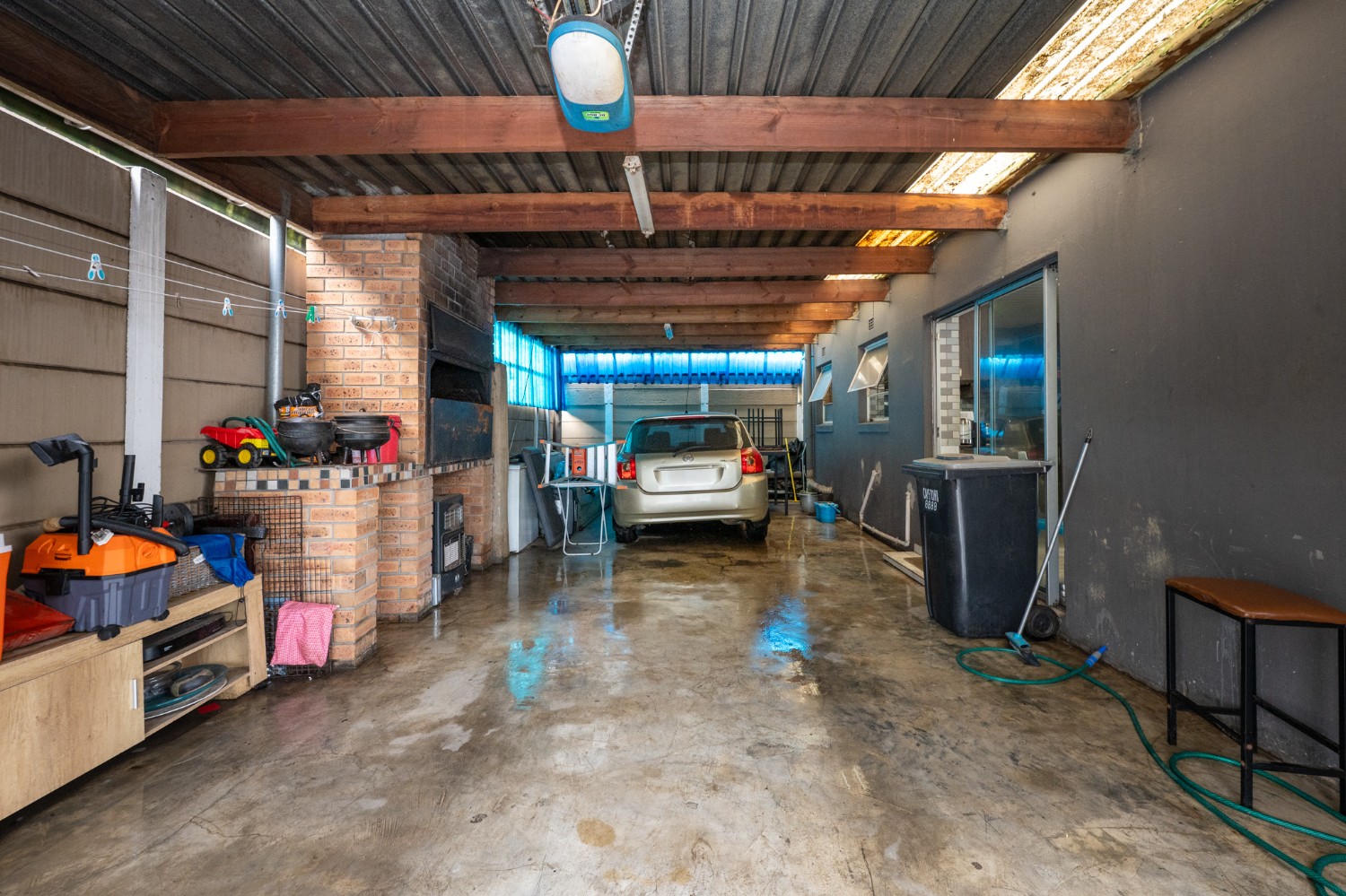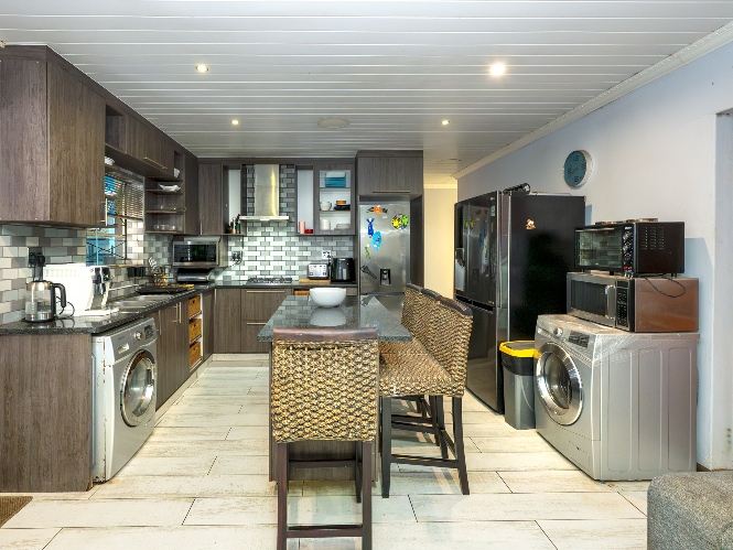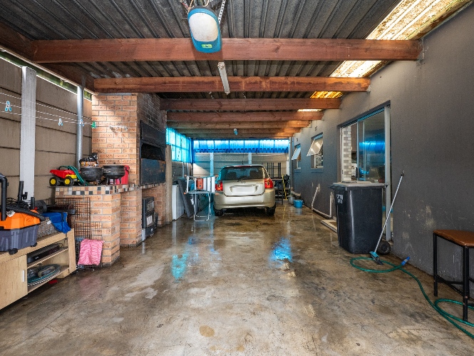 Outside, the property offers undercover parking for two vehicles with an automated garage door, as well as a covered braai area ideal for entertaining guests. The well-sized yard provides ample space for children to play or for future enhancements. The property was originally a three-bedroom home and can easily be converted back into one.