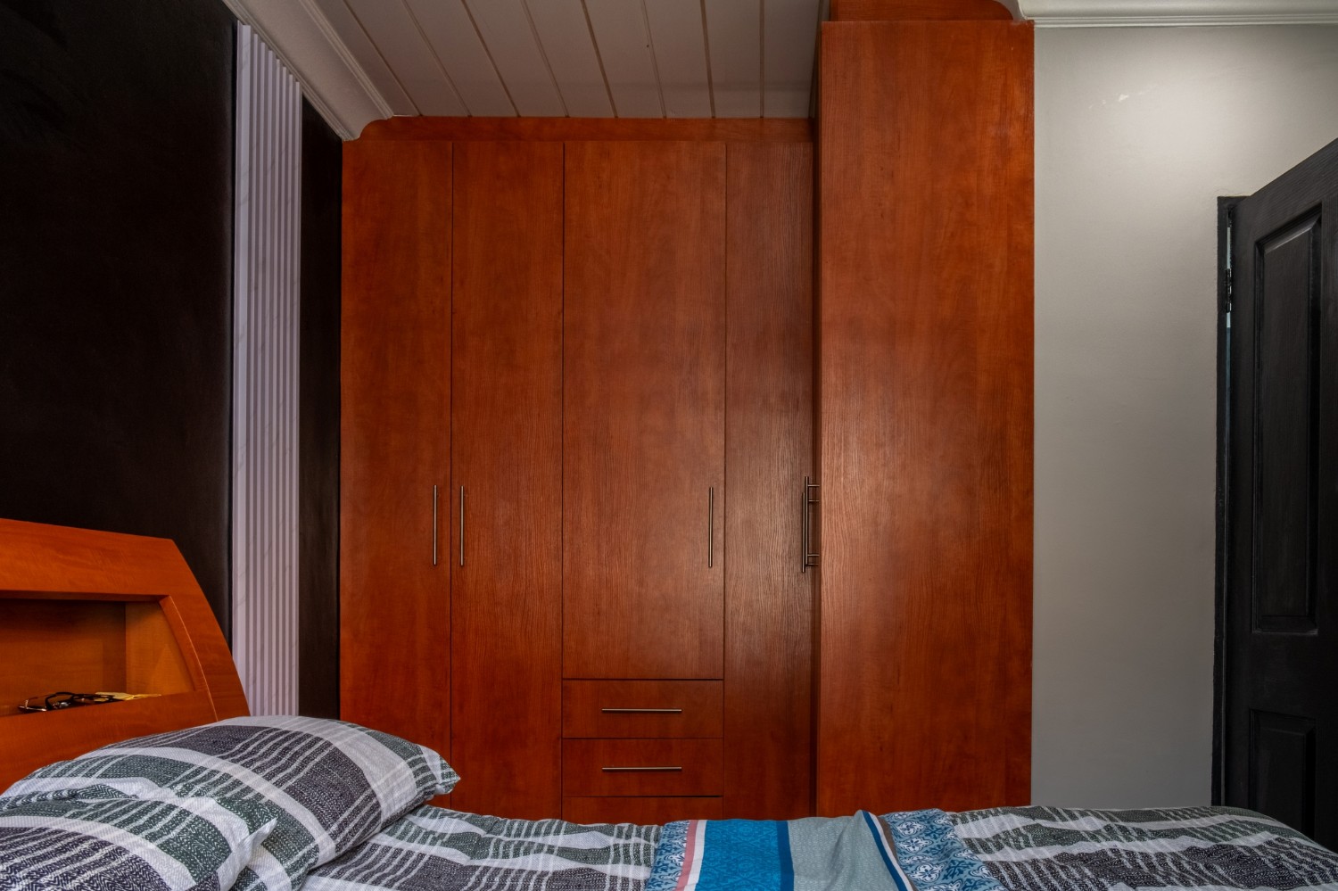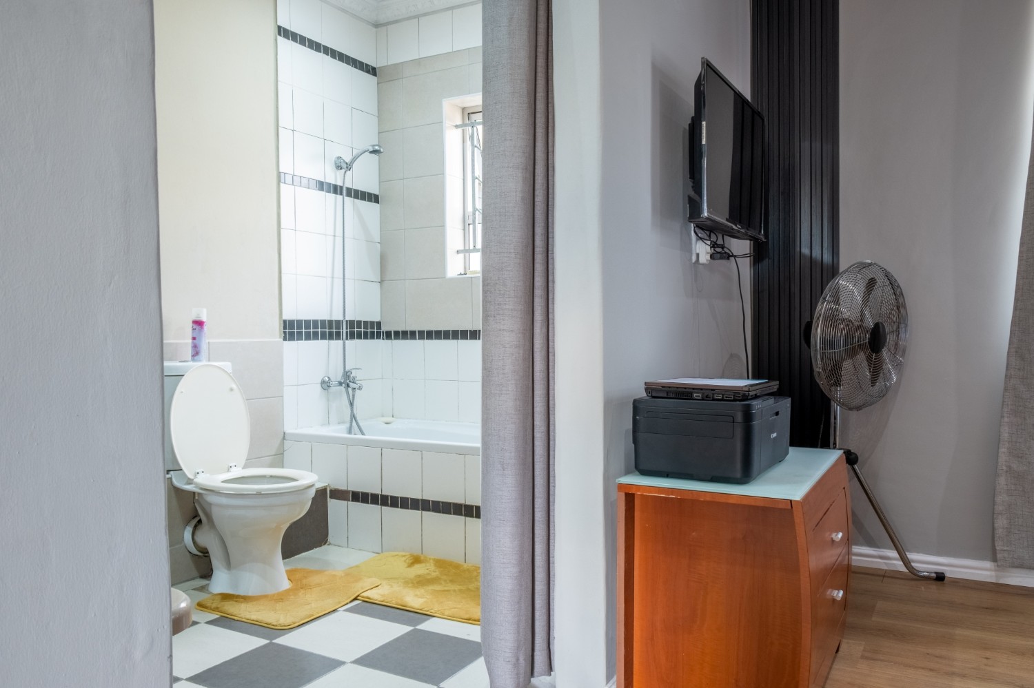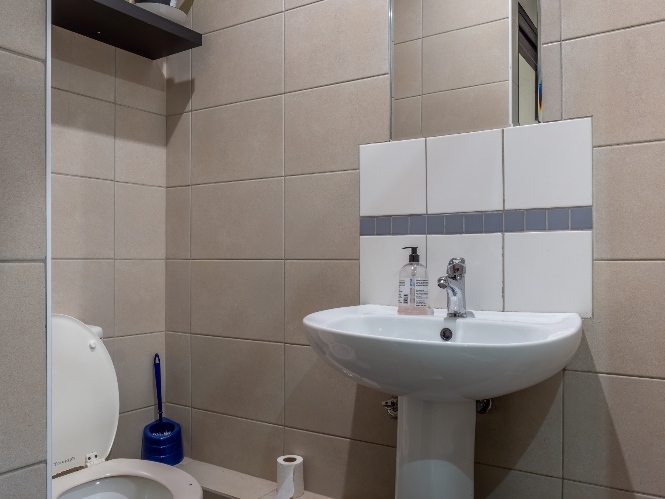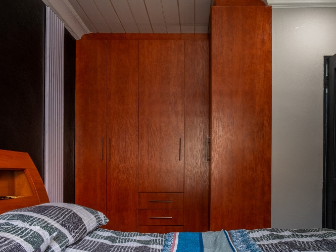 All three bedrooms are generously sized and fitted with built-in cupboards, ensuring plenty of storage. The master bedroom adds a touch of luxury with its own en-suite bathroom, featuring a bathtub with a showerhead, as well as a basin and toilet. The family bathroom is neatly tiled and complete with a shower, basin, and toilet