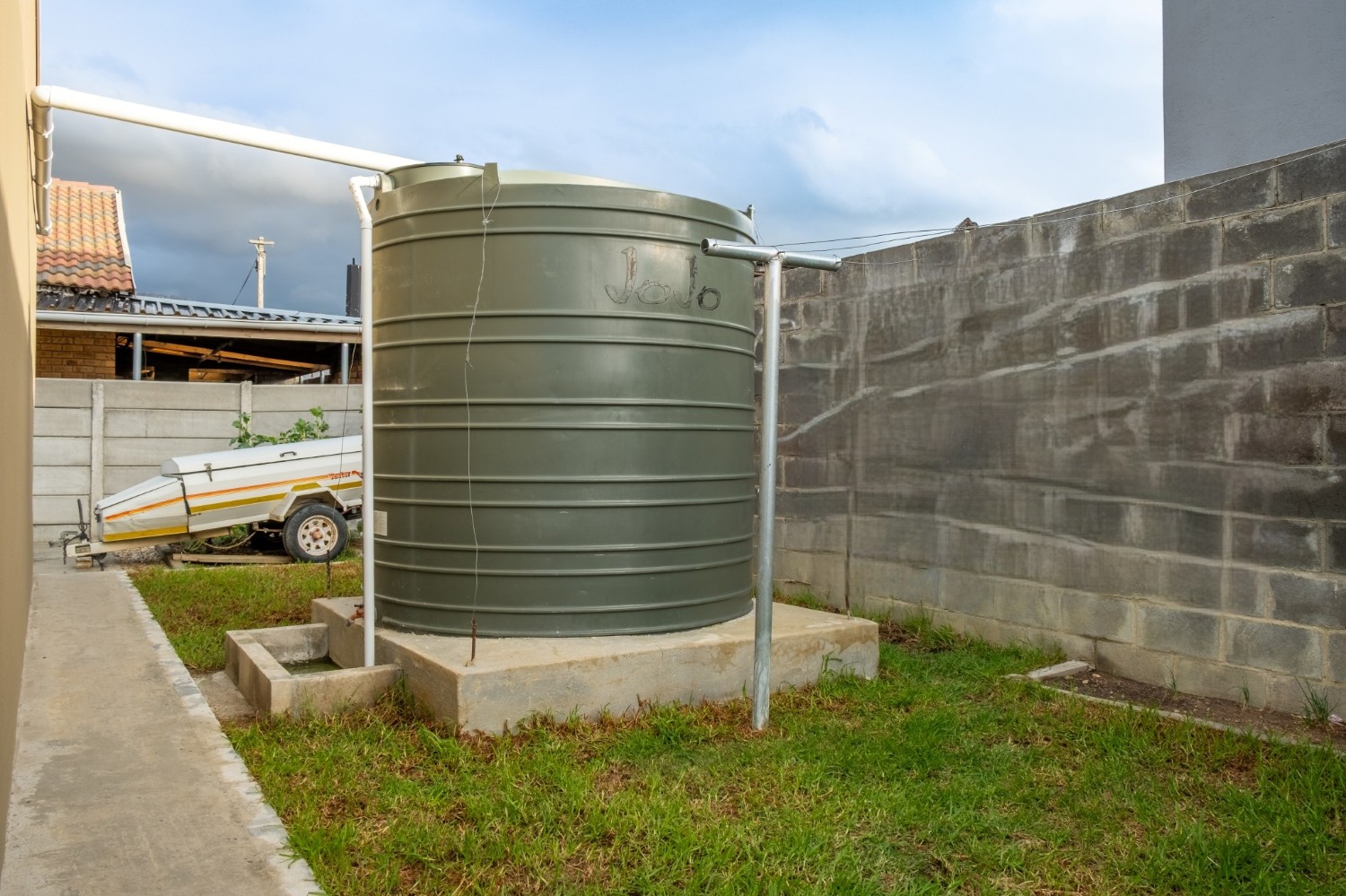 Outside, the home continues to impress with a charming backyard perfect for children, pets, or weekend gatherings. A drive-through garage provides secure parking, with space available behind the access gate for additional vehicles. In addition, there is a JoJo tank. The property includes laminated flooring throughout, with tiled surfaces in the kitchen and bathrooms.