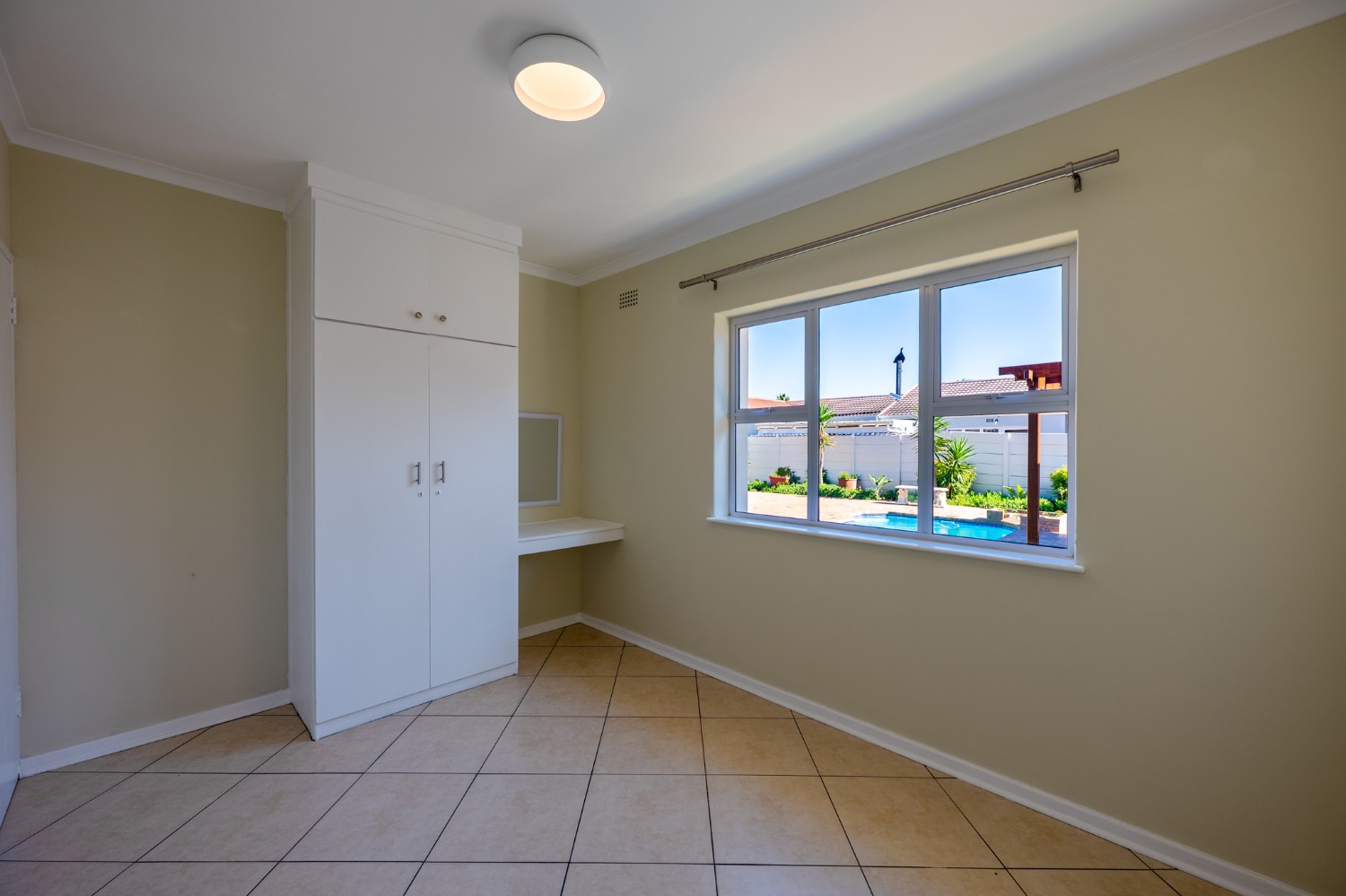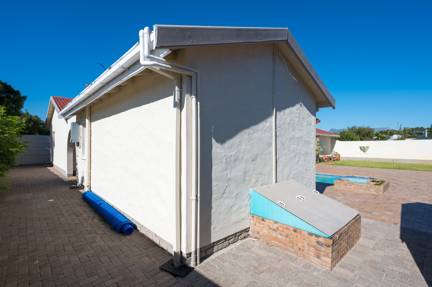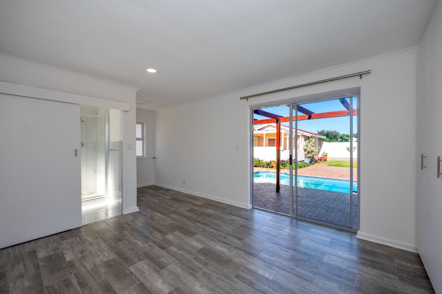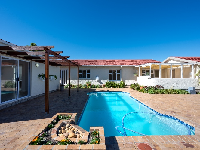 Step outside to enjoy a sparkling pool set within a large, low-maintenance garden, providing the perfect space for relaxation and outdoor entertaining.