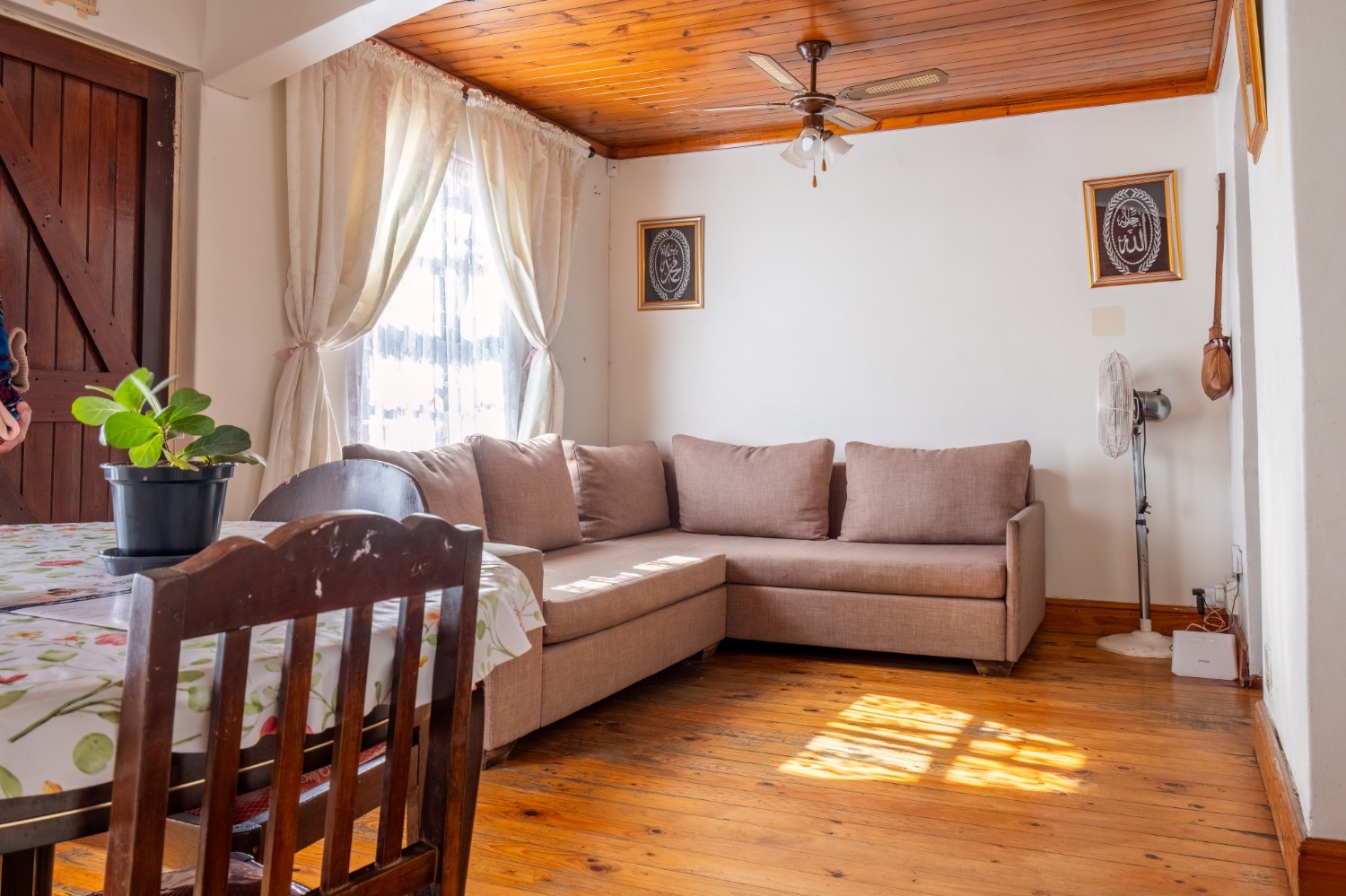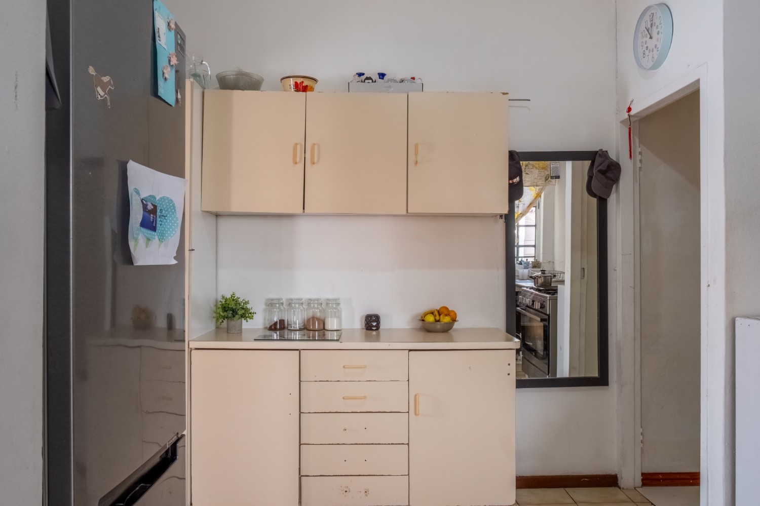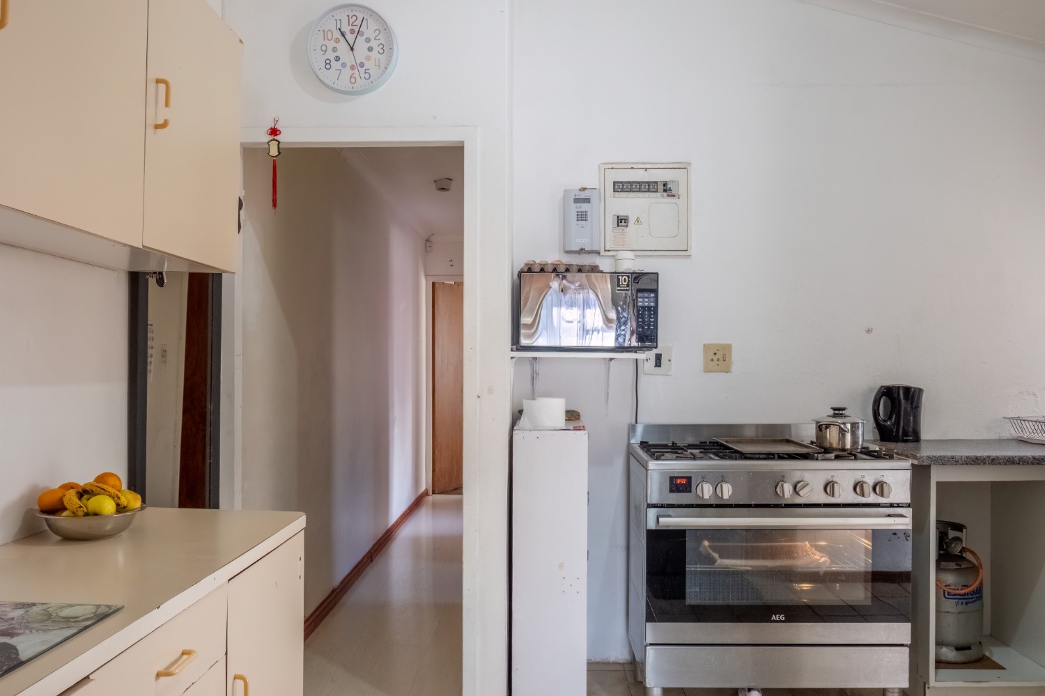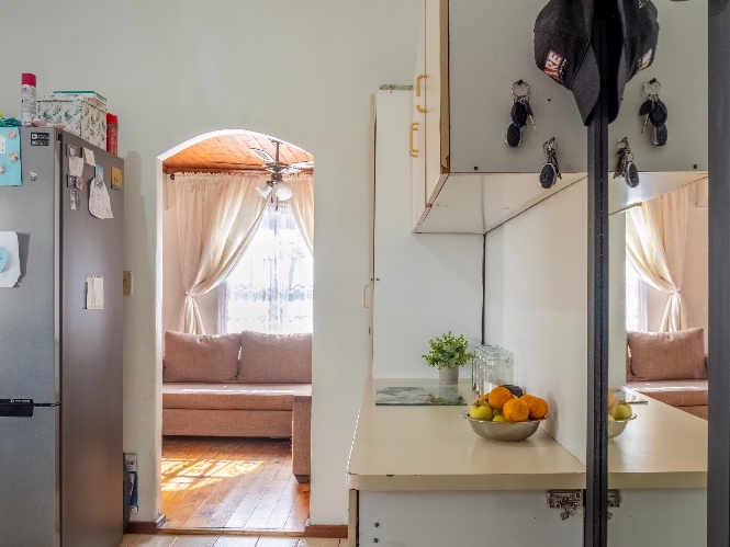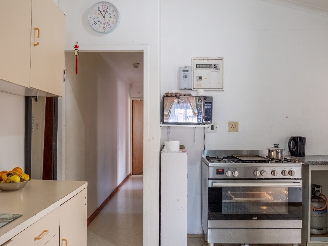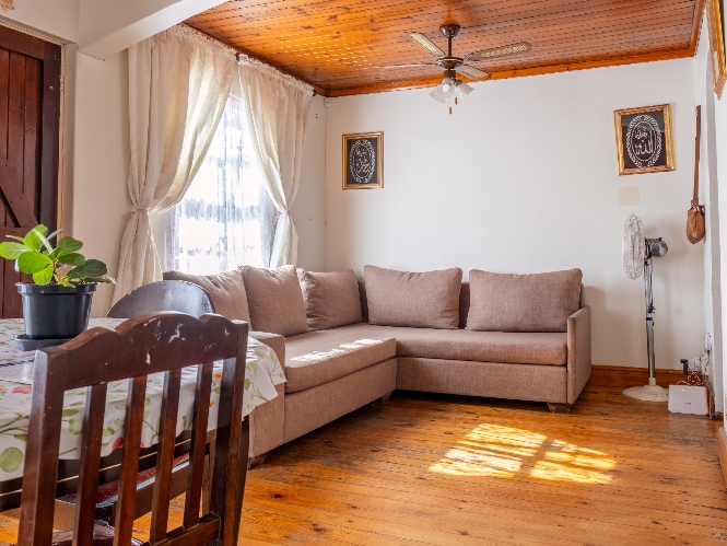 The separate kitchen offers minimal built-in cupboards, providing a blank canvas to design and create your dream kitchen exactly as you envision it. The home features two bedrooms, with the main bedroom offering built-in cupboards, while both bedrooms share a family bathroom.