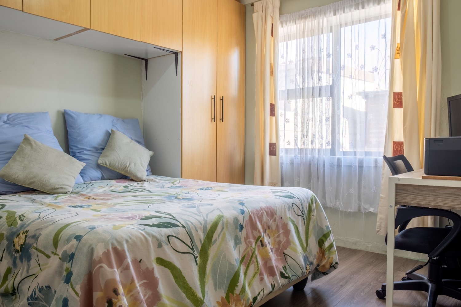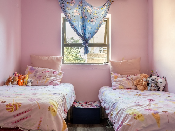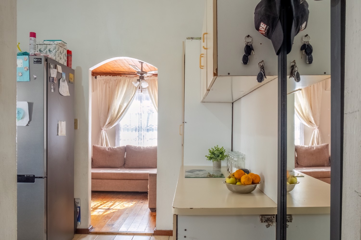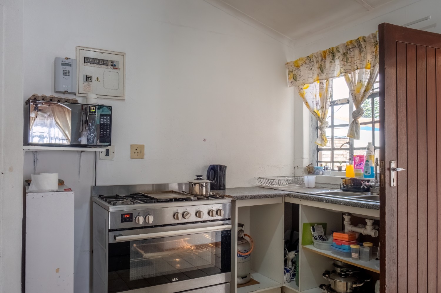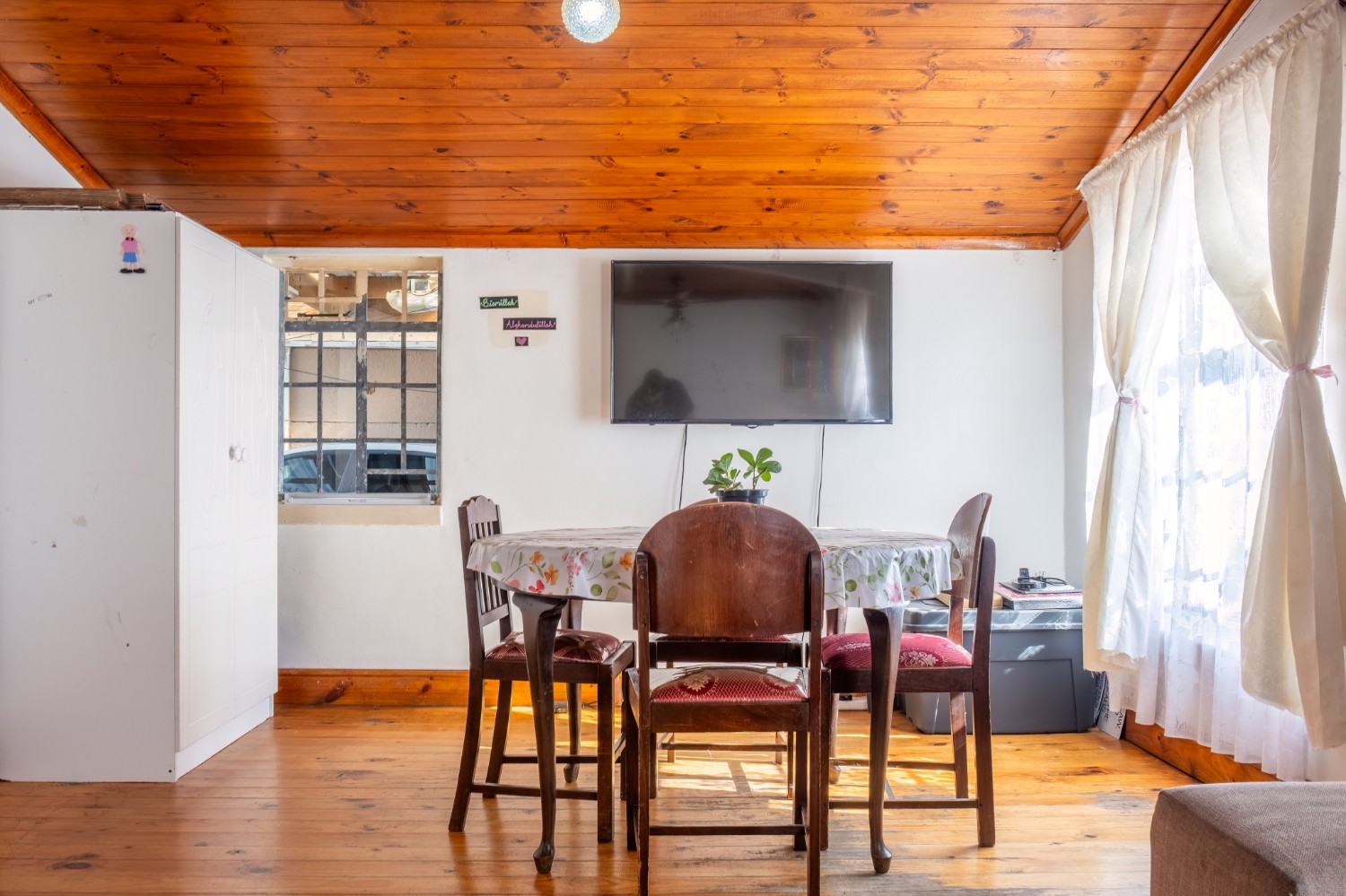 The separate kitchen offers minimal built-in cupboards, providing a blank canvas to design and create your dream kitchen exactly as you envision it. The home features two bedrooms, with the main bedroom offering built-in cupboards, while both bedrooms share a family bathroom.